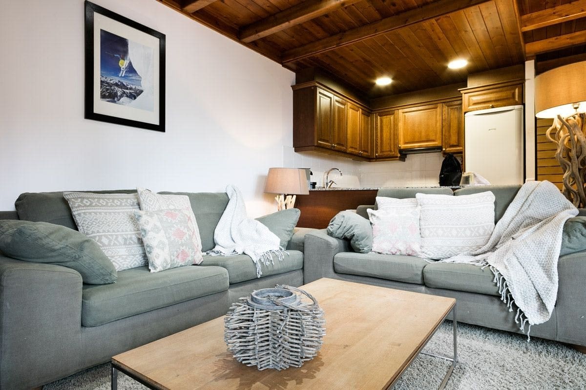 Step inside this inviting two-bedroom apartment to find a warm and welcoming interior that perfectly complements the snowy landscape outside. The living area features plush seating and a welcoming fireplace, creating a cozy ambiance for relaxing evenings. The well-equipped kitchen is perfect for preparing hearty meals, while the dining area invites guests to enjoy meals together. Both bedrooms are designed with comfort in mind, offering soft linens and ample storage. With two modern bathrooms, this apartment ensures convenience and privacy for all guests.