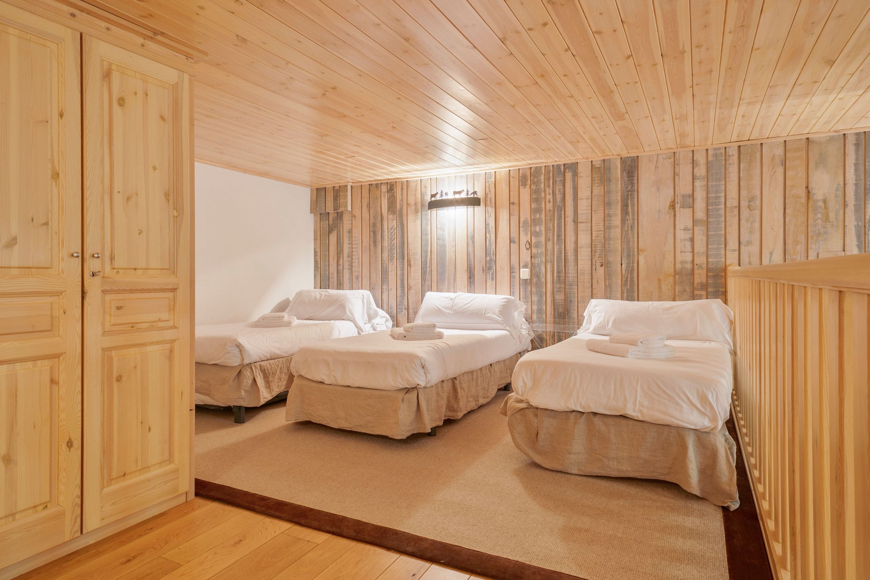 Step inside and be welcomed by the warmth of wooden floors and ceilings that create a serene yet inviting ambiance. The apartment’s design harmoniously blends rustic architectural features with contemporary furnishings, offering a spacious living area perfect for relaxation or entertainment. The fully equipped kitchen invites you to prepare delightful meals, while the dining table doubles as a convenient workspace. With five bedrooms and four bathrooms, there’s ample space for up to twelve guests, including a child-sized trundle bed.