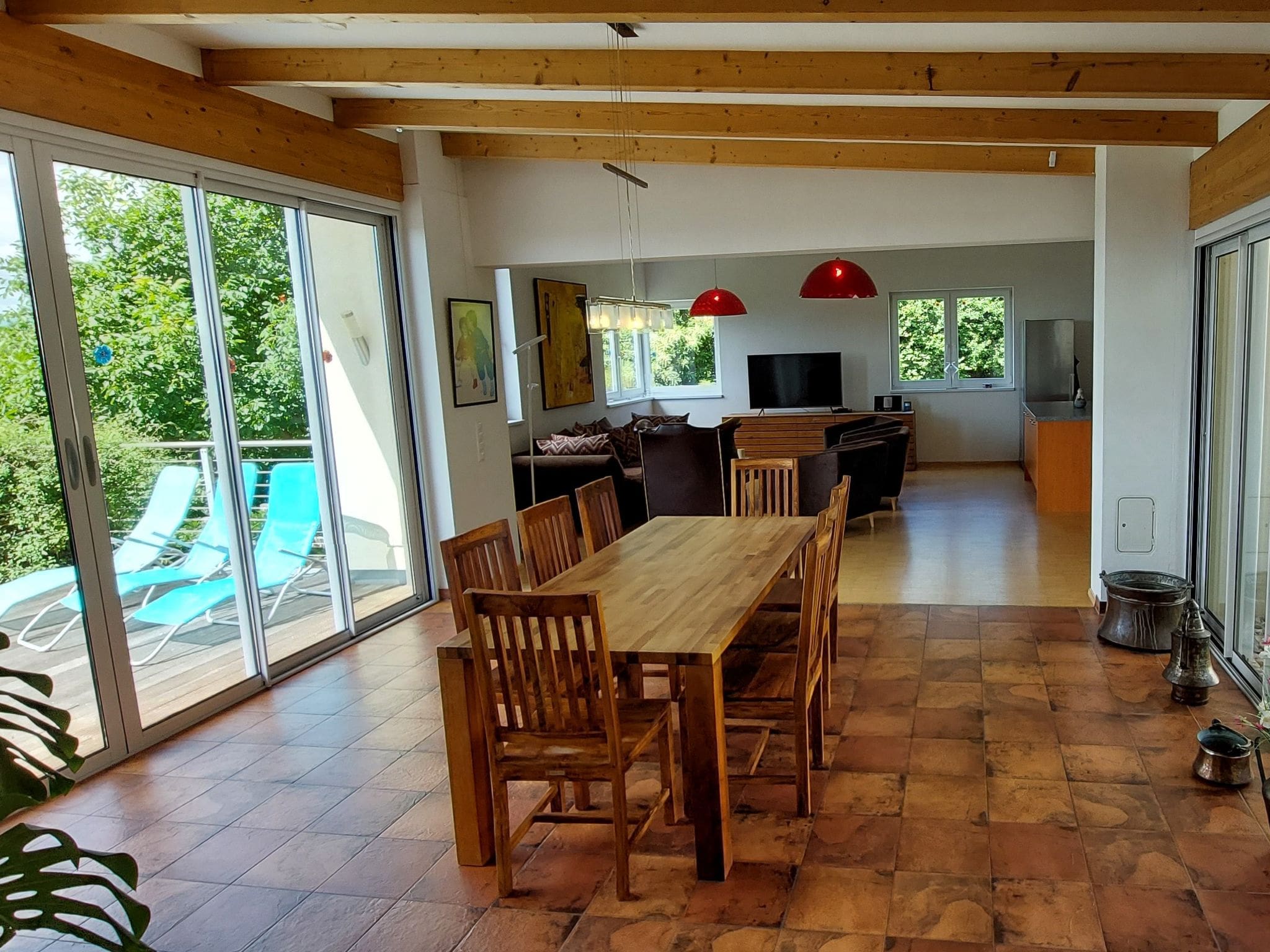 The outdoor spaces truly set this chalet apart, featuring a private 9×4-metre swimming pool available from June through mid-September, surrounded by manicured lawns perfect for sunbathing. Multiple south-facing terraces provide ideal spots for al fresco dining and entertaining, while the barbecue area creates perfect opportunities for memorable evening gatherings. The extensive grounds include a wildlife garden and orchard, offering guests a serene connection with nature.