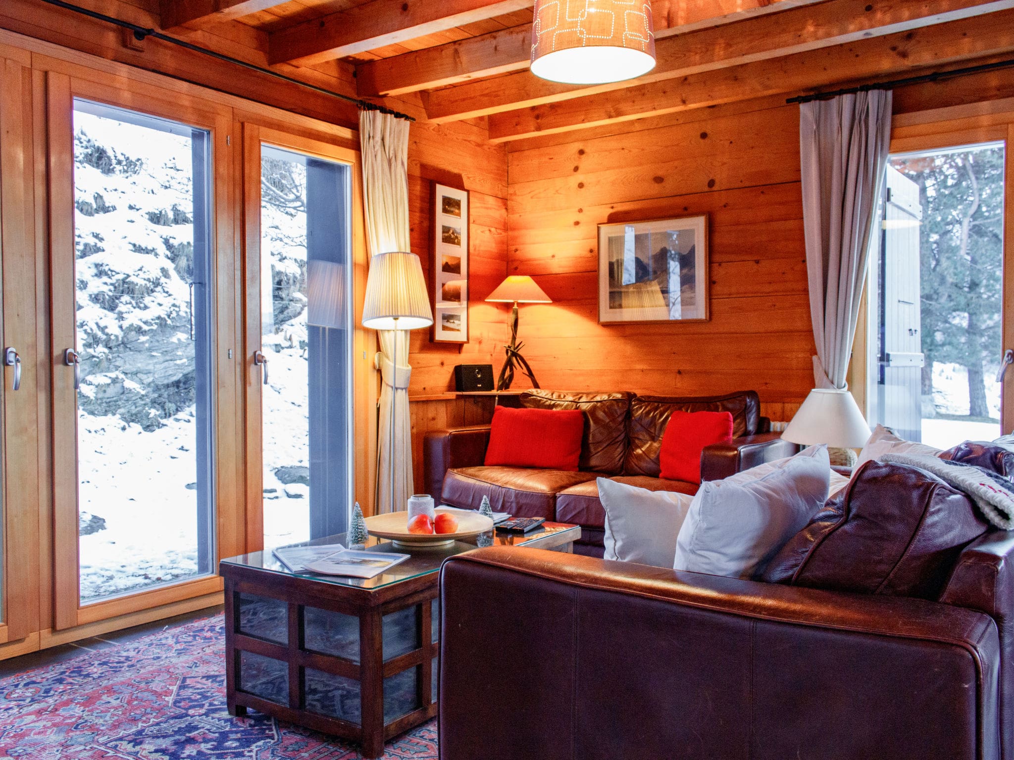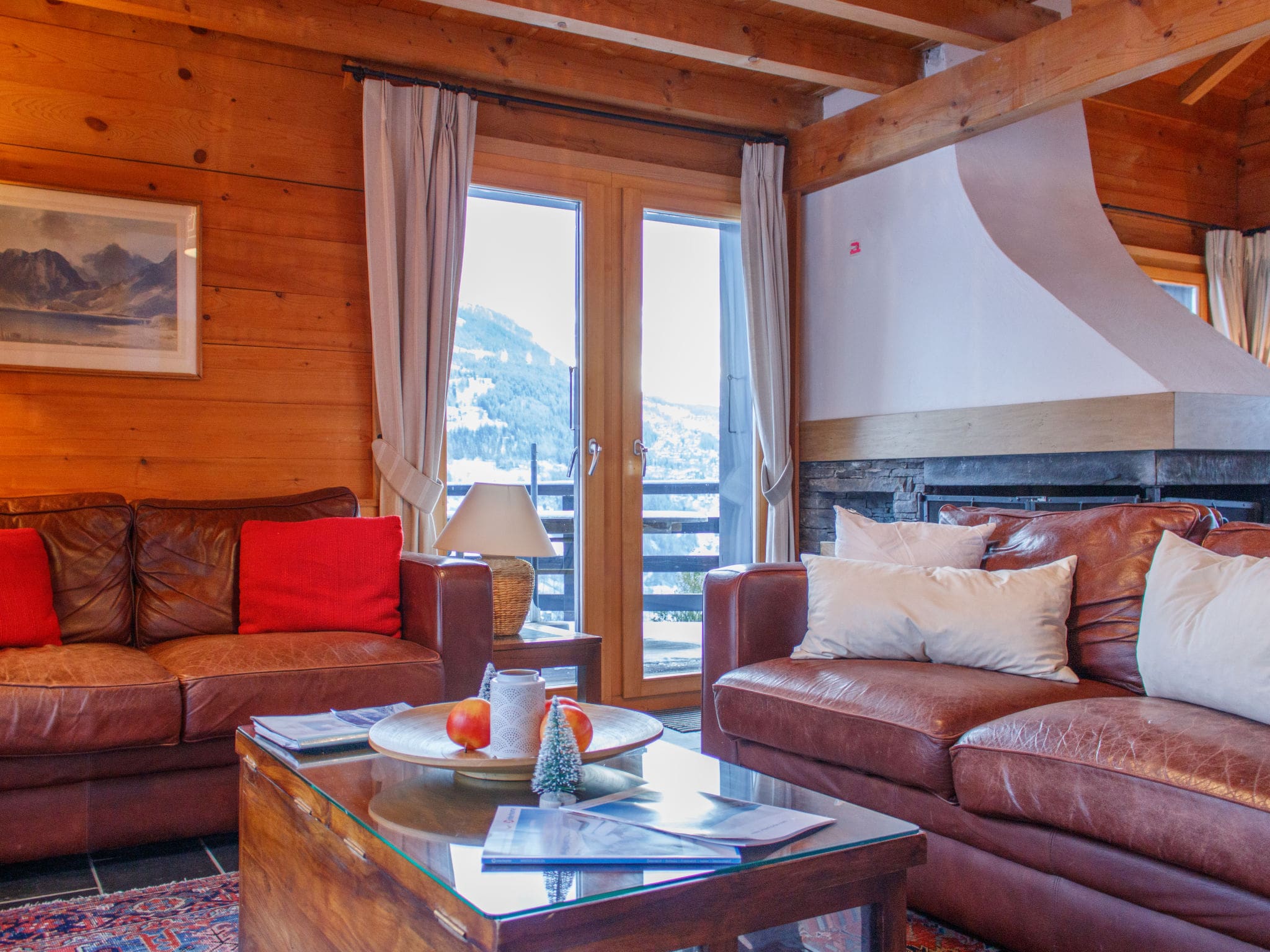Spread across three thoughtfully designed levels, this 170-square-metre chalet accommodates up to eight guests in four well-appointed bedrooms. The heart of the home features an inviting living and dining area centered around a traditional open fireplace, creating the perfect atmosphere for après-ski gatherings. The space flows seamlessly onto a private terrace where mountain vistas provide a stunning backdrop to every meal and moment of relaxation.