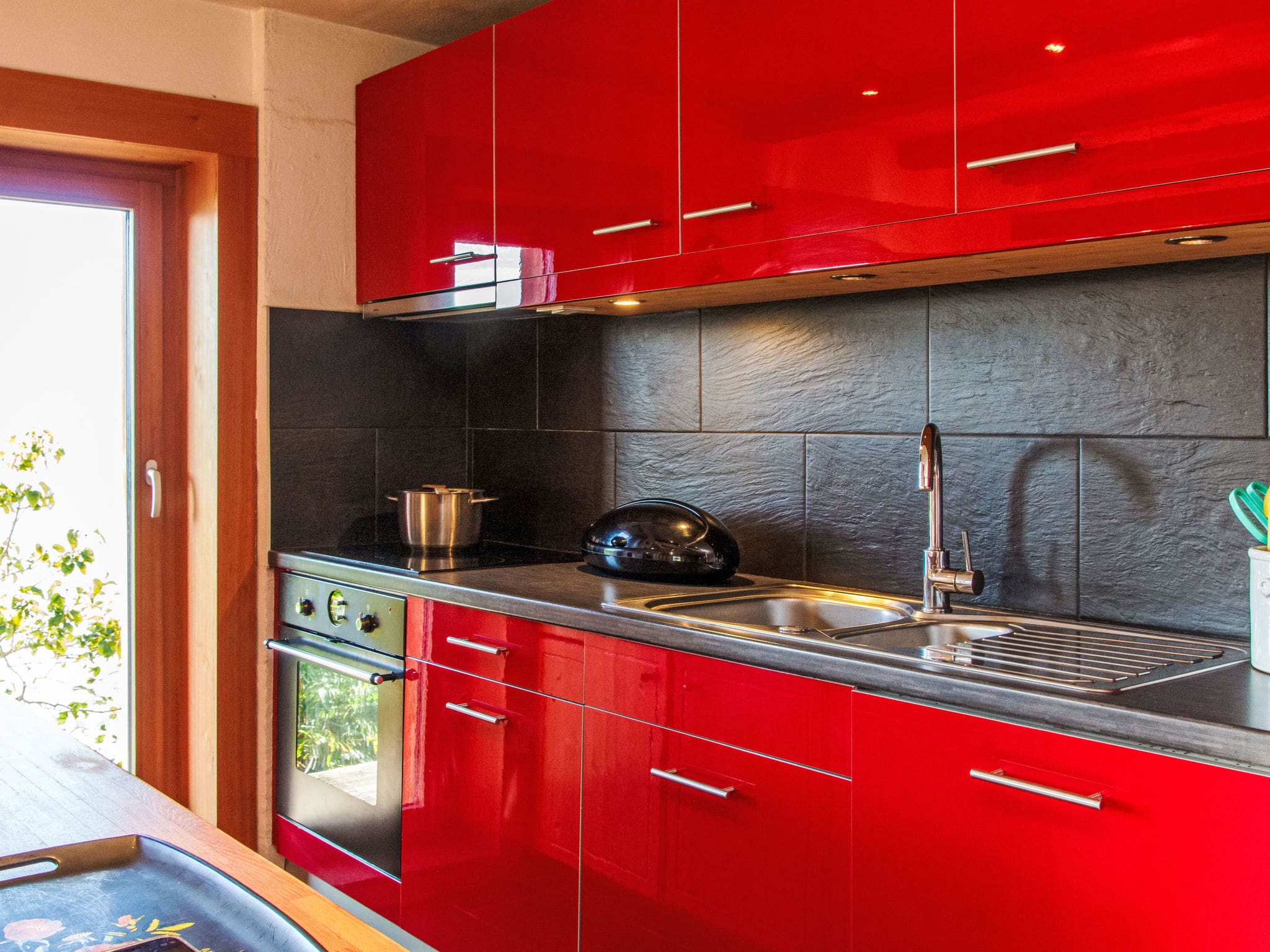 The heart of the home lies in the open-plan living and dining area, anchored by a striking Scandinavian wood-burning stove that creates a cozy alpine atmosphere. The fully equipped modern kitchen boasts induction hob, dishwasher, and premium appliances including a Nespresso machine, raclette grill, and traditional fondue set for authentic Swiss dining experiences. Direct garden access from the living space seamlessly connects indoor and outdoor living.
