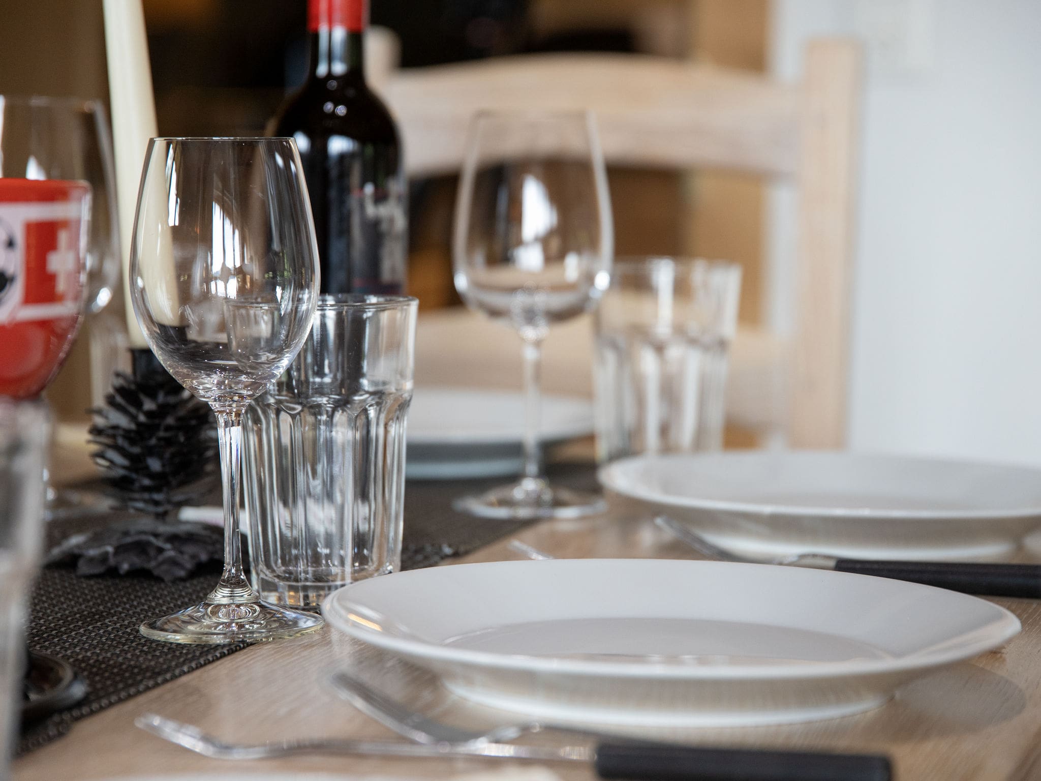 The rental includes all utilities, WiFi, ski storage, covered parking, garden access, and use of all kitchen equipment including raclette grill and fondue set.
