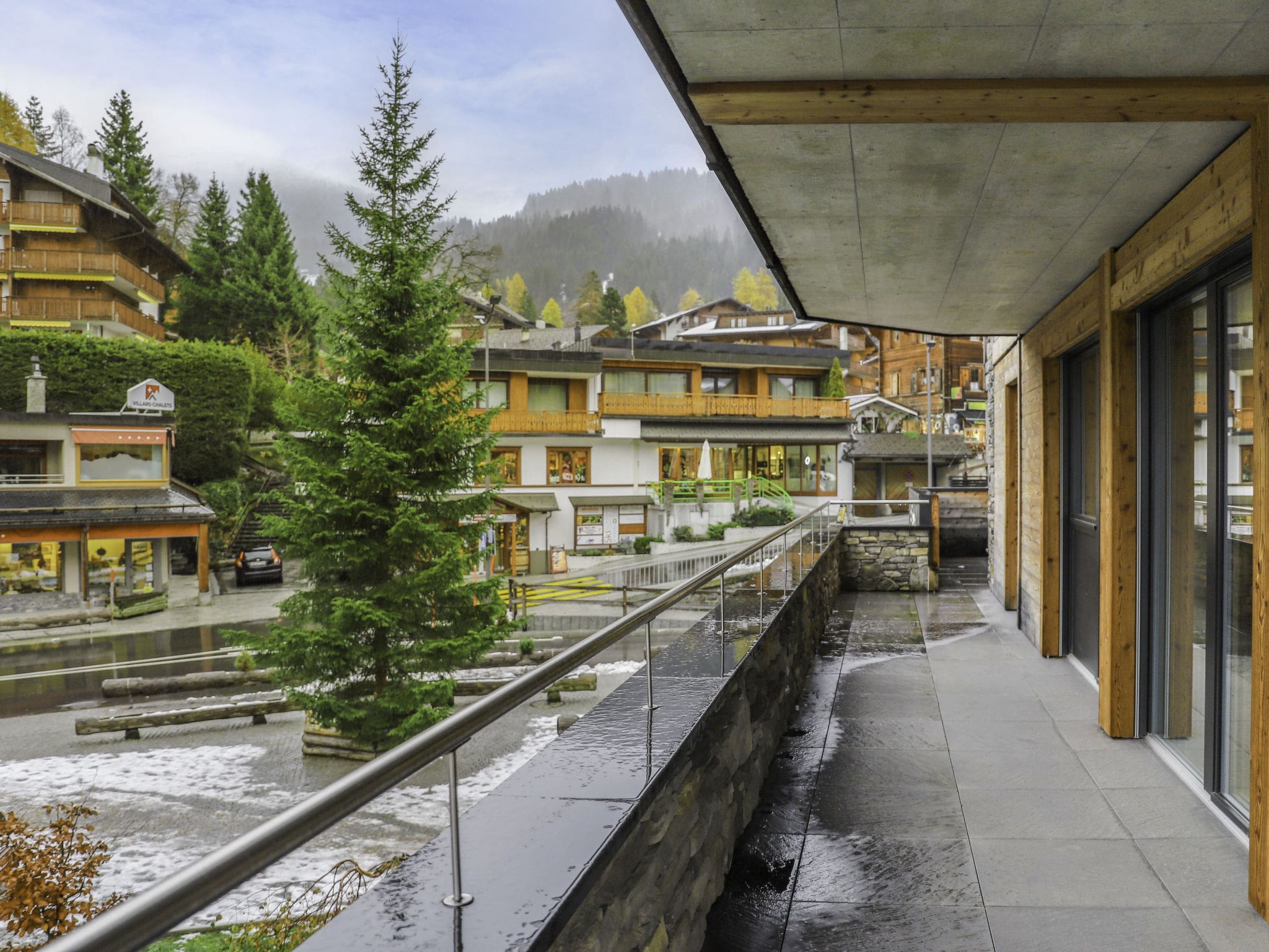 The apartment is located in the center of Villars-sur-Ollon itself, with supermarkets within 10 meters, restaurants within 20 meters, and a full range of shops, services, and dining options all within easy walking distance.
