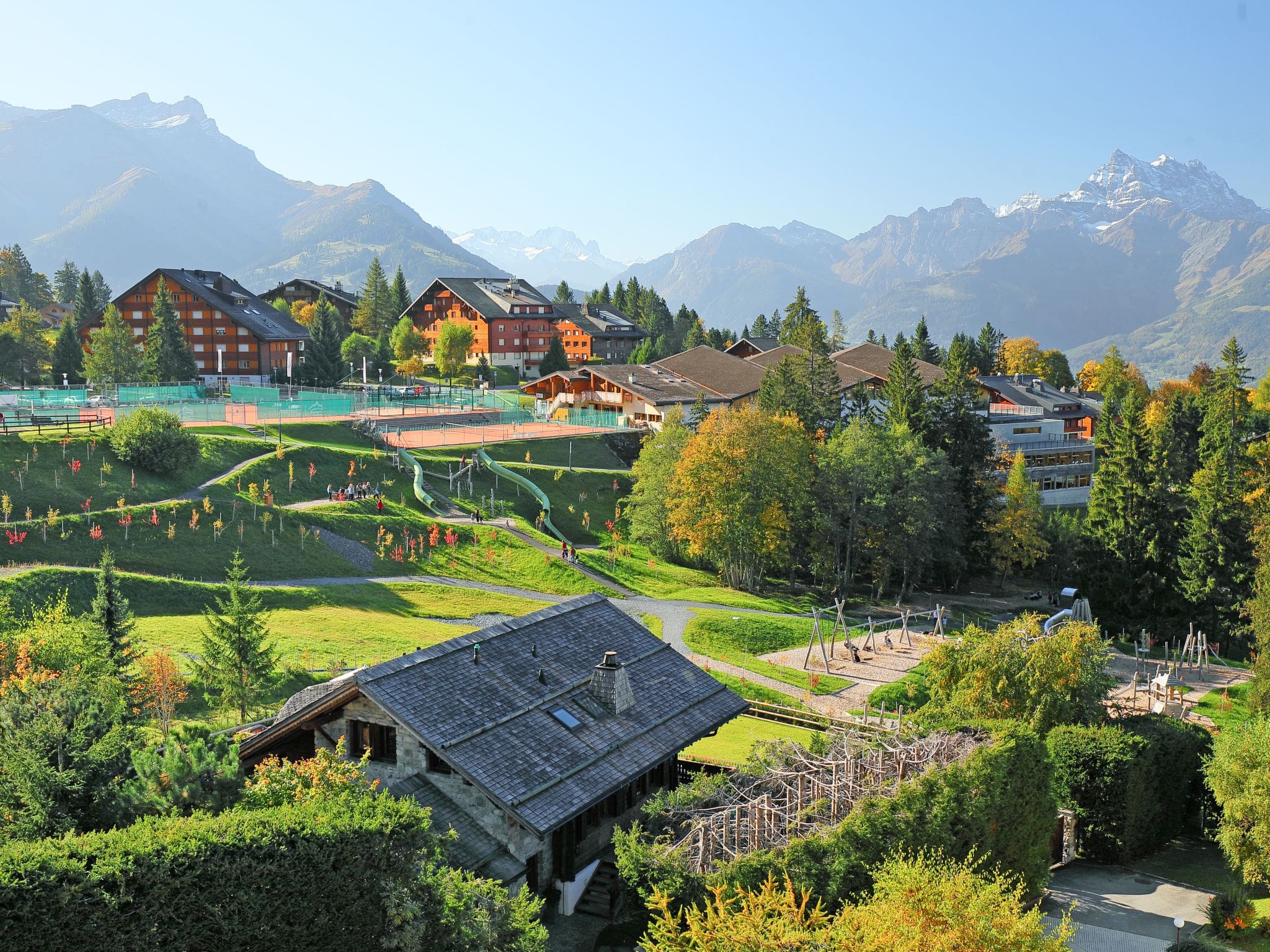 The property sits directly in Villars town center, with restaurants, shops, and amenities all within walking distance of the building.