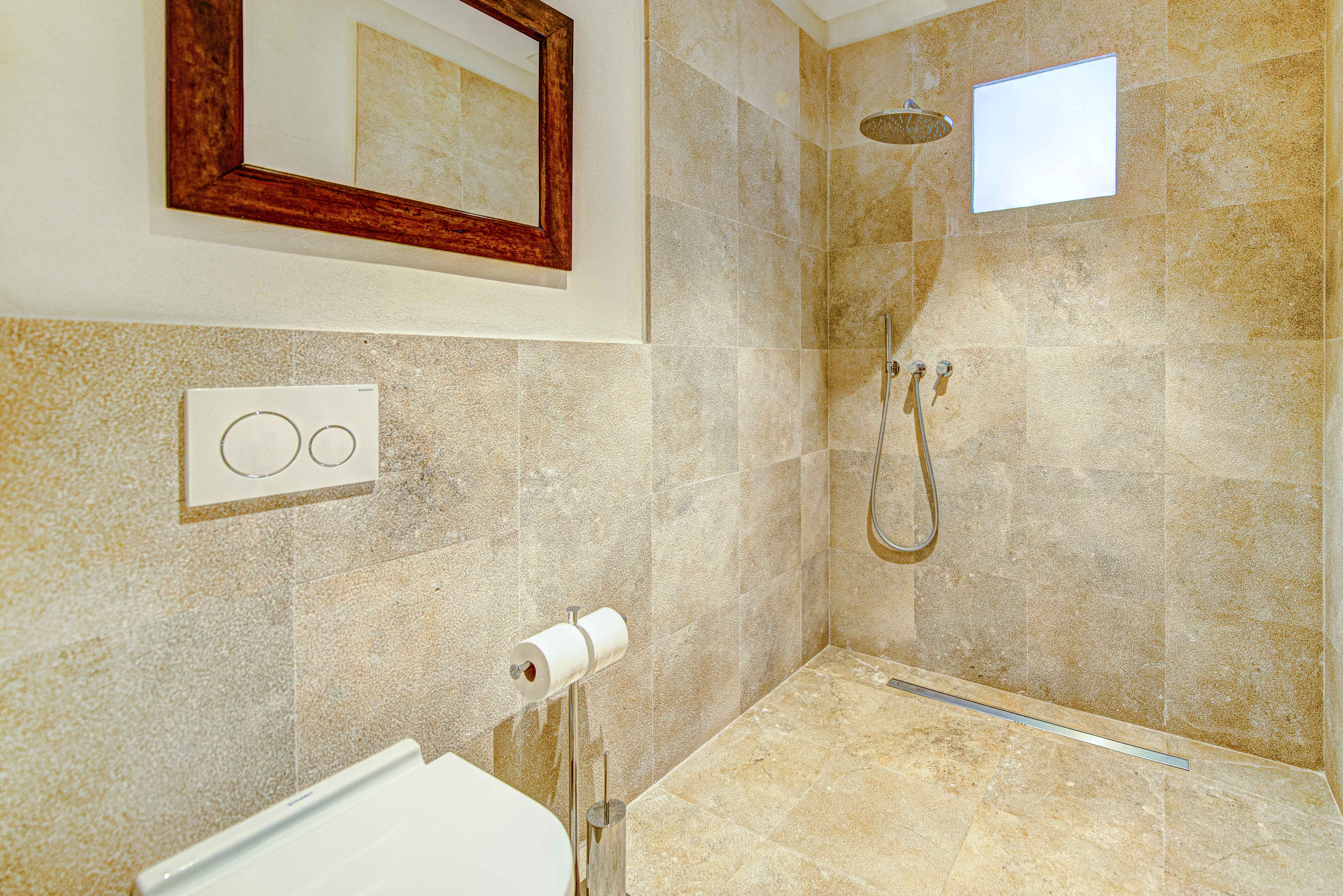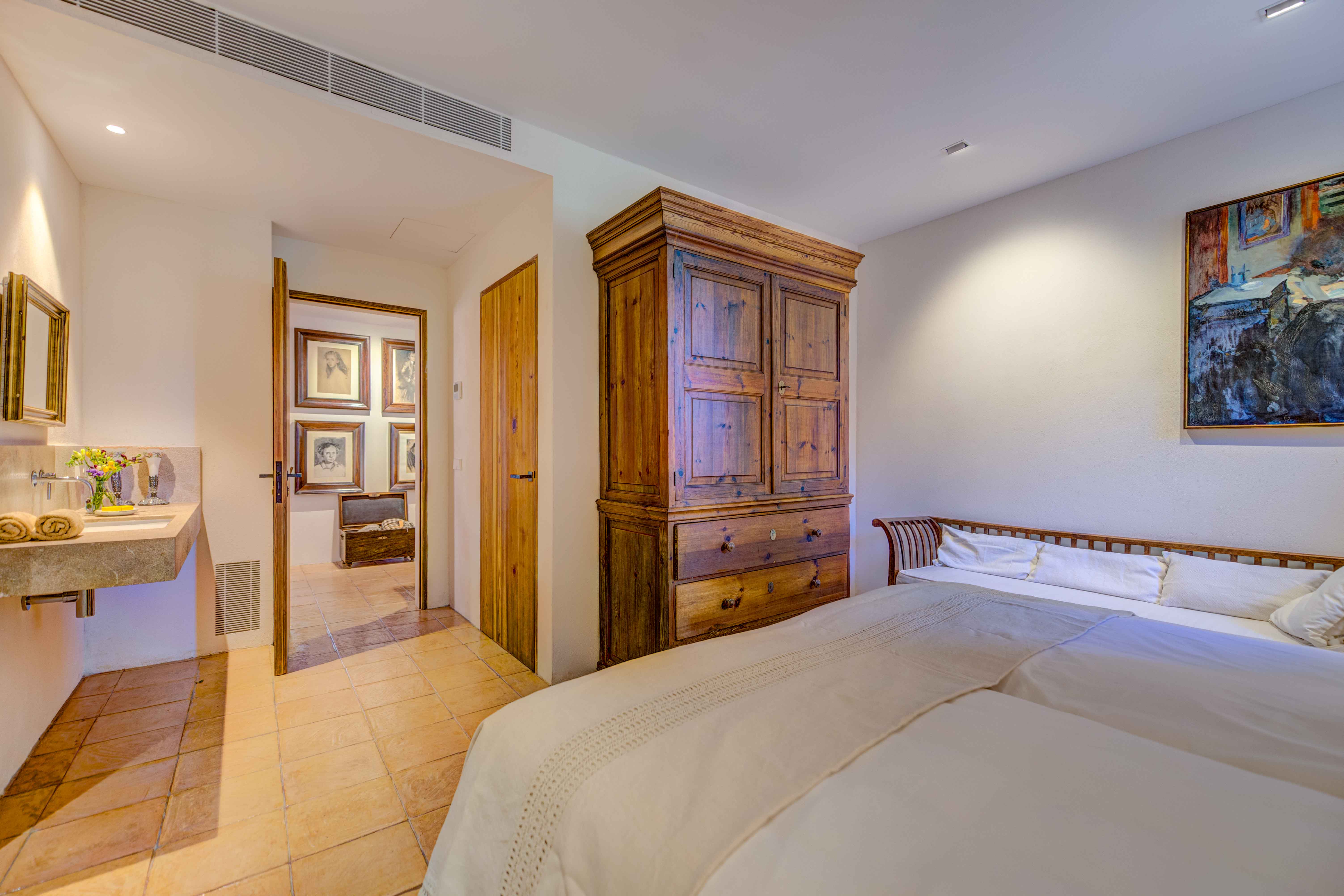 Step inside and discover a beautifully designed interior that seamlessly blends traditional Mallorcan architecture with contemporary style. The apartment features six spacious bedrooms, each with its own en-suite bathroom, offering ample space for up to 12 guests. The living areas are adorned with designer furniture and vibrant splashes of color that complement the natural surroundings. The modern kitchen is fully equipped, making it ideal for preparing family meals or hosting dinner parties.