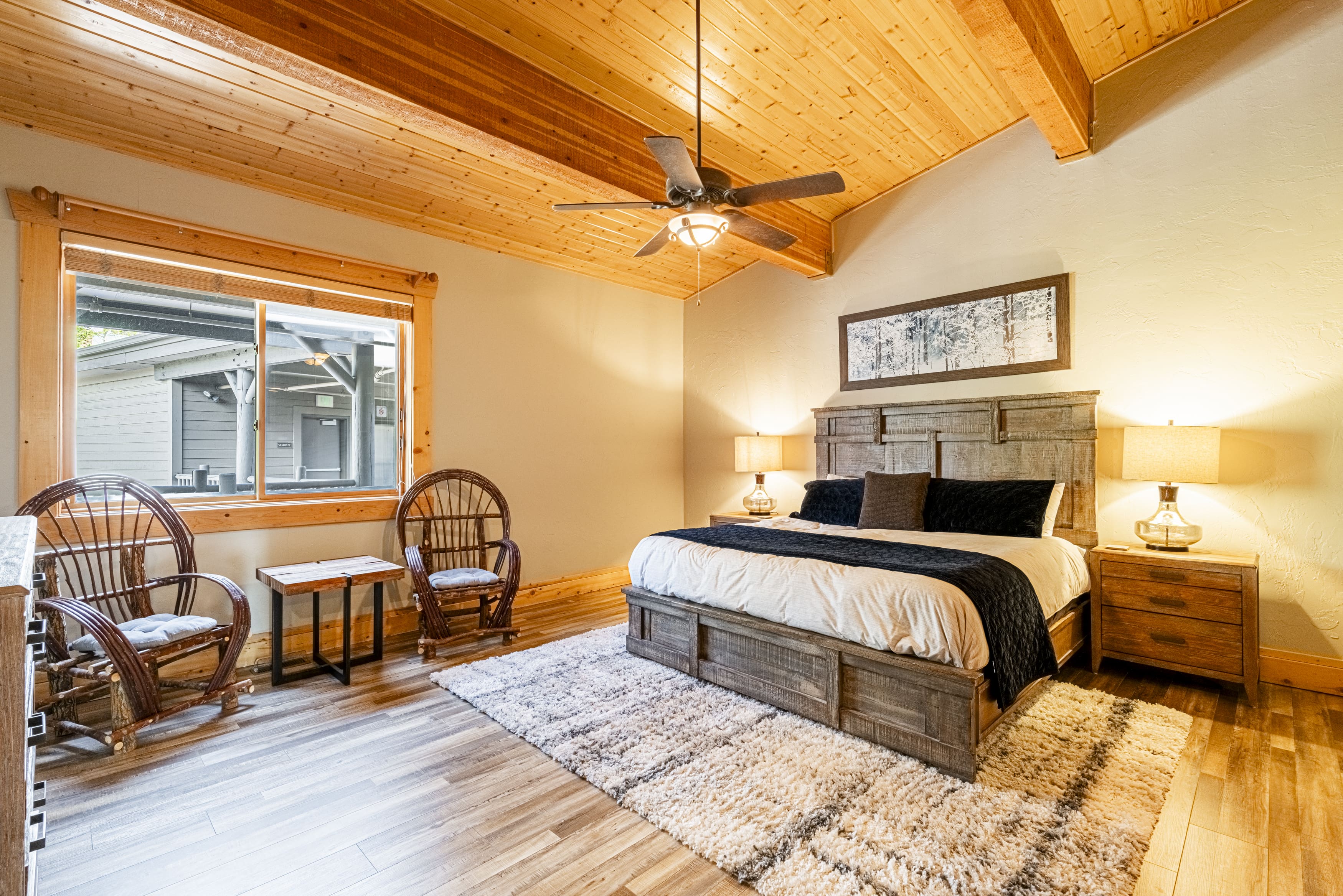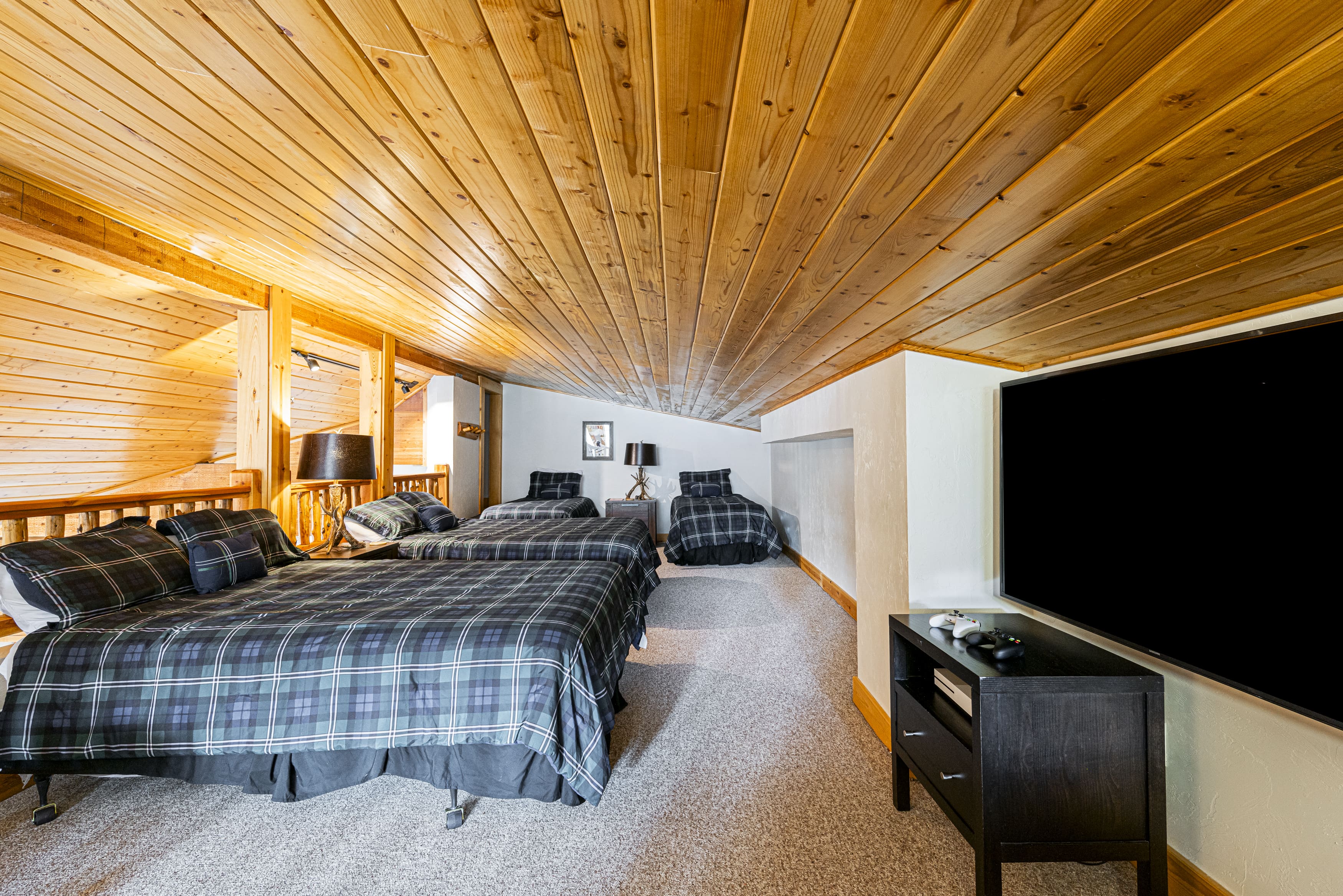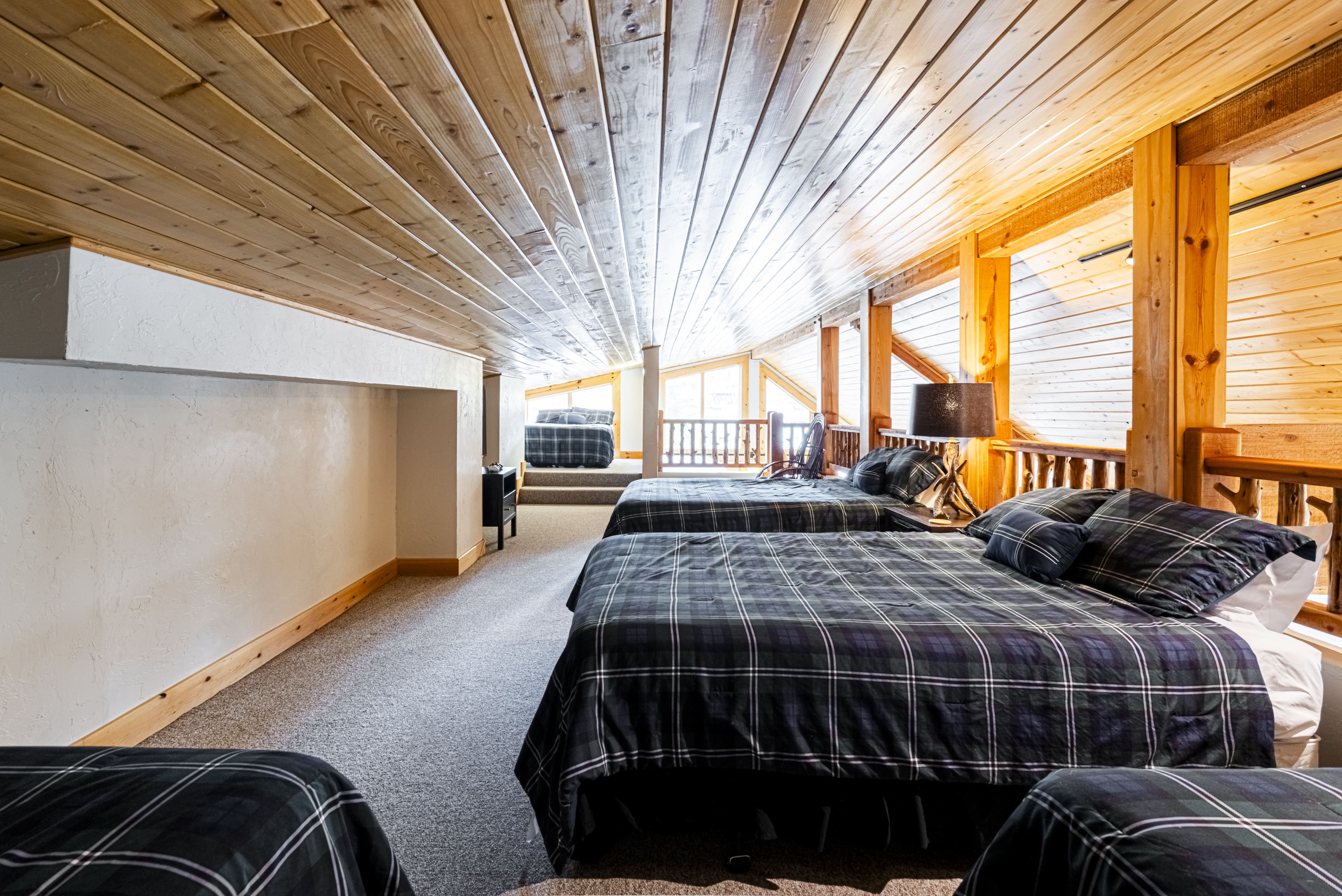 This remarkable penthouse is cleverly divided into two spacious units, each offering its own living area, fully-equipped kitchen, and three beautifully appointed bedrooms. The interior is a harmonious blend of modern design and cozy mountain charm, ensuring a warm and inviting atmosphere. Each unit boasts a private hot tub, offering a perfect spot to unwind after a day of exploring the nearby trails or ski slopes. With a total of six bedrooms and five bathrooms, this penthouse accommodates up to 22 guests, making it ideal for large families or group gatherings.