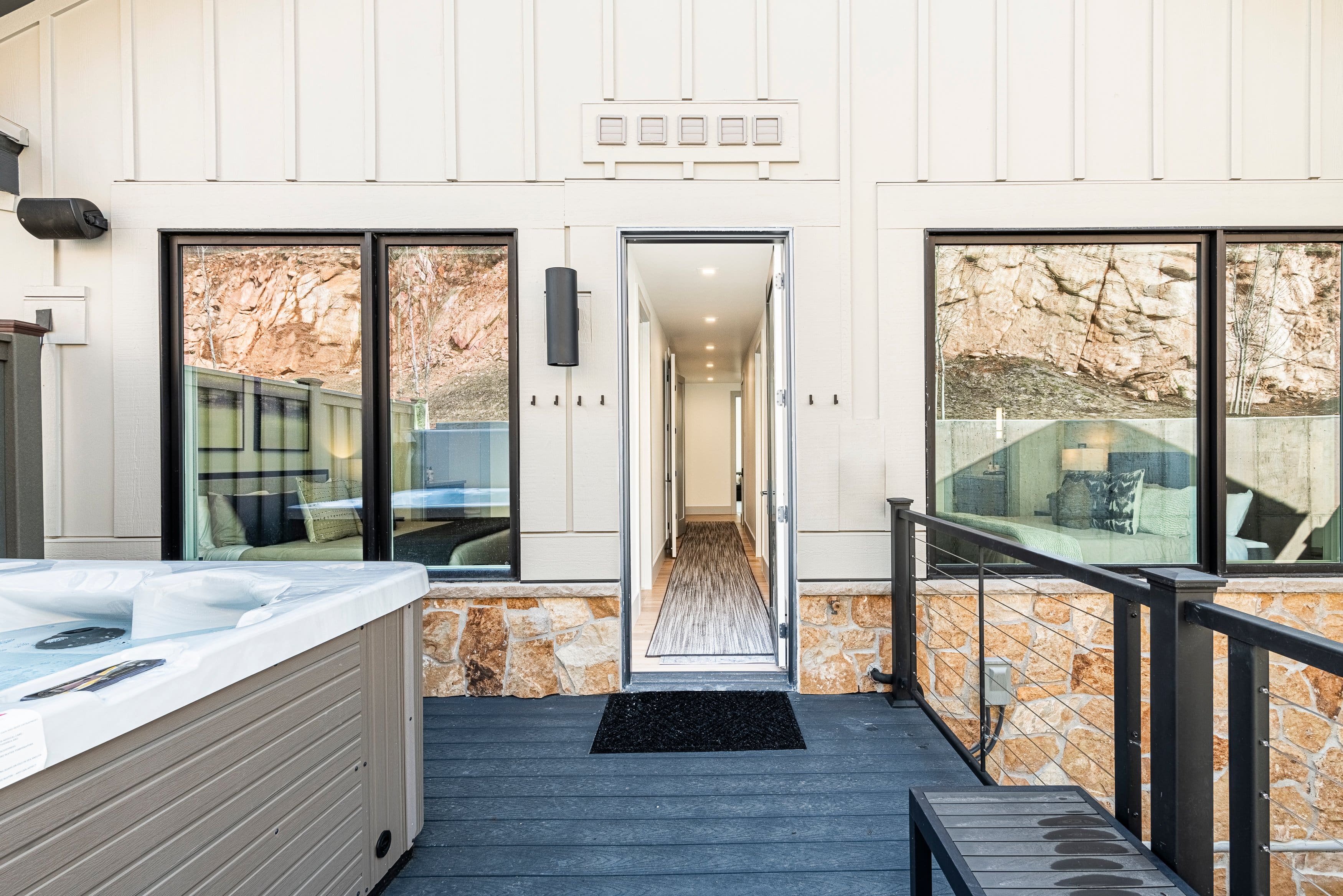 Outside, indulge in the tranquility of the surrounding landscapes. Relax in the hot tub after a day on the slopes or enjoy al fresco dining under the stars. The expansive terrace provides the perfect spot for soaking in the natural beauty of Park City.