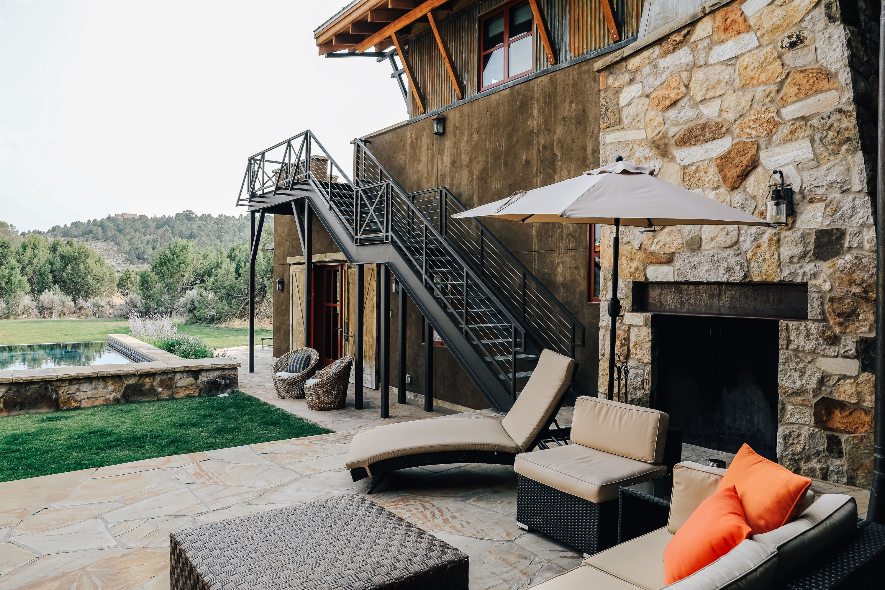 The outdoor spaces of Cielo di Elk truly elevate the experience, featuring a stunning swimming pool set within a beautifully landscaped courtyard. Surrounding the pool are comfortable chaise loungers, ideal for soaking up the sun or enjoying an evening under the stars. The outdoor dining area, complete with a BBQ, provides an inviting space for alfresco meals while taking in the picturesque views of the Elk Mountain range. The vast 35-acre property ensures privacy, allowing guests to immerse themselves in nature.
