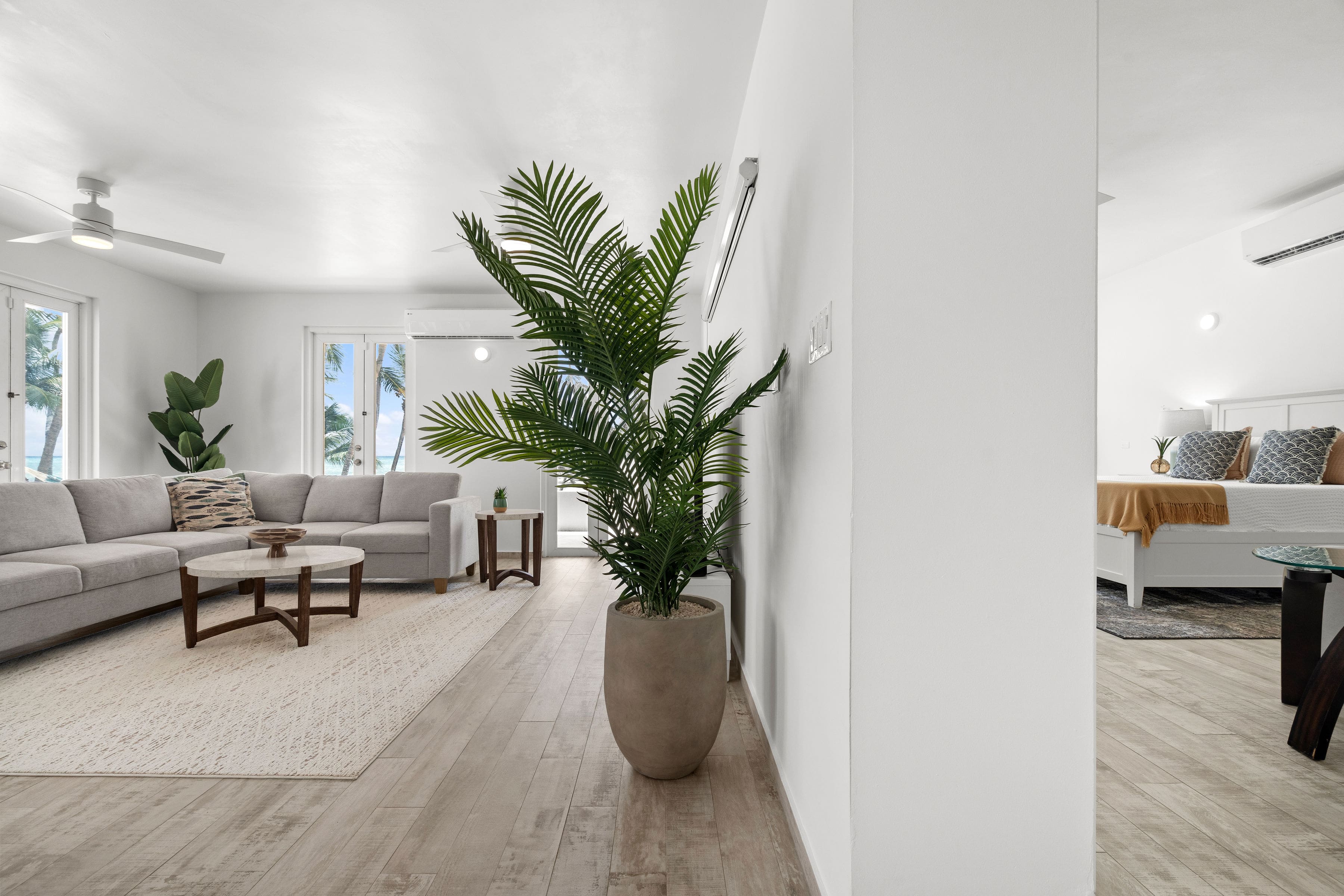 Step outside to discover a paradise of outdoor living spaces. The expansive terrace overlooks the azure waters, perfect for al fresco dining or sunbathing by the private swimming pool. Lush tropical gardens surround the property, providing a peaceful oasis, while the beach is just a stone’s throw away, offering endless opportunities for exploration and relaxation.
