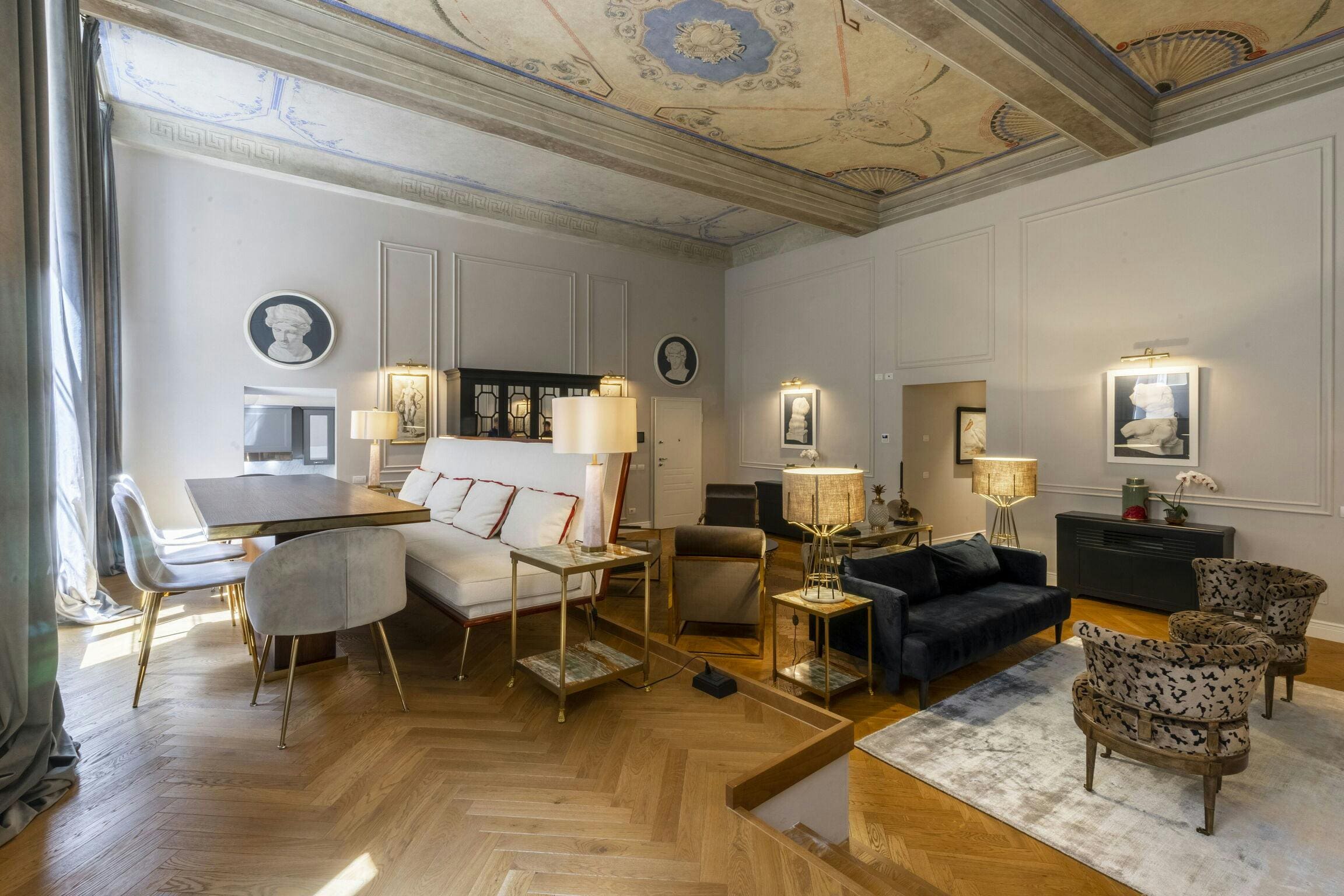 Experience the grandeur of a luxury apartment rental in Florence, where history and modernity converge in the heart of the Duomo district. This exquisite 16th-century property offers a memorable stay with its stunning frescoes and opulent details, perfect for those seeking an authentic Florentine adventure.