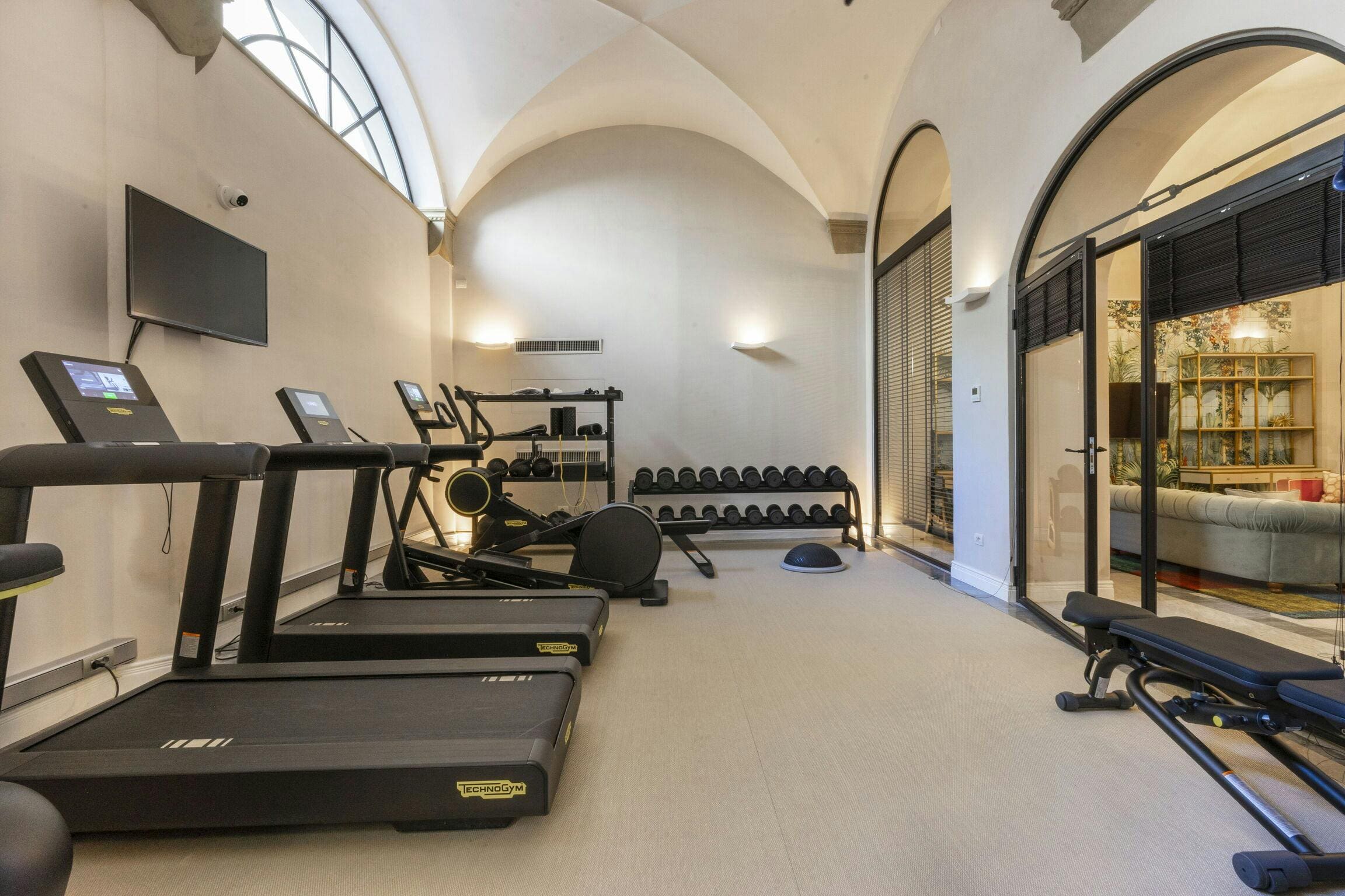 Guests can unwind on the shared outdoor terrace, offering a serene retreat amidst the vibrant cityscape. The terrace provides a perfect spot for al fresco dining, with panoramic views of Florence’s iconic architecture. The shared gym is also available for those wishing to maintain their fitness routine during their stay.