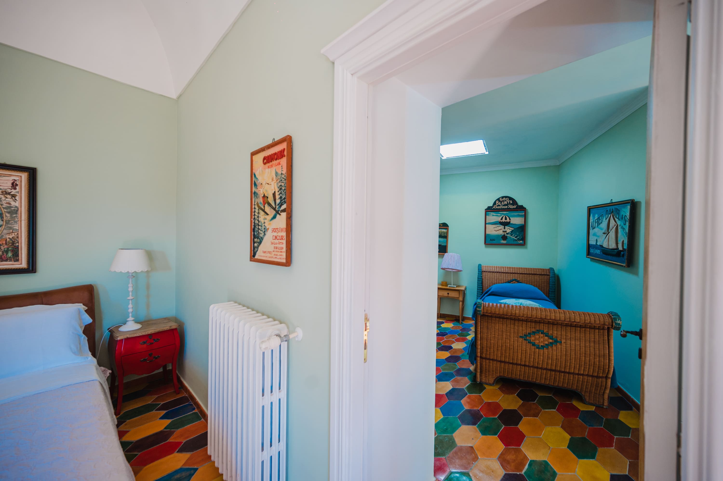 The interiors of Palazzo Scirocco are a testament to exquisite Italian design and comfort. The spacious living areas feature elegant furnishings and large windows that frame spectacular ocean vistas. The modern kitchen is fully equipped, offering everything needed for culinary adventures. The apartment boasts four well-appointed bedrooms, each with its own en-suite bathroom, providing privacy and luxury for all guests. A cozy single bedroom is conveniently located off one of the double bedrooms, perfect for families traveling with children.
