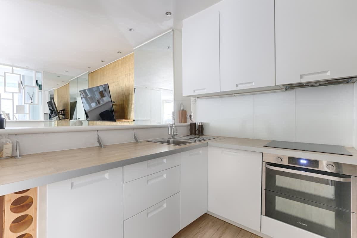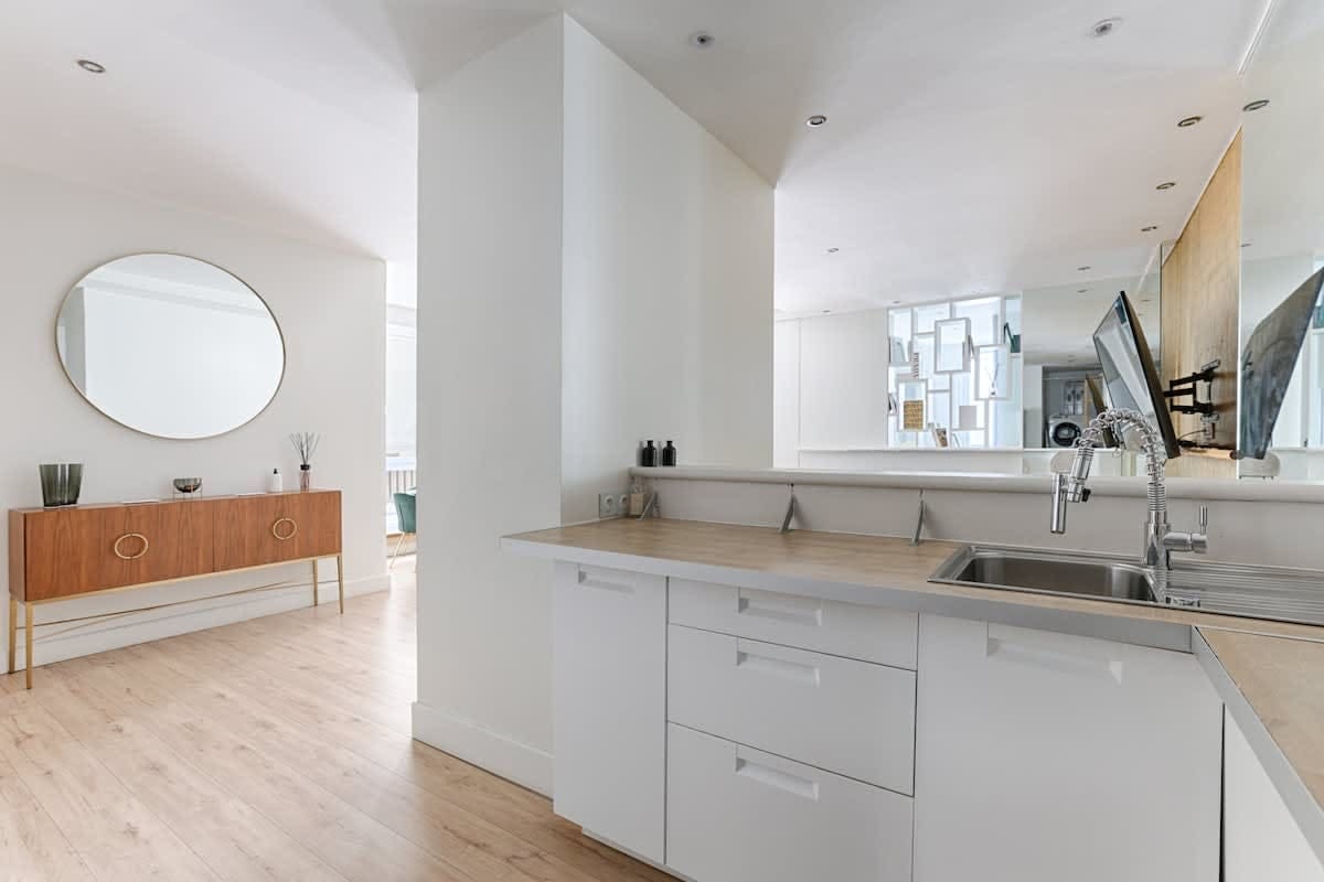 Accommodating up to four guests, this apartment features two bedrooms and two bathrooms. A cot is available upon request, enhancing its family-friendly appeal. Note the step up to the kitchen area. Guests can expect all modern conveniences, making it suitable for remote work. Browse our luxury villa rentals in France for more properties.