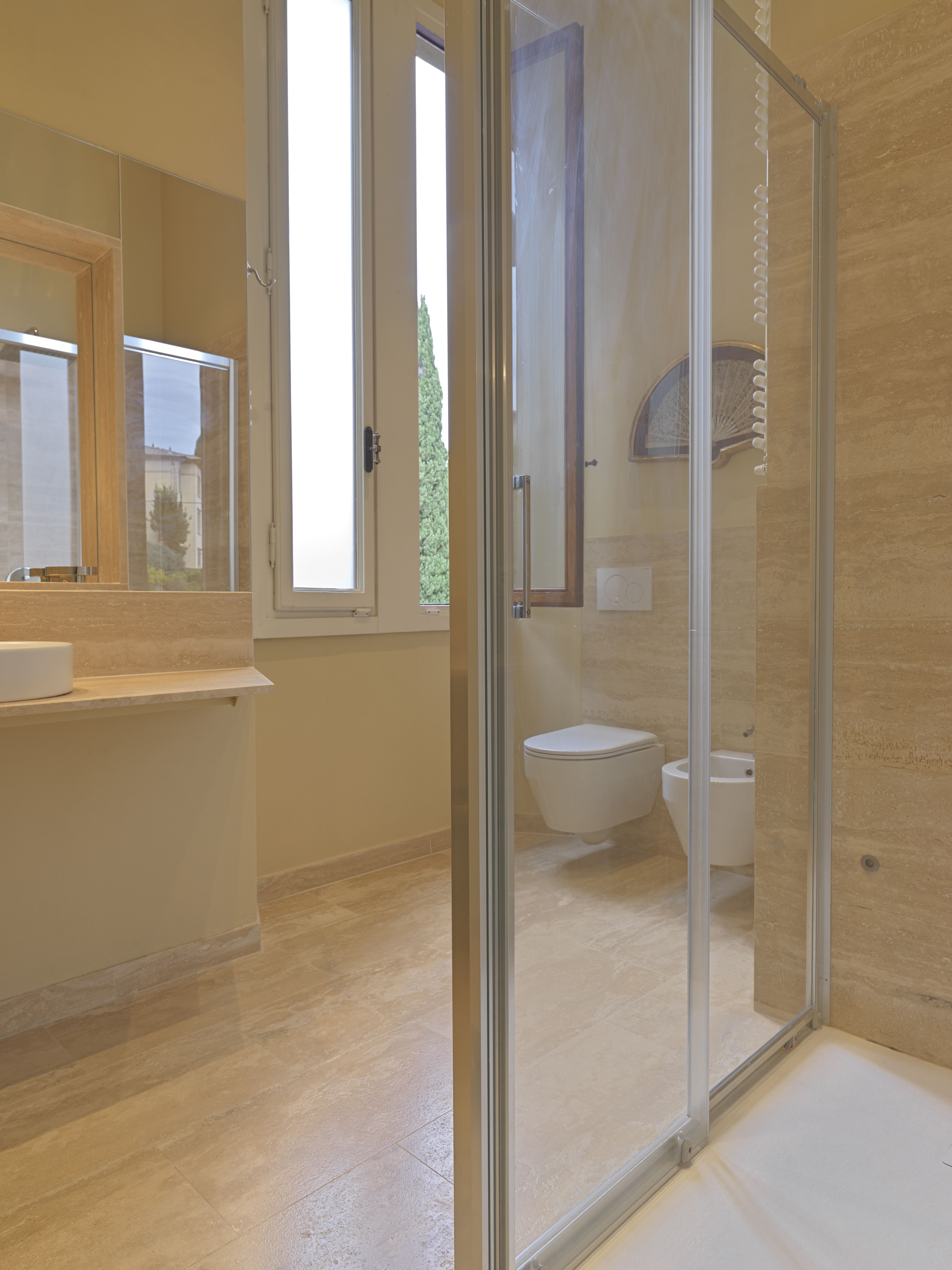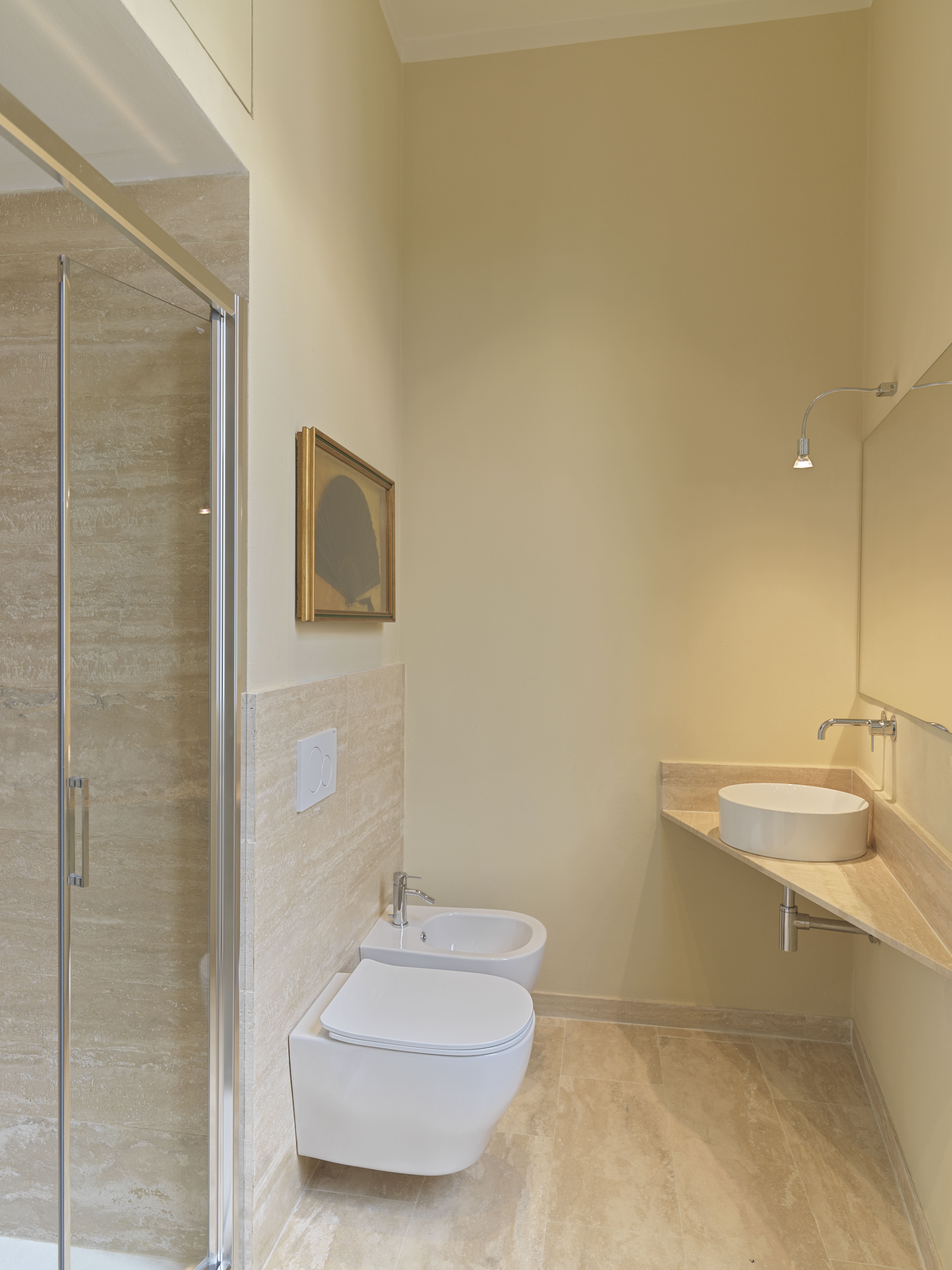 Beyond the French doors, a private garden awaits, offering a serene escape surrounded by lemon trees and lush greenery. It’s the perfect spot to unwind with a book or enjoy al fresco dining. The apartment’s location in Arcetri provides easy access to Florence’s cultural treasures, including the Boboli Gardens and Pitti Palace, both just a short walk away.