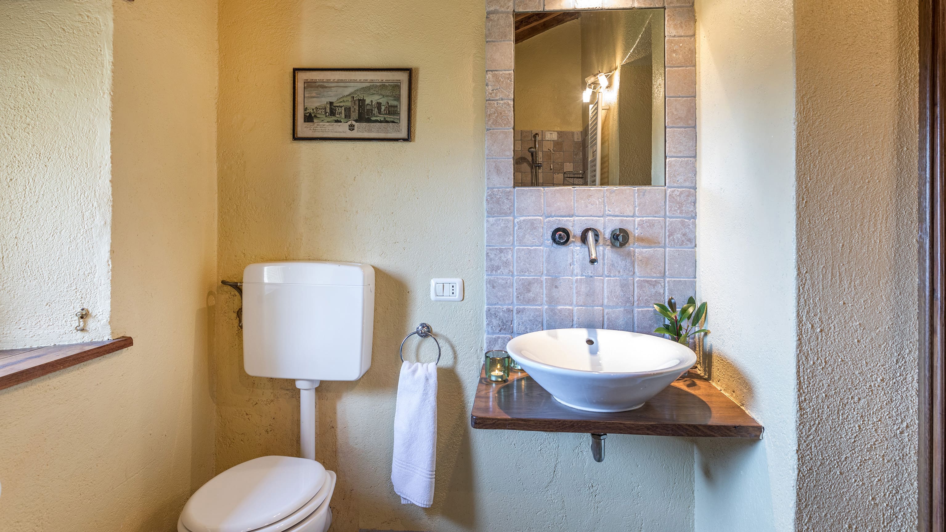 Step inside this magnificent apartment and be welcomed by an inviting blend of traditional Tuscan architecture and contemporary luxury. The interiors feature exposed wooden beams, terracotta floors, and stone walls, offering an authentic countryside ambiance. The spacious living area provides the perfect spot for relaxation, while the fully equipped country-style kitchen caters to all culinary needs. Upstairs, three bright and beautifully appointed bedrooms await, each with an ensuite bathroom, ensuring privacy and comfort for all guests.