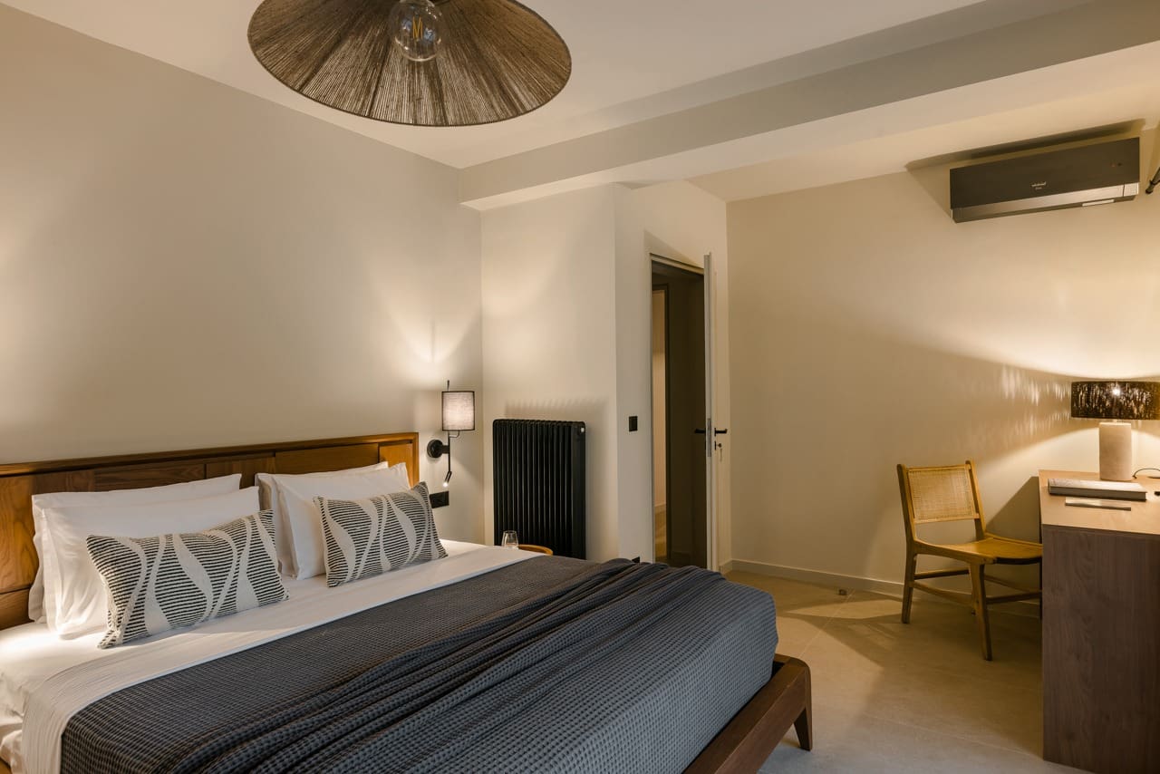The apartment can accommodate up to eight guests across its four bedrooms. With three bathrooms, a swimming pool, and air-conditioning, it ensures a comfortable stay. Pets are welcome, and a cot can be provided for little ones. While not every bathroom has been photographed, expect consistent style and quality throughout. To explore more, browse our luxury villa rentals in Greece.