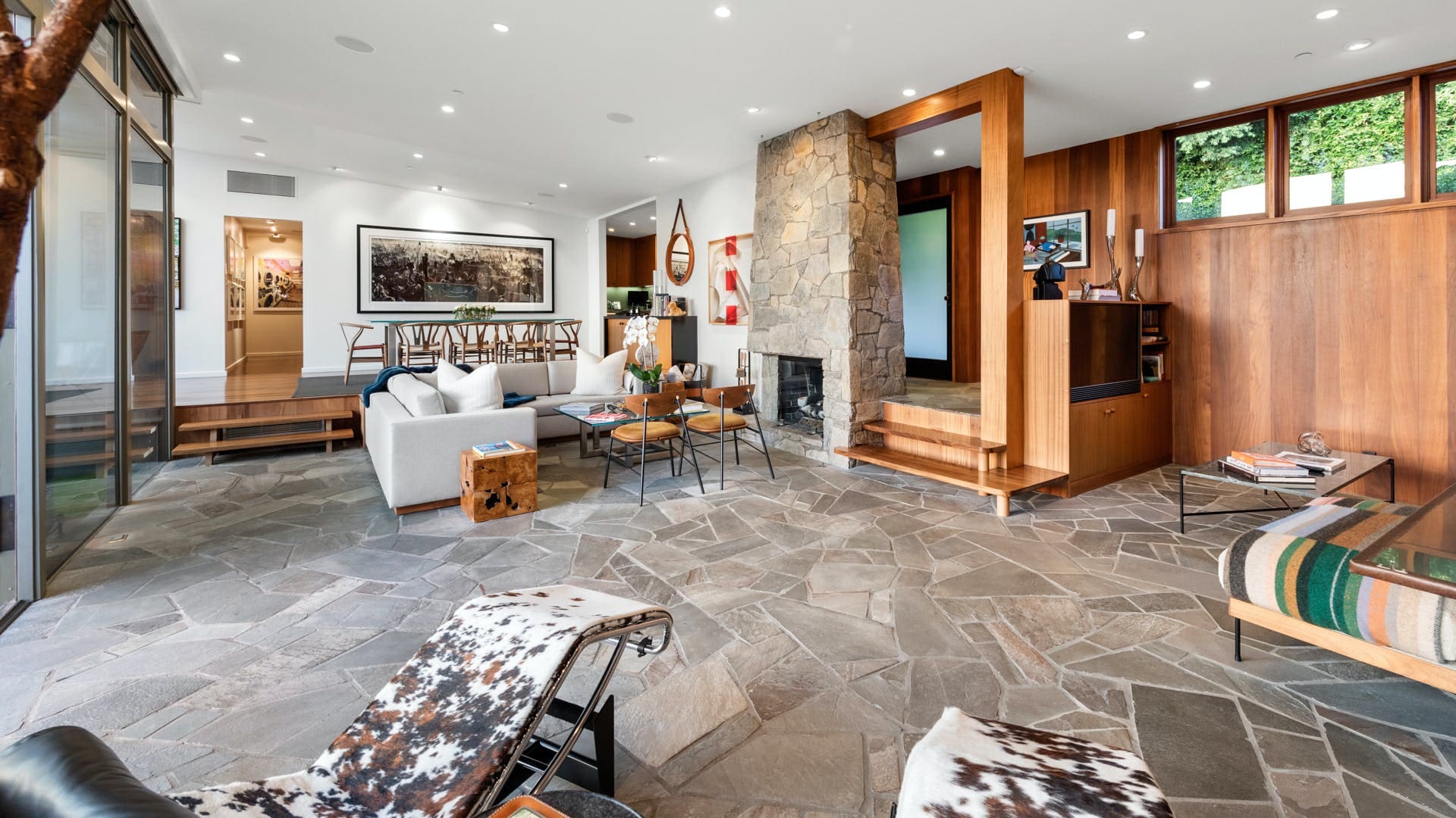 Step outside to discover beautifully landscaped terraces that provide the ideal setting for outdoor dining or lounging. The views of the Los Angeles skyline are truly unmatched, offering a serene backdrop for relaxation. Whether you’re enjoying a morning coffee or an evening cocktail, the outdoor spaces enhance the luxury experience.
