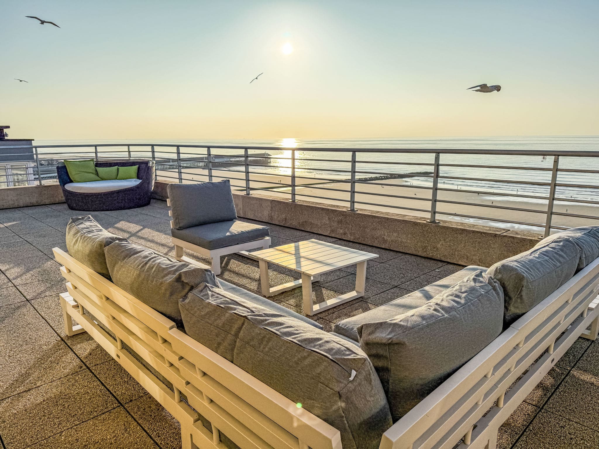 The apartment’s crowning glory is its expansive 40m2 terrace, offering breathtaking panoramic views of the North Sea. This outdoor sanctuary provides the perfect setting for morning coffee, sunset cocktails, or al fresco dining while watching the ever-changing seascape. The terrace’s elevated position ensures complete privacy while maximizing the spectacular coastal vistas.