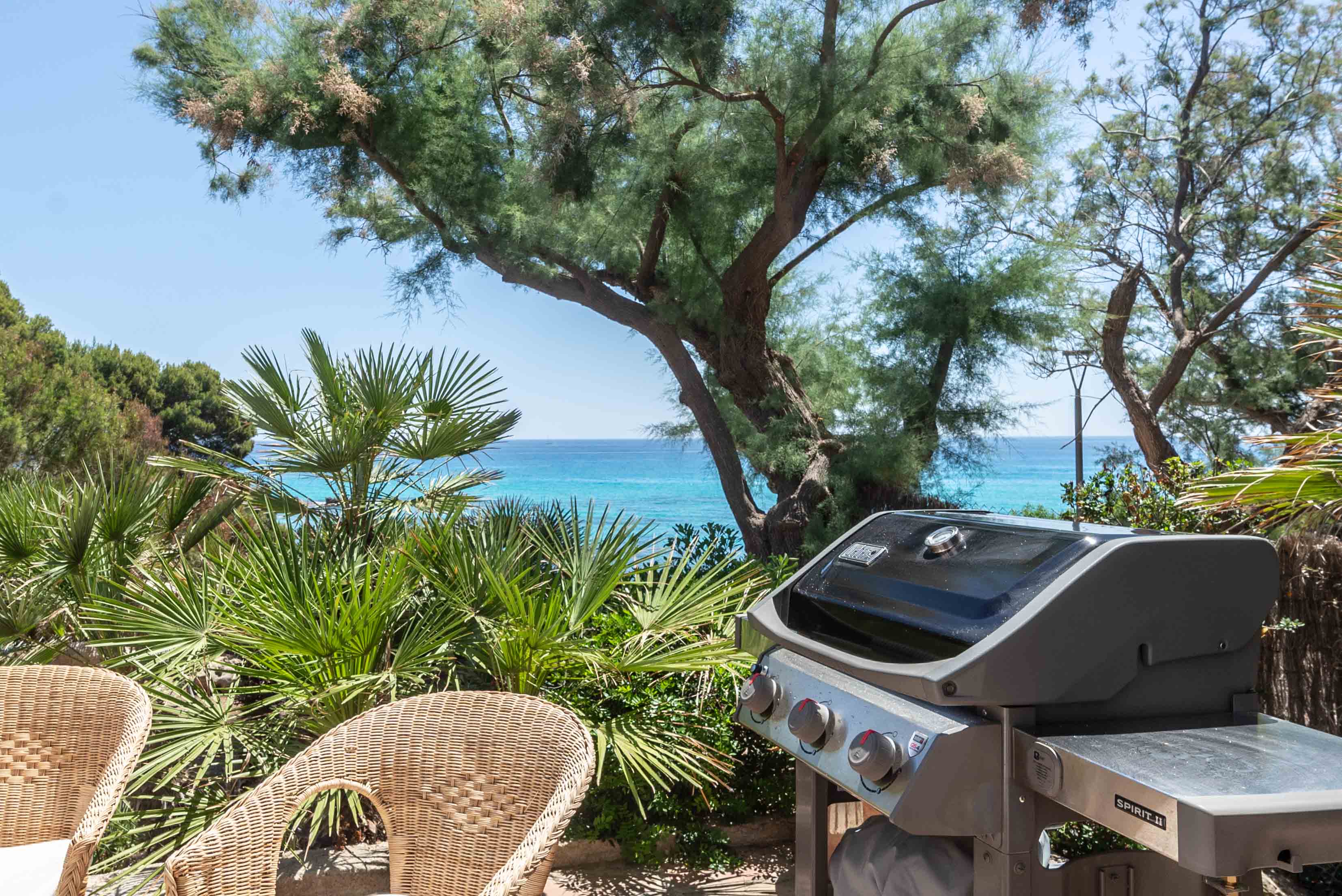 The outdoor spaces are a true highlight, offering direct access to the promenade and the beach beyond. Enjoy dining al fresco on the terrace, where the sound of waves sets the perfect backdrop. The garden is an inviting spot for sunbathing, while the rooftop terrace presents an unparalleled view of the sea. This is Mallorca at its most enchanting.
