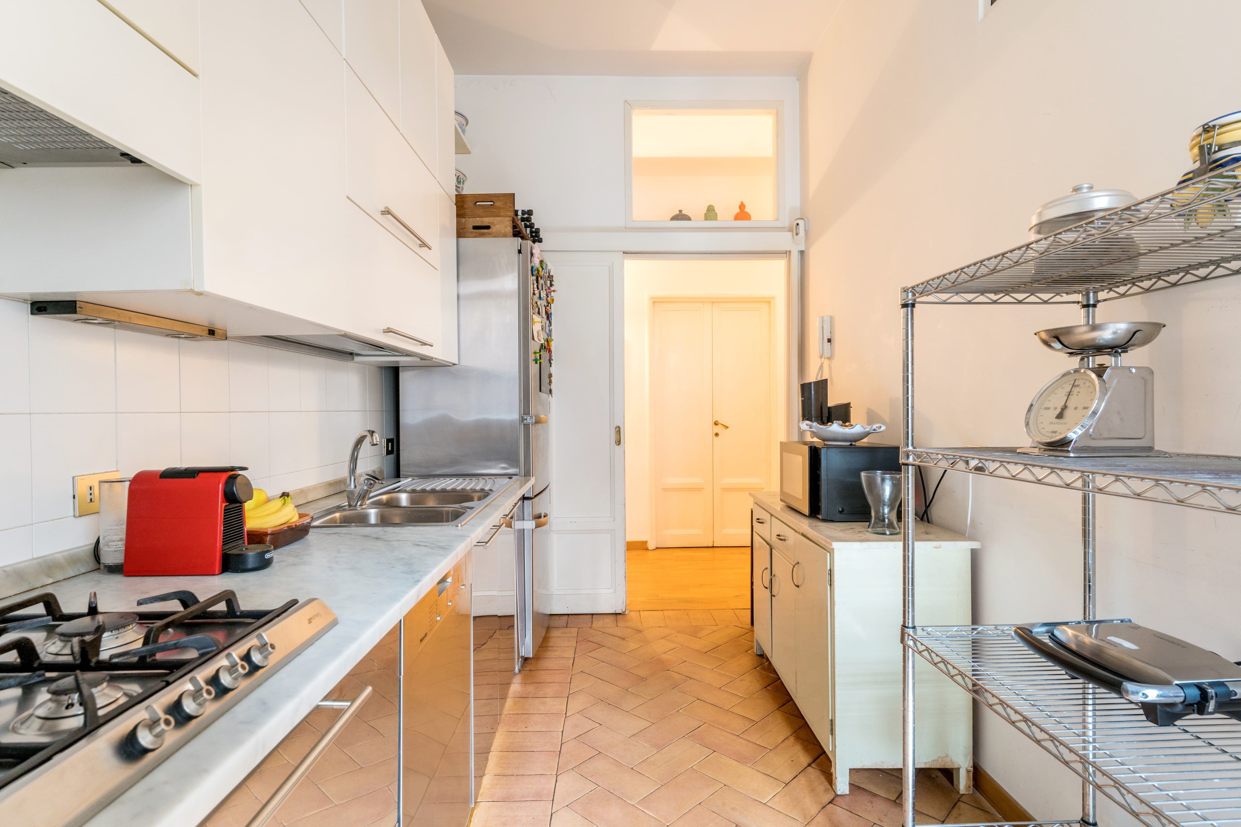 The apartment accommodates up to six guests, with three bedrooms and two bathrooms. At full occupancy, two guests will sleep on a sofa bed in the living area. Be prepared for some street noise, especially from the main bedroom. Free luggage storage is available for convenience. Browse our luxury villa rentals in Italy for more properties.