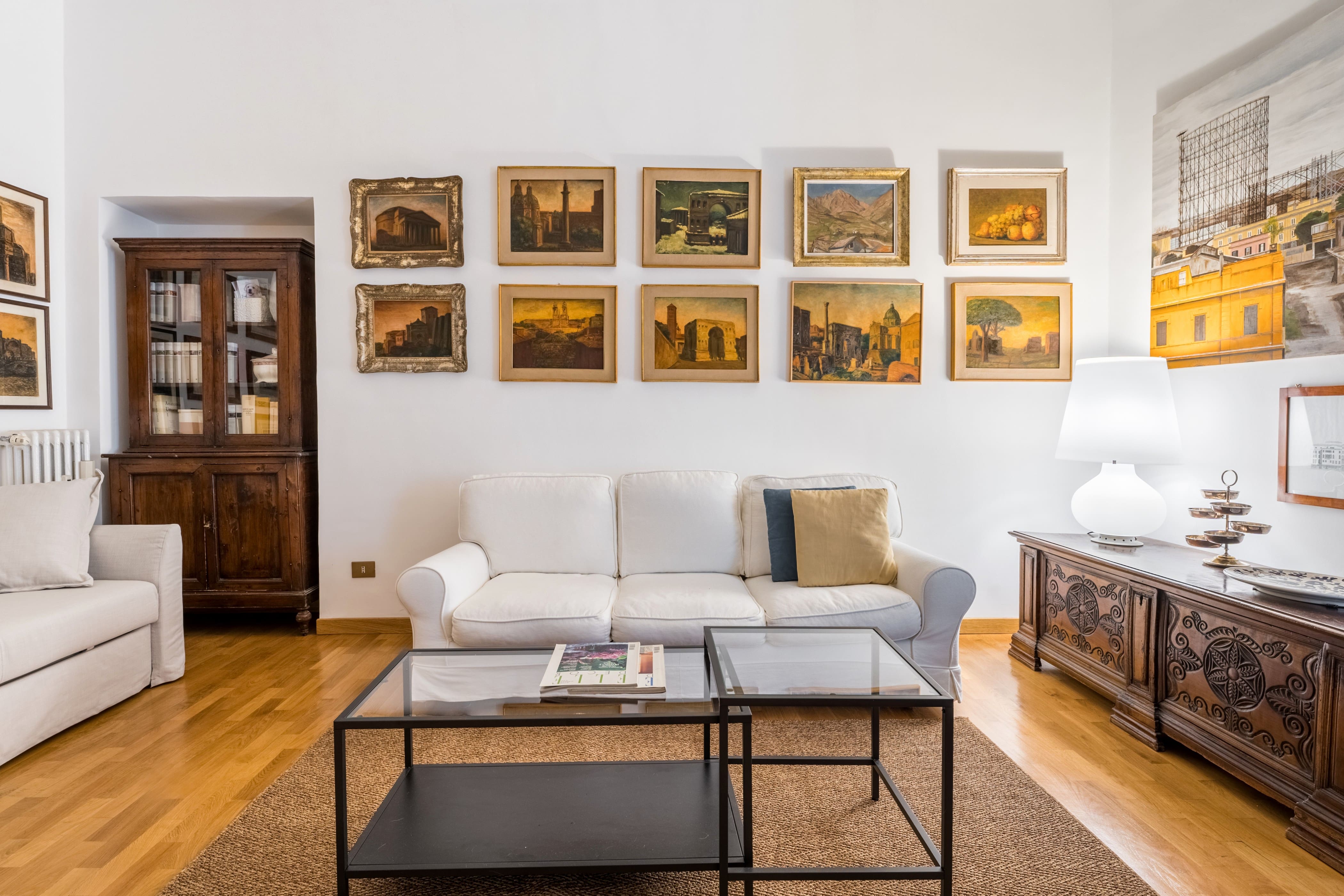 Though set in a bustling city area, this apartment provides a serene escape from the vibrant streets below. While there are no private outdoor spaces, the apartment’s prime location means you’re just steps away from Rome’s iconic sites and lush parks. Enjoy a morning espresso with a view of the bustling Campo de’ Fiori below.