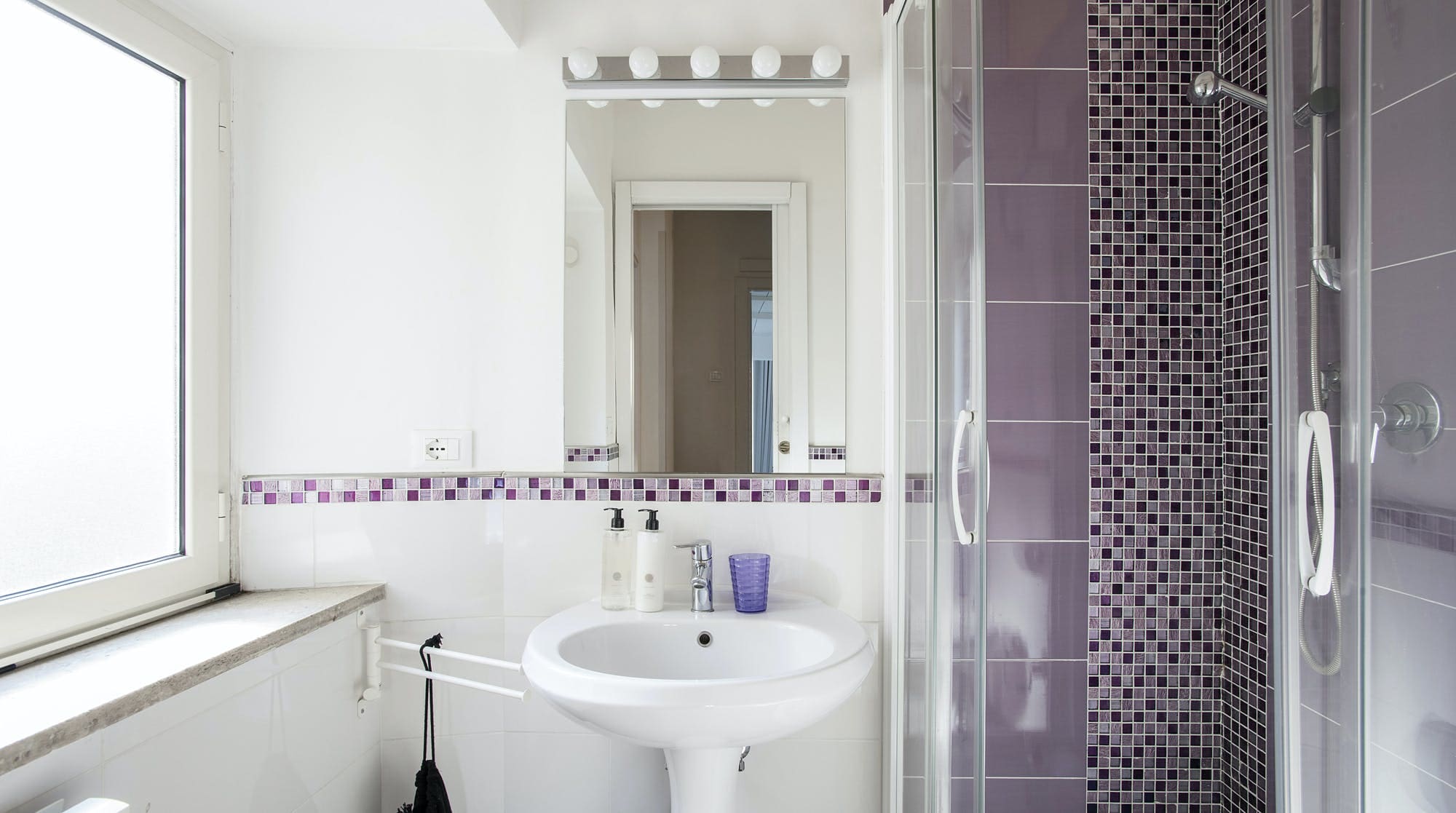 The apartment accommodates seven guests across five bedrooms and four bathrooms. While there is no on-site parking, 24-hour parking is available nearby for a fee. Please note that sharing is necessary in the mezzanine bedrooms, and the master suite lacks an ensuite. Explore more options with our luxury villa rentals in Italy.