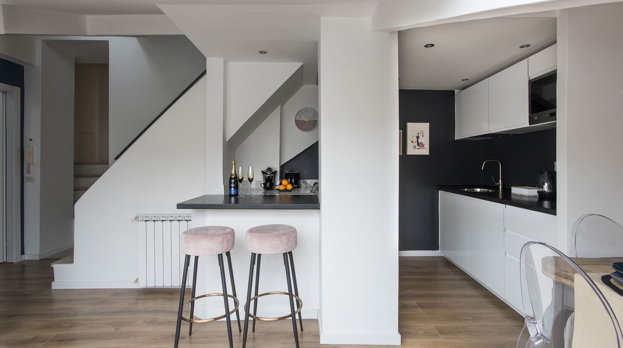 Step into a world of refined sophistication as you enter this multi-level apartment. The interior is a seamless blend of contemporary design and historical elements, creating a unique ambiance. The three spacious bedrooms are adorned with luxurious furnishings and offer serene retreats after a day of exploring. The living areas are perfect for relaxation, and the kitchen is equipped for preparing light meals, allowing you to indulge in local delicacies at your leisure.