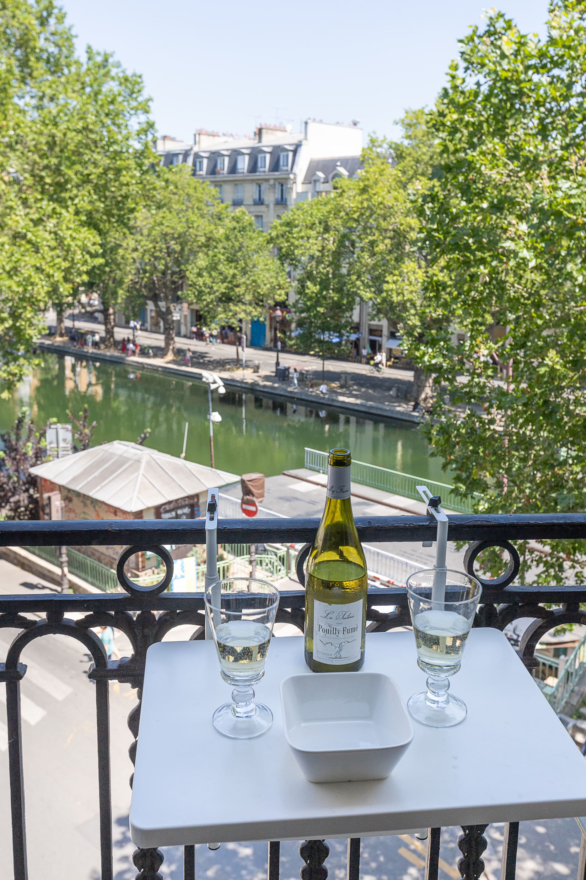 A: Yes, the apartment offers beautiful views of the Canal Saint Martin from its private balcony.