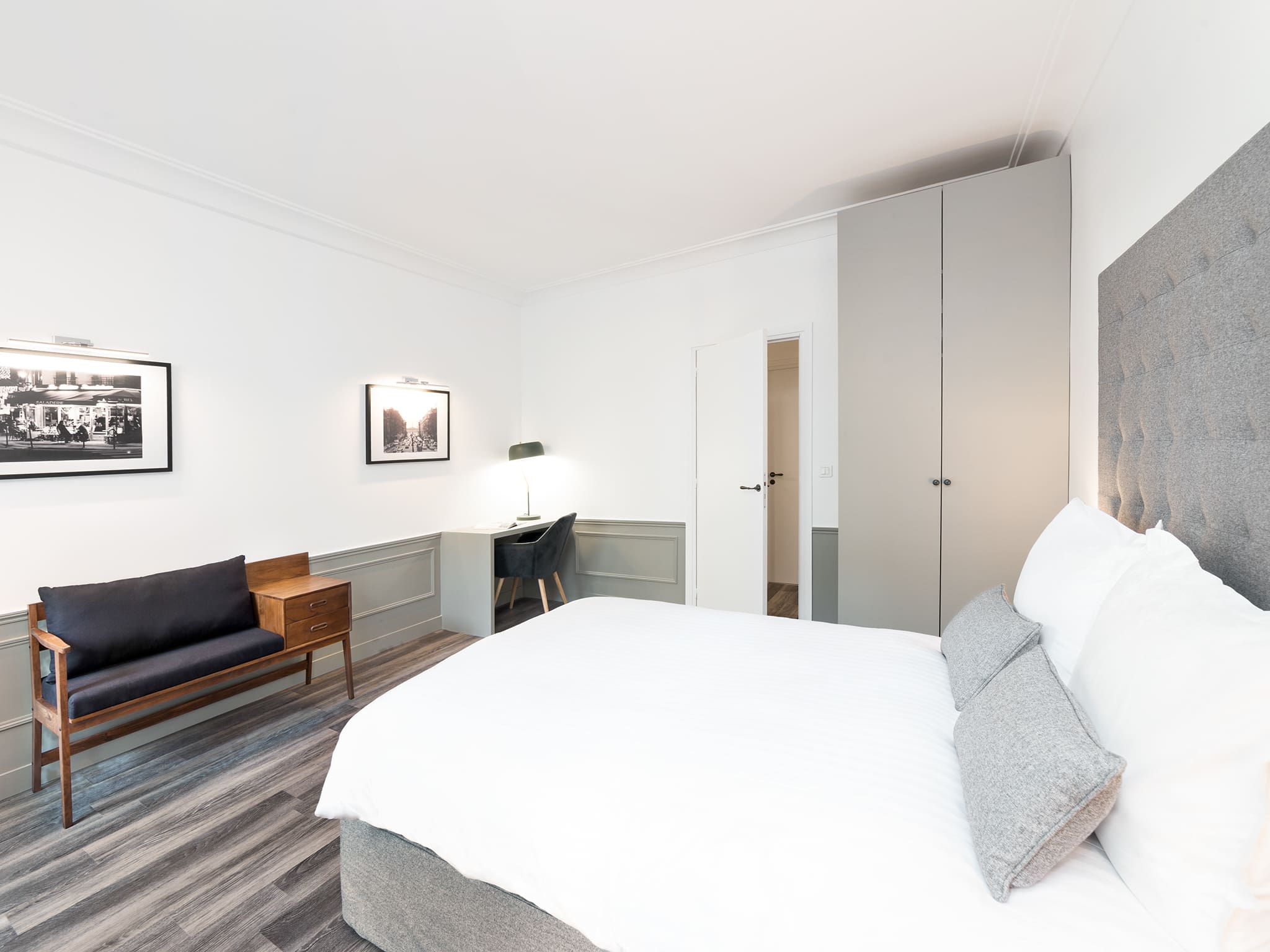 With three bedrooms and two bathrooms, this apartment comfortably accommodates up to eight guests. While the fireplaces are decorative, they add a charming touch to the bedrooms. The apartment includes a workspace and several laptop-friendly areas for remote working. Guests checking in can avail of in-person assistance, and those arriving between 8pm and 10pm can request a late check-in for an additional fee. Paid parking is available off-premises. For more options, browse our luxury villa rentals in France.