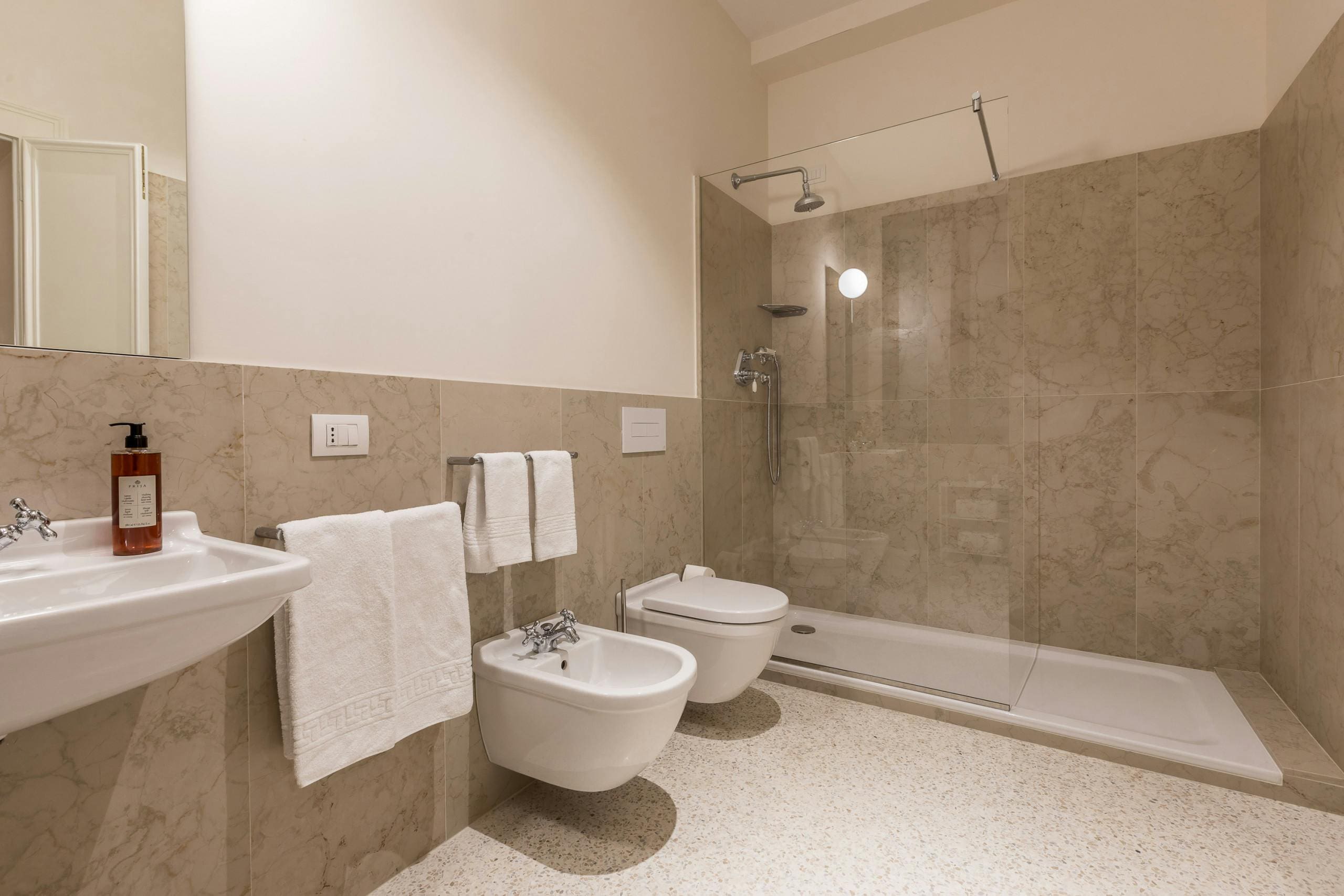 Accommodating up to six guests, the apartment features three bedrooms and two bathrooms. The building includes a lift, ensuring easy access for all guests. Note that the property is subject to municipality regulations regarding heating and air conditioning. Browse our luxury villa rentals in Italy for more properties.