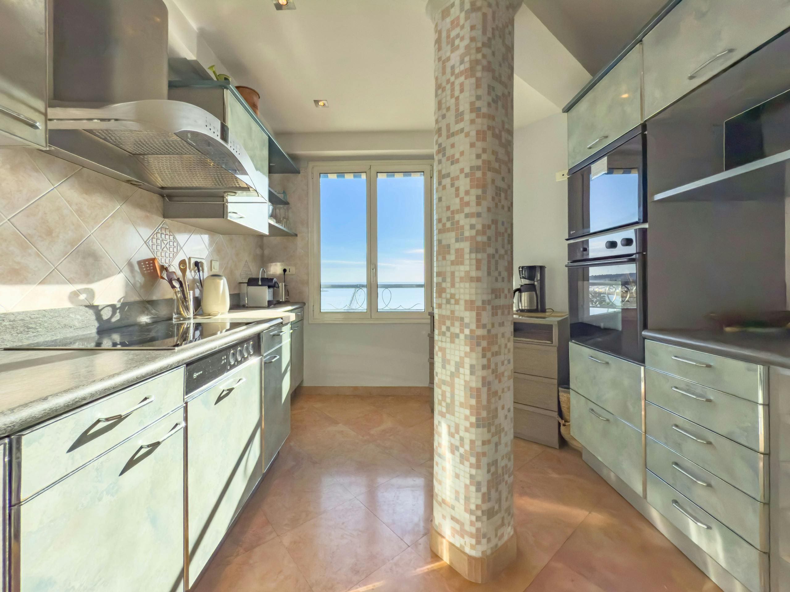 The sophisticated interior of this sixth-floor property exudes modern elegance and comfort. With three well-appointed bedrooms and two luxurious bathrooms, this house is designed to accommodate up to four guests. The open-plan living and dining area offers ample space for relaxation or entertaining, with large windows framing stunning sea views. The separate kitchen is perfect for those who enjoy culinary pursuits, equipped with everything you need to create gourmet meals.