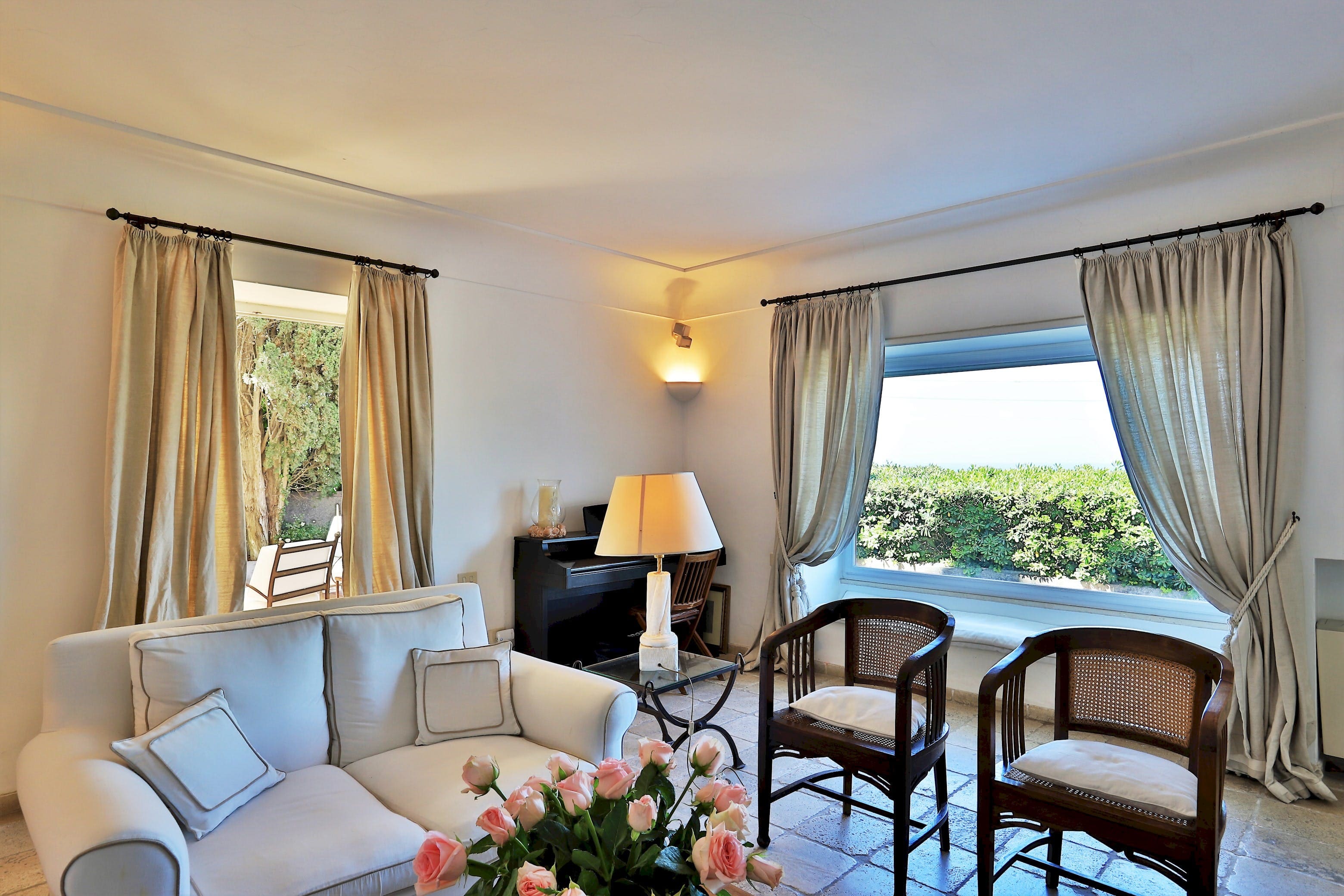 Casa Scirocco Sorrento welcomes up to six guests with its three bedrooms and three bathrooms. Maid services are included, with the housekeeper residing on-site to ensure a seamless stay. Note that the fireplace is not operational. Discover more options by browsing our luxury villa rentals in Italy.