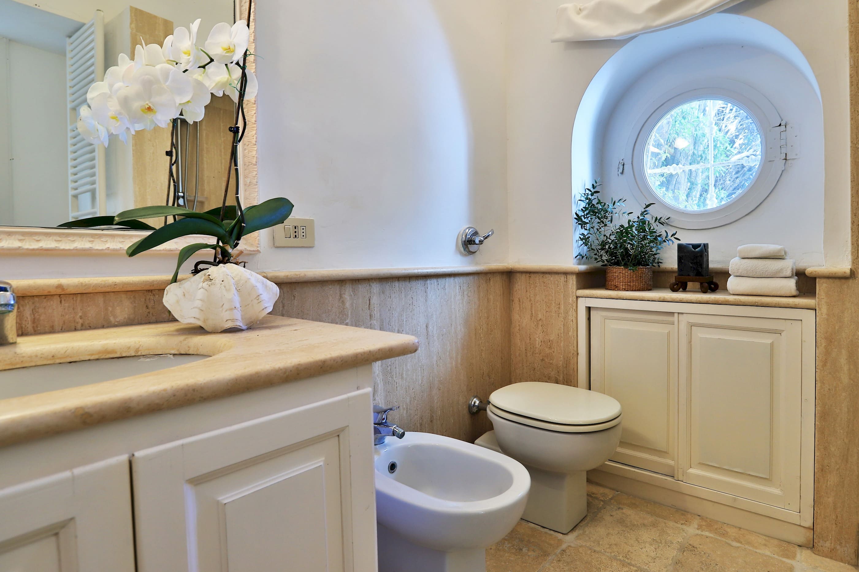 The interiors of Casa Scirocco Sorrento effortlessly blend elegance with comfort, creating a perfect haven for relaxation. With three spacious bedrooms and three modern bathrooms, this apartment accommodates up to six guests in style. The living areas are designed with a neutral color palette, allowing the vibrant external scenery to enhance the ambiance. Air conditioning ensures a comfortable stay, while large windows fitted with mosquito nets invite refreshing breezes. The fully equipped kitchen and dining space provide all the amenities needed for a delightful culinary experience.