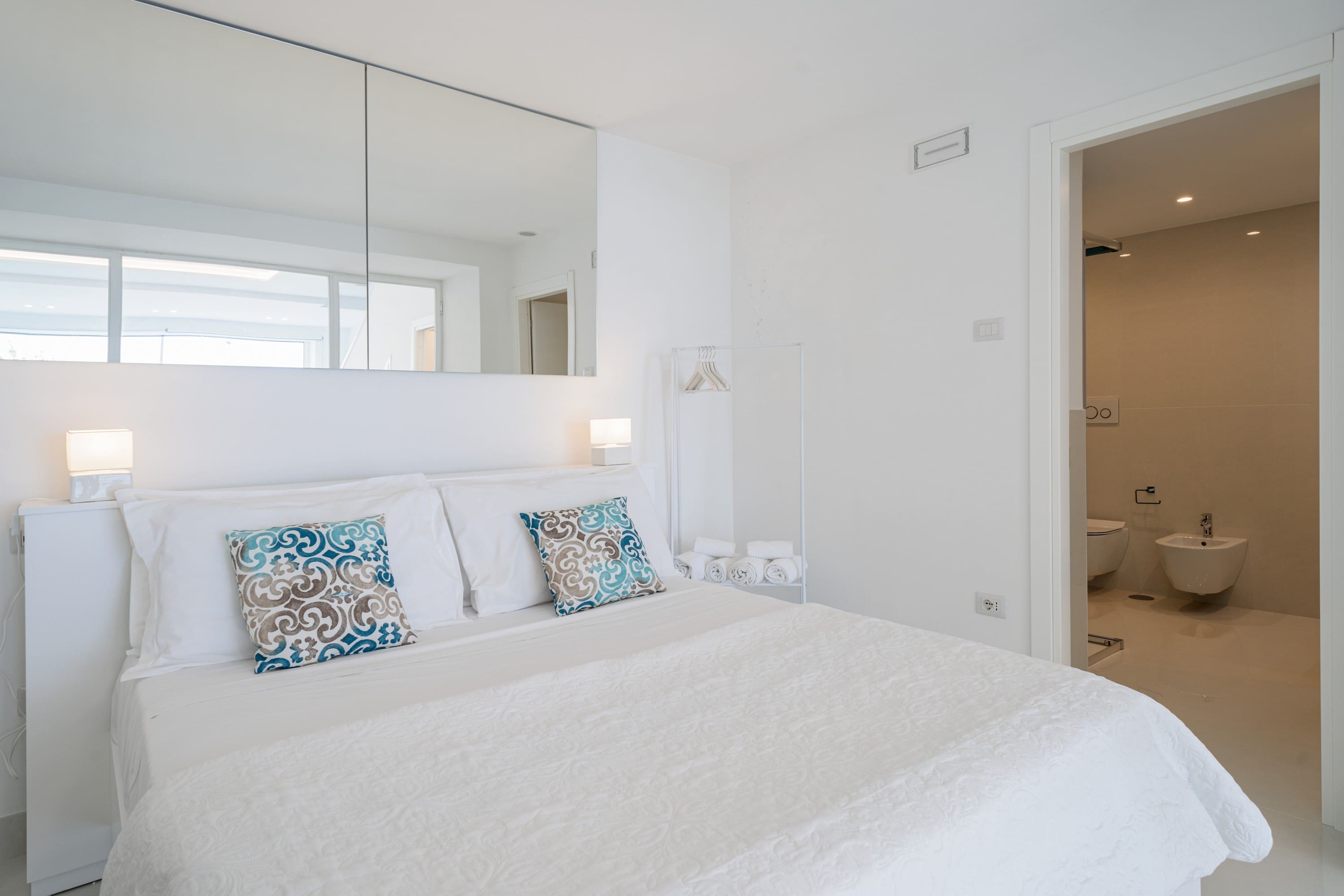 Step out onto the private terrace, a highlight of this luxury apartment rental in Sorrento. It’s the perfect spot to unwind with a glass of limoncello while gazing at the picturesque views of the sea. The nearby beaches and vibrant streets of Sorrento are a mere stroll away, allowing you to immerse yourself in the local culture and scenery.