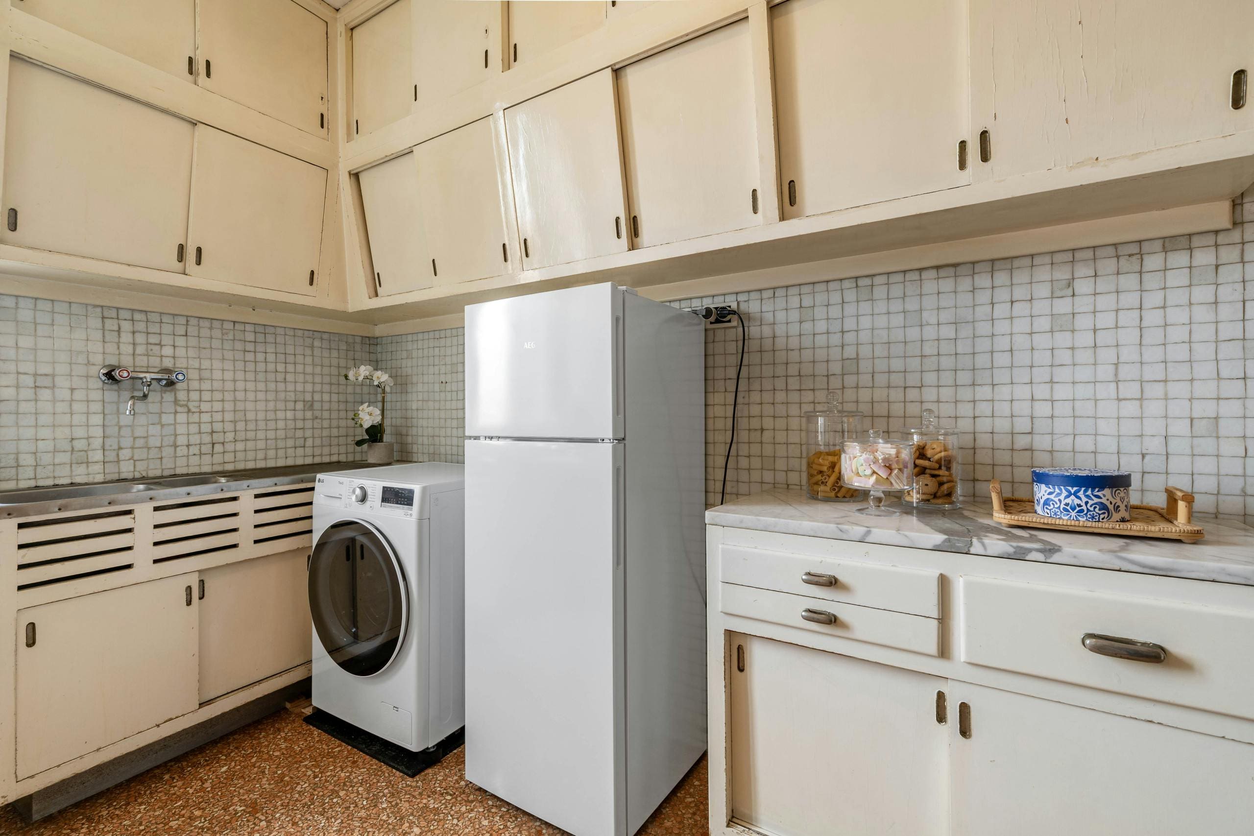 Step inside this unique apartment and discover a blend of classic Venetian style and modern comfort. The property spans two levels, with the main living spaces on the lower floor and bedrooms on the upper floor. The living room is spacious, featuring elegant furnishings and large windows that fill the space with natural light. The fully equipped kitchen, though traditional in style, provides everything needed for preparing delicious meals. Each bedroom opens onto a private terrace, offering a peaceful retreat and beautiful vistas. One bedroom even includes a cozy lounge area, perfect for relaxation.
