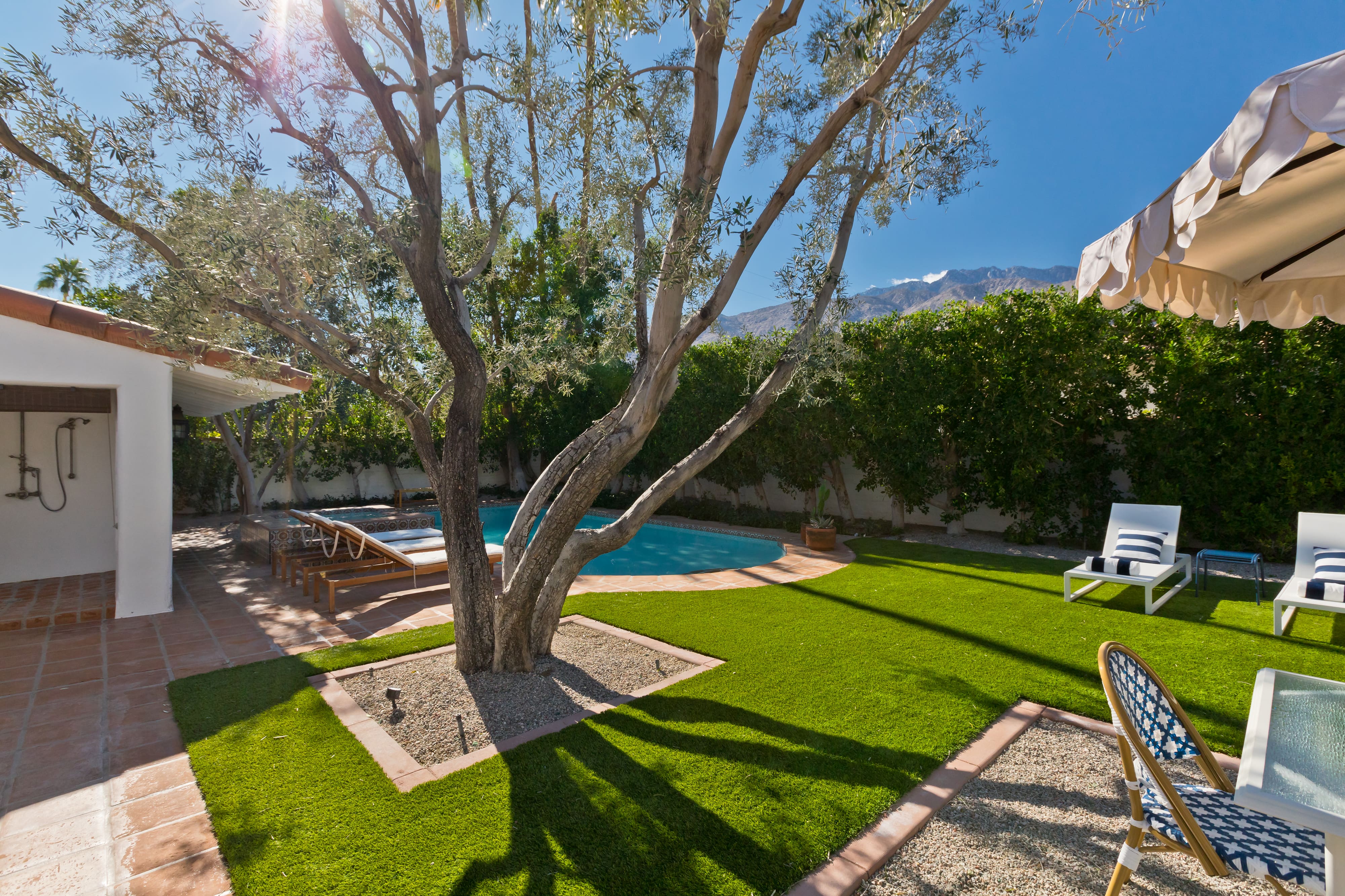 Outside, the property beckons with its inviting swimming pool and hot tub, perfect for enjoying the sun-drenched days. Savor meals on the terrace, surrounded by the unique desert flora. An outdoor shower adds a touch of luxury, making this a true oasis in Palm Springs.