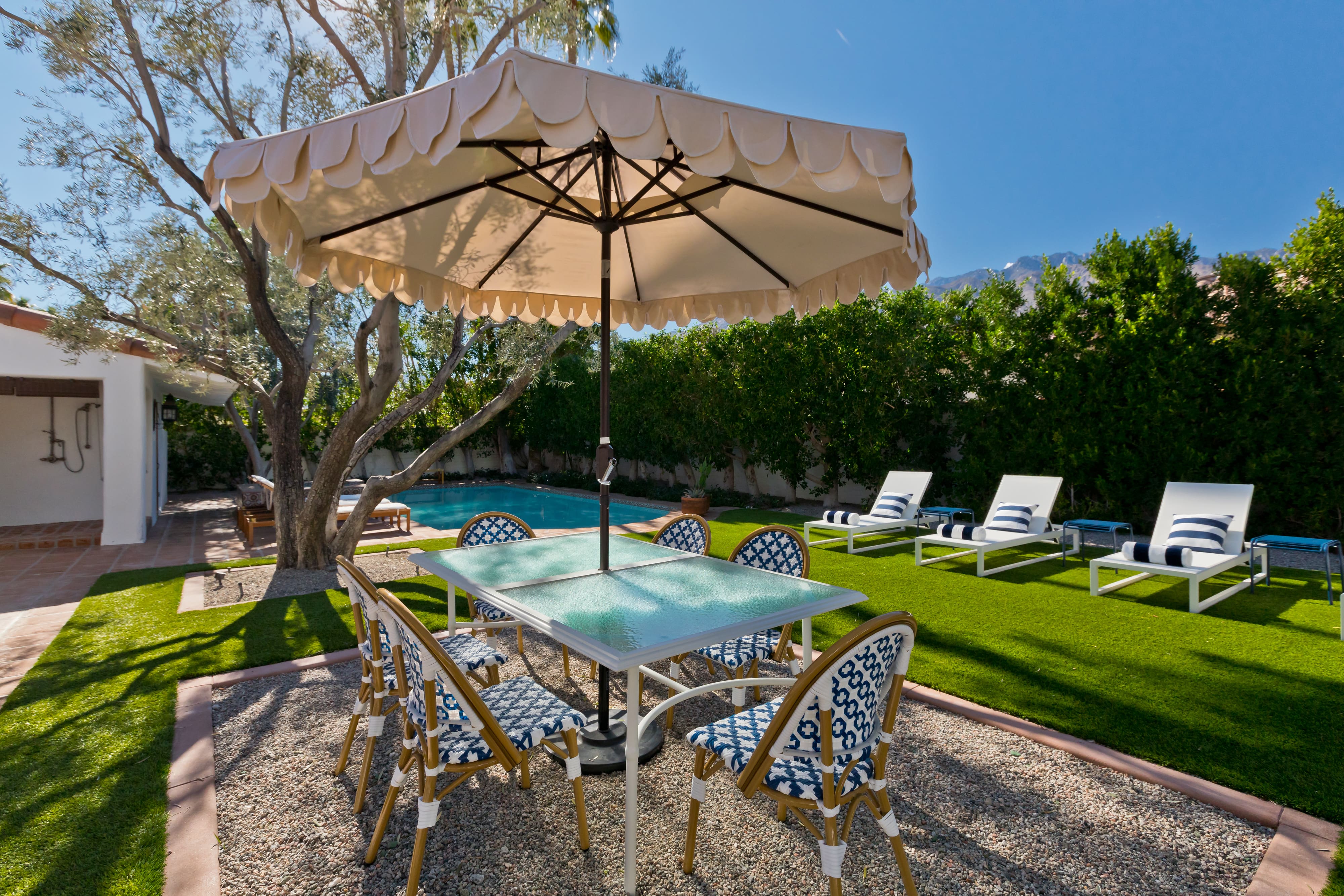 Embrace the outdoors in the apartment’s private resort-style yard, a true oasis in the heart of Palm Springs. The centerpiece is a shimmering swimming pool, perfect for leisurely swims or sun-soaked relaxation. As evening falls, gather around the fire pit lounge or soak in the hot tub with a glass of wine, watching as the sunset paints the surrounding mountains in hues of orange and pink. The patio area, complete with a BBQ grill, invites you to savor al fresco dining beneath the stars.
