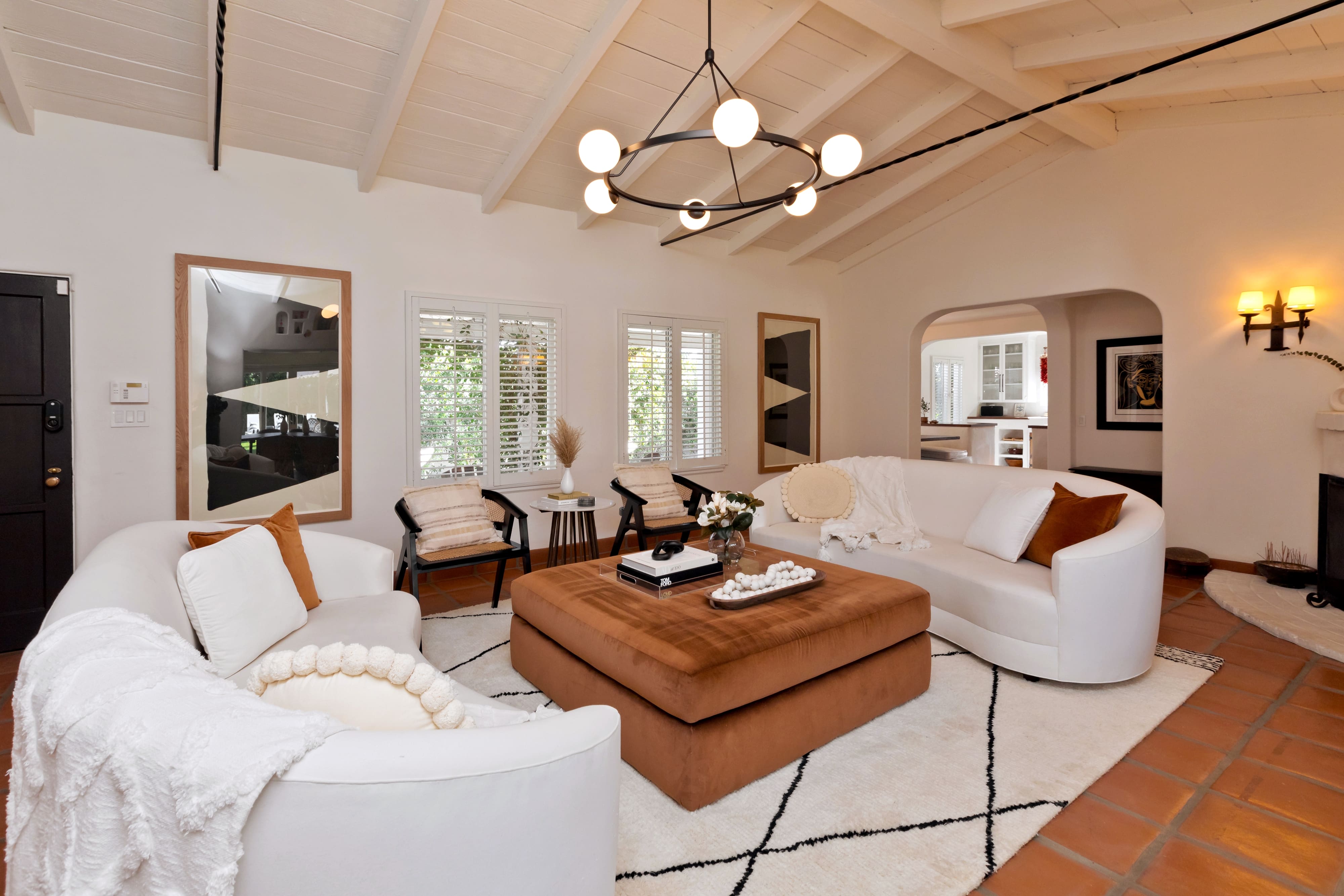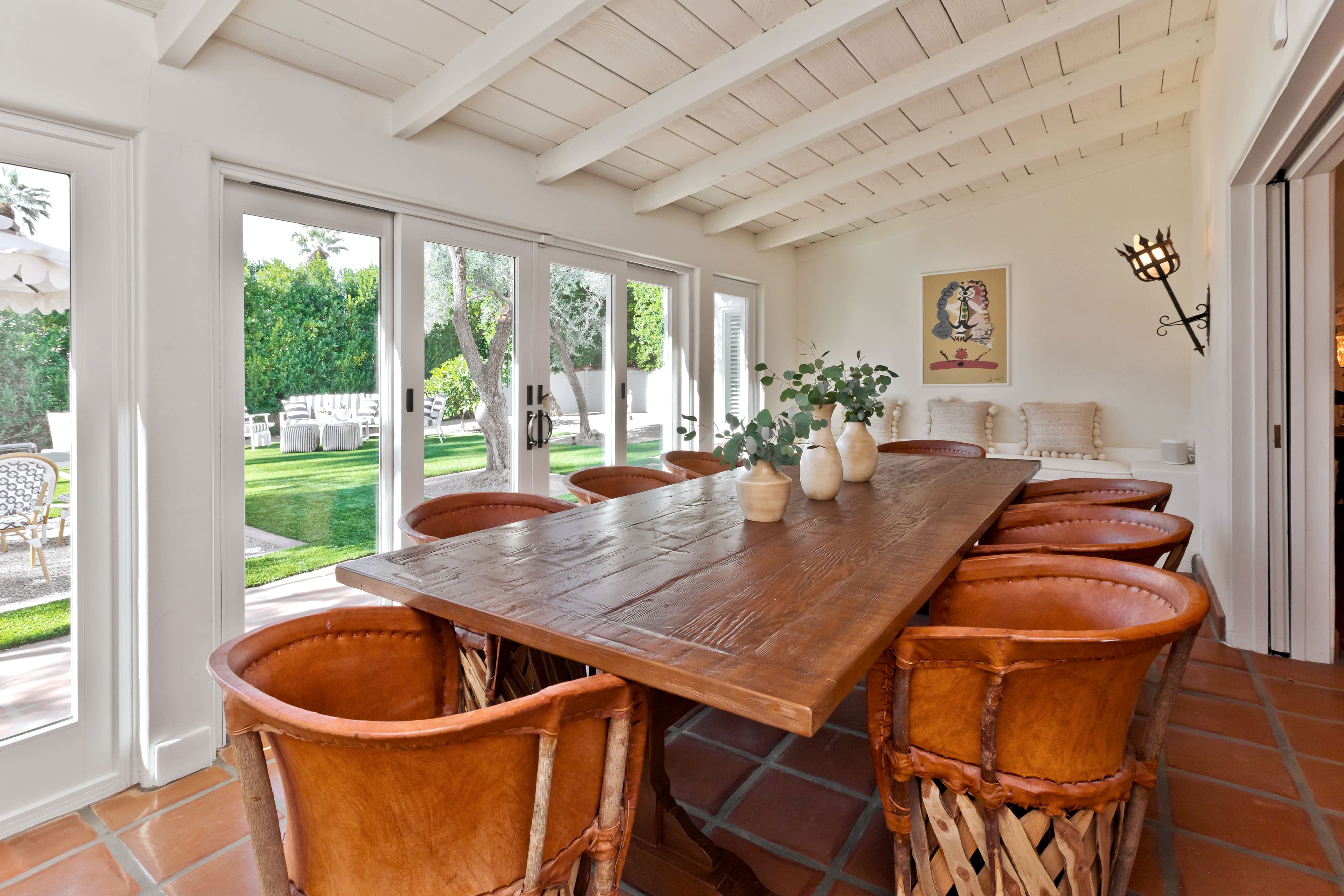 Step inside and be welcomed by the spacious, open-plan interiors that embody the essence of Palm Springs’ iconic mid-century modern design. The living area features exposed beams and tongue-and-groove ceilings, complemented by vibrant, colorful décor that exudes a chic yet relaxed atmosphere. The fully equipped kitchen is perfect for culinary enthusiasts, while the three elegantly furnished bedrooms offer tranquility and comfort, accommodating up to six guests. Two stylish bathrooms complete the interior, ensuring every convenience during your stay.