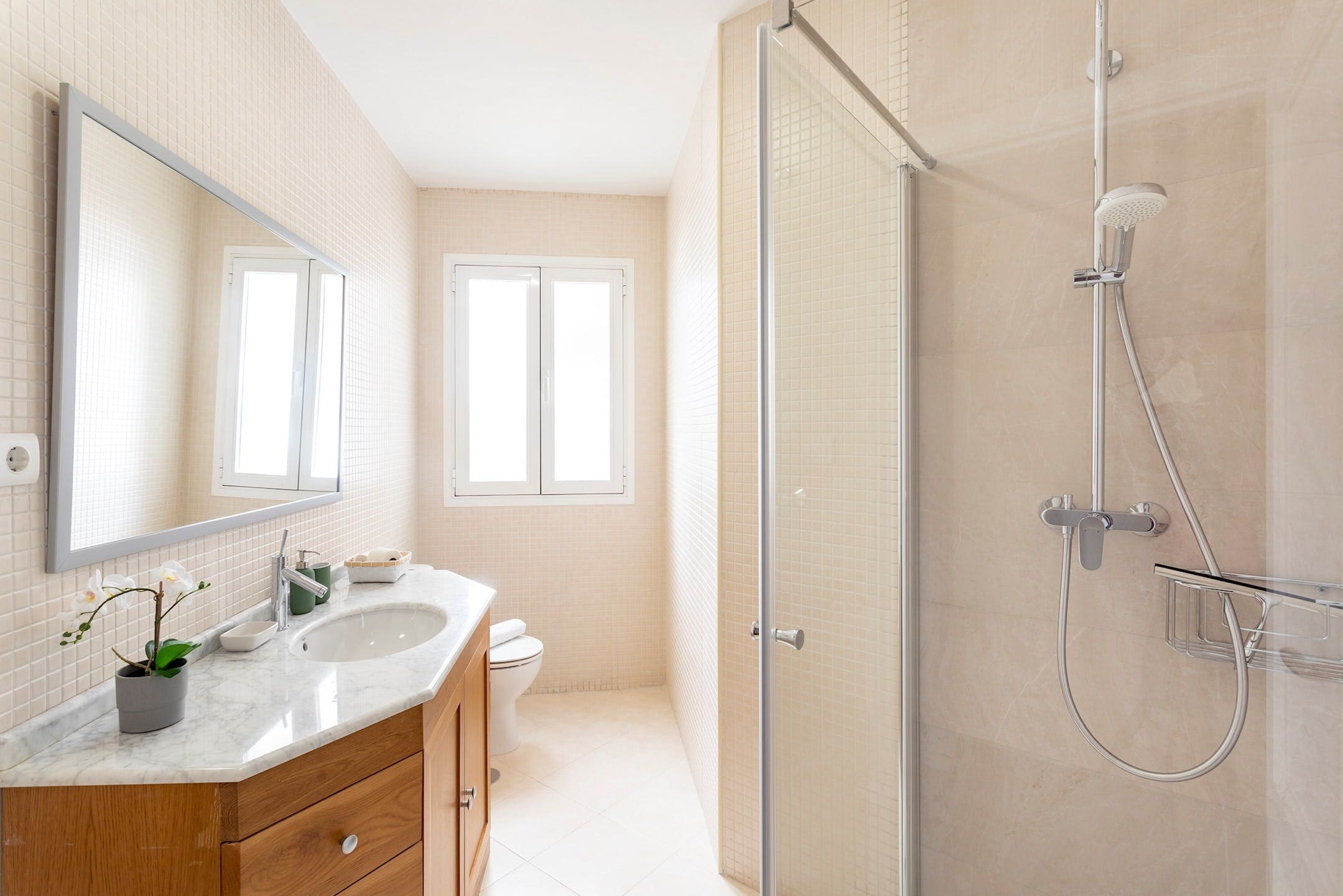 The apartment accommodates up to 8 guests with 3 bedrooms and 2 bathrooms. Located on the second floor, it is easily accessible via a lift. Please note that the entrance is shared with other residents, and some noise is to be expected due to its central location. Your host will provide an in-person check-in to ensure a smooth arrival. Browse our luxury villa rentals in Spain for more properties.