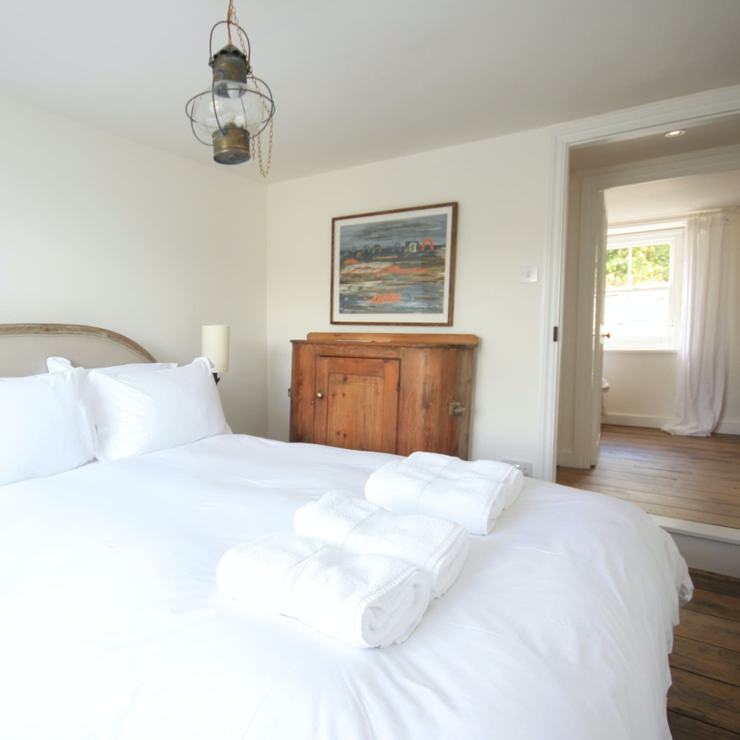 Stepping outside you’ll find the beach and the harbour on your doorstep. From here you can take a leisurely stroll across the quay and explore the village – there’s a lovely pub, restaurant, wine bar, cafe and antique shop. And if you feel inspired to take a road trip through the Cornish countryside, Newquay is a thirty–five–minute drive while the Eden Project is only ten–minutes away.