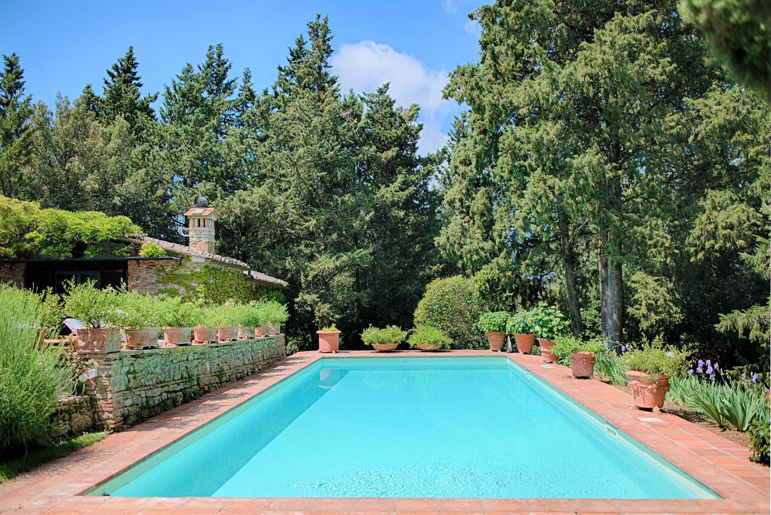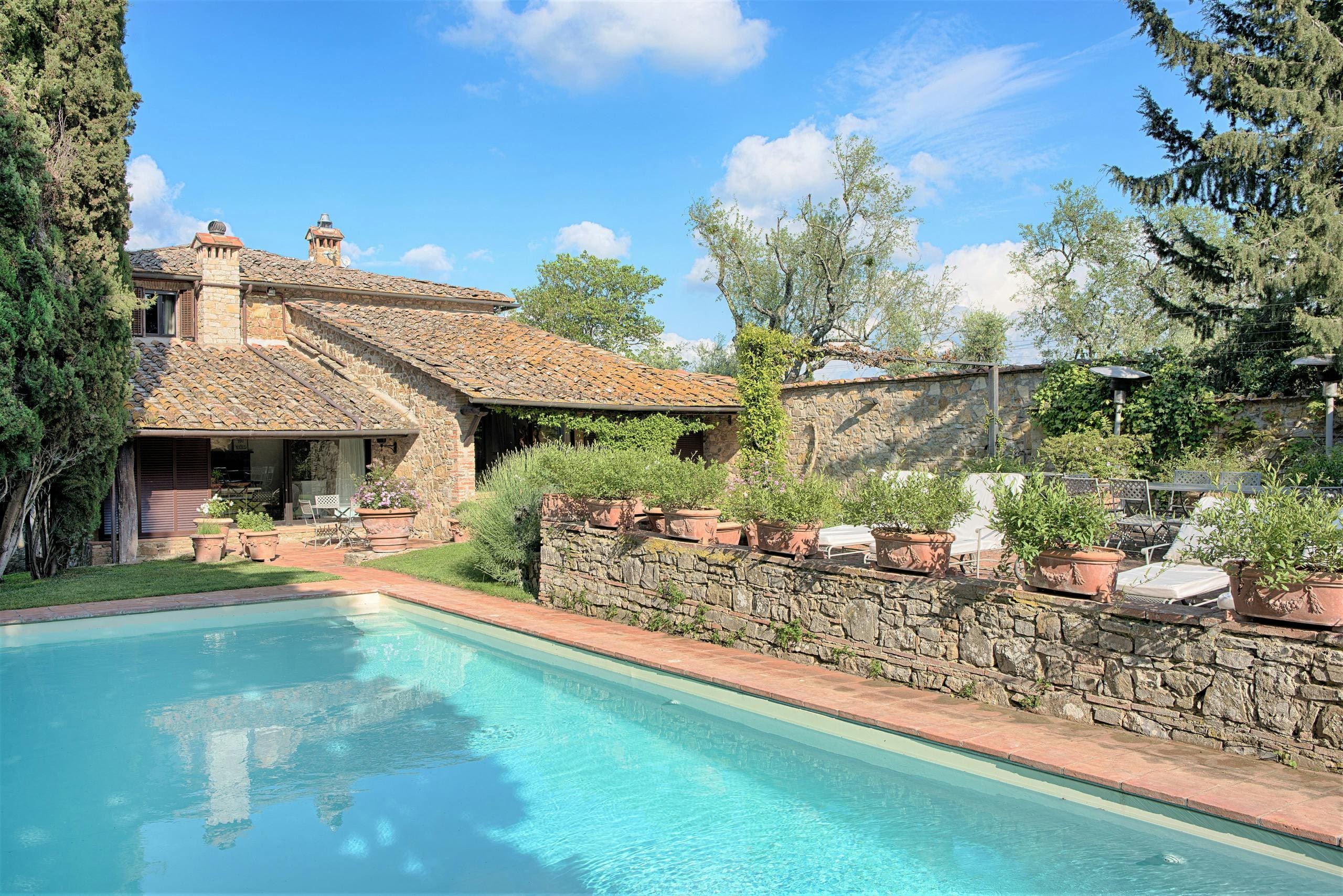 The outdoor spaces of this Chianti apartment are equally enchanting. A private swimming pool invites you to take a refreshing dip while enjoying the panoramic views of the Tuscan countryside. The terrace provides an idyllic setting for alfresco dining, surrounded by lush gardens that exude serenity and beauty. The picturesque landscape enhances the sense of peace and relaxation, creating a perfect backdrop for your getaway.