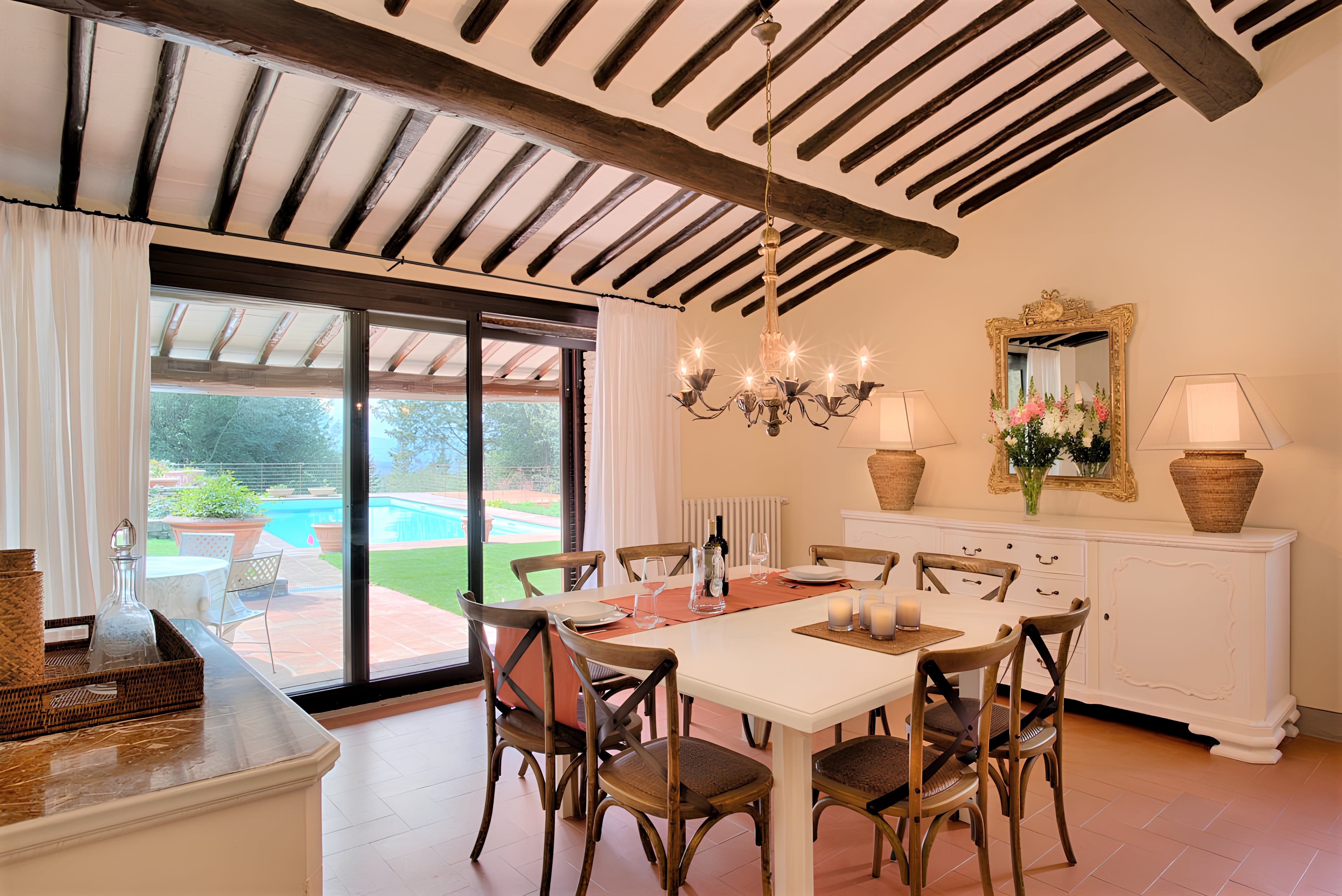 This spacious apartment features an elegant design spread across two floors, offering ample room for relaxation and entertainment. The interiors boast a harmonious blend of traditional Tuscan architecture and contemporary decor. The living area is adorned with comfortable furnishings, providing a cozy space to unwind. The fully-equipped kitchen is perfect for preparing delicious meals, and the dining area offers a welcoming ambiance for gatherings. The apartment includes four beautifully appointed bedrooms, one of which is located in a charming independent annexe in the garden, offering privacy and comfort.