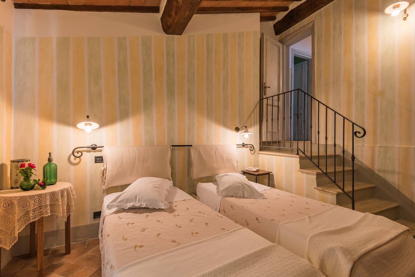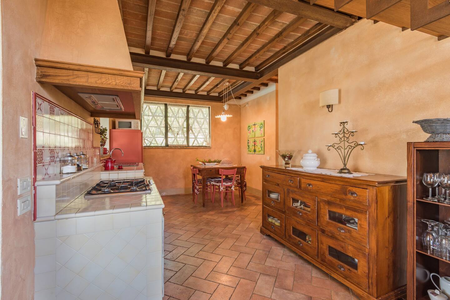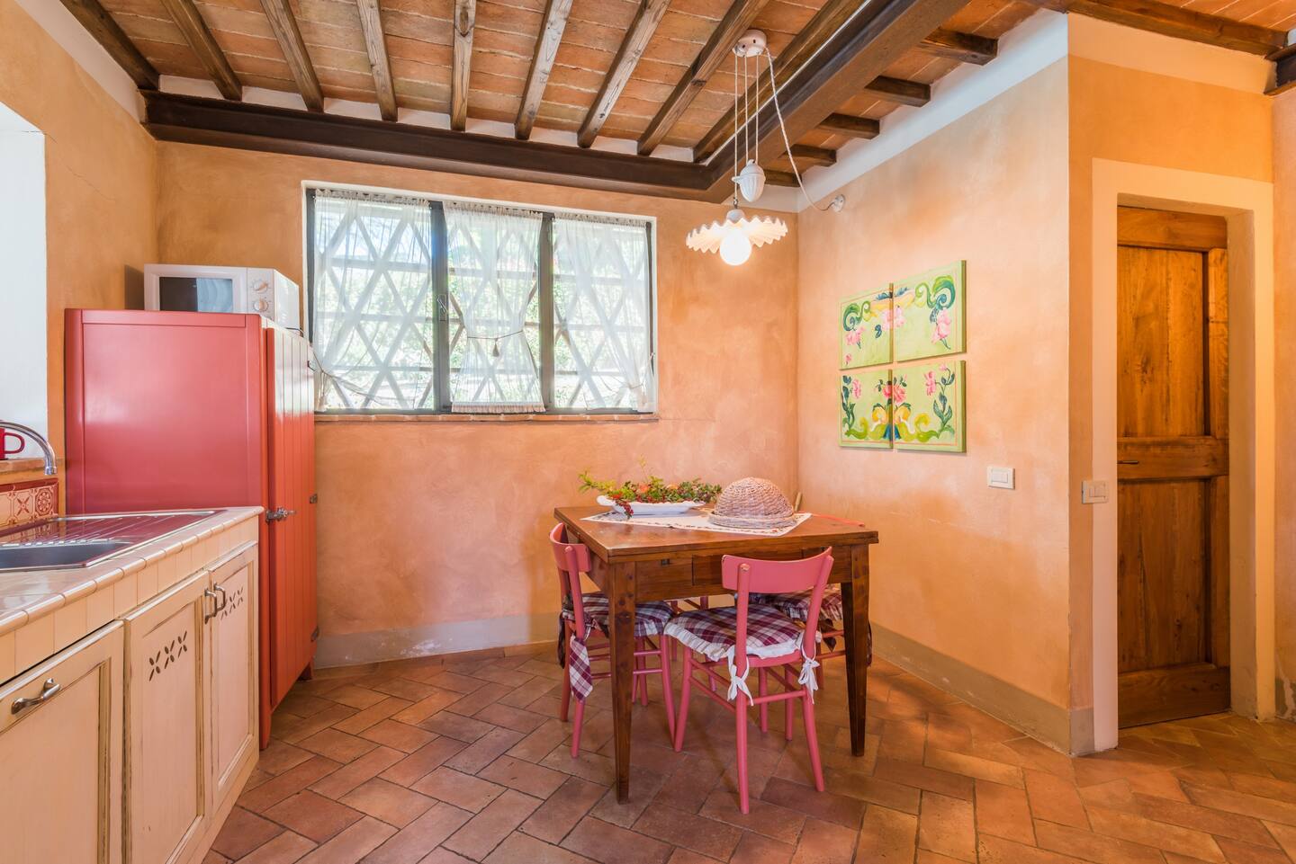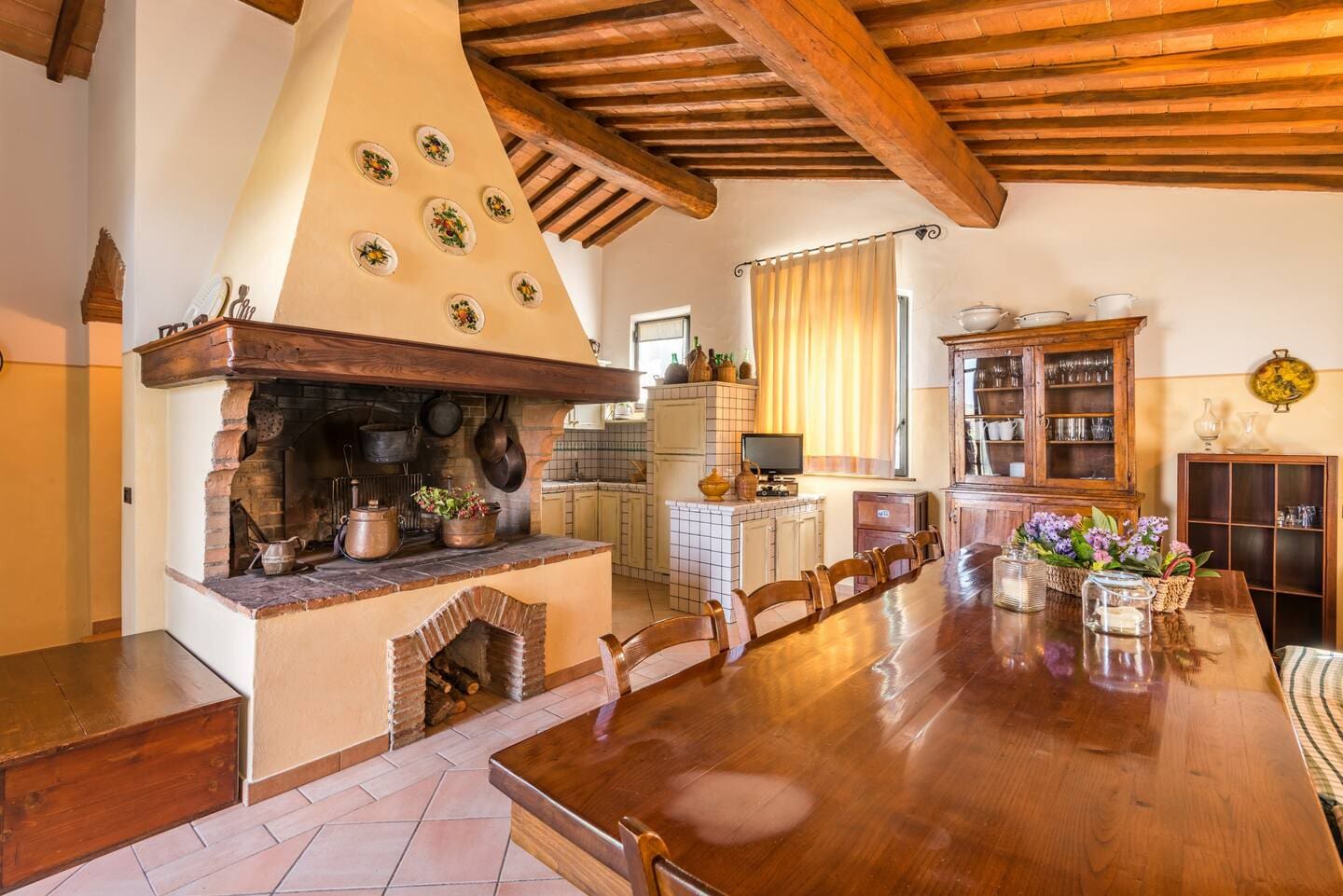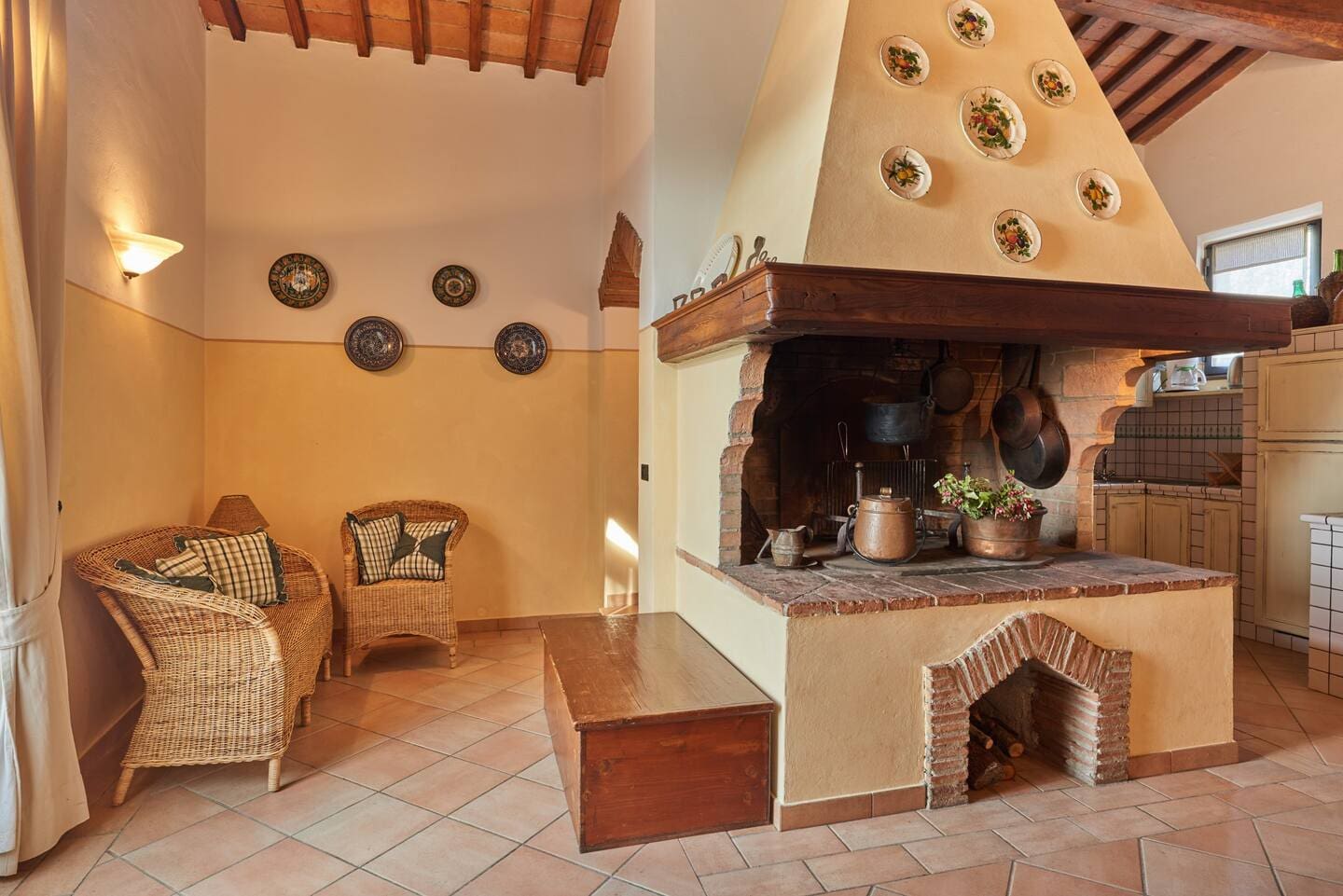 Step into a world of elegance and comfort within this beautifully restored apartment, featuring wooden beams and warm, inviting colors. The interior seamlessly blends traditional Italian design with modern amenities. The apartment comprises two separate barns, offering ample space for privacy while accommodating up to 10 guests. Enjoy the cozy living areas, where you can unwind by the fireplace with a glass of Chianti. The fully equipped kitchen is perfect for preparing local delicacies, while the four spacious bedrooms ensure restful nights.