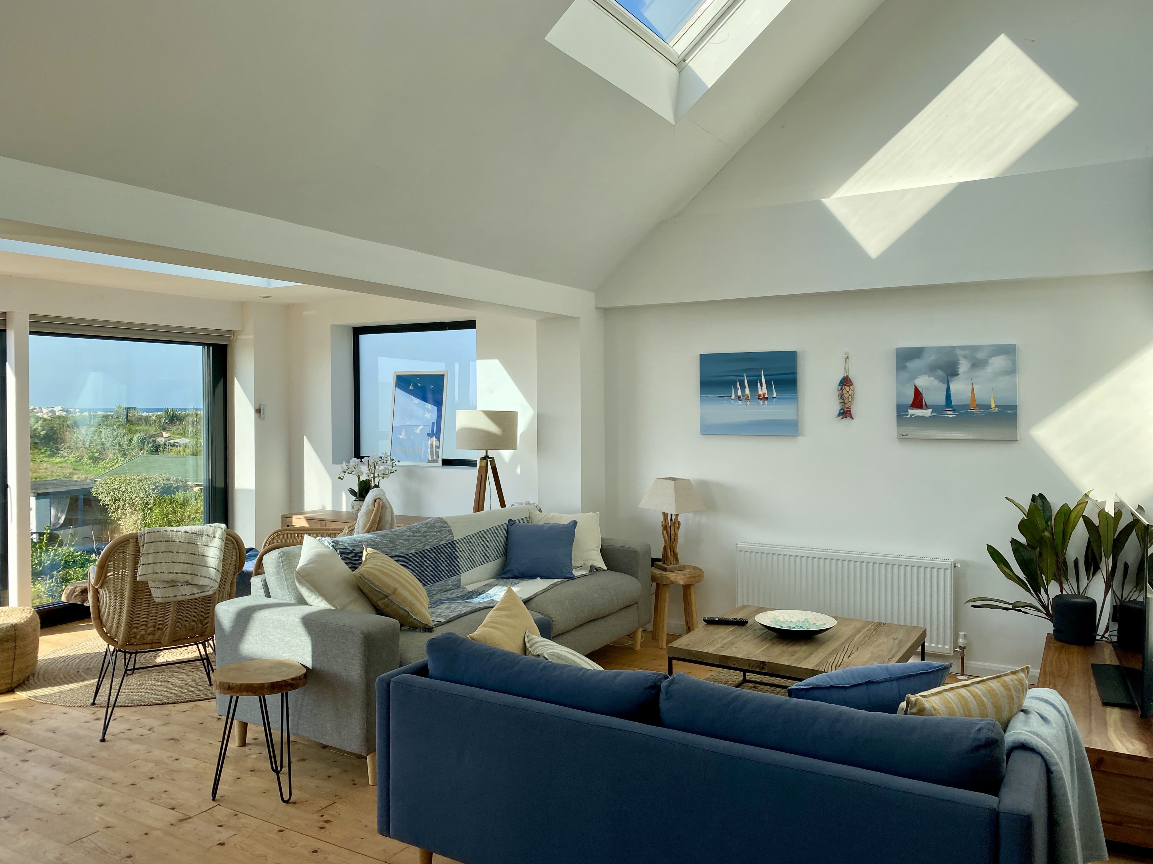 The outdoor spaces are equally enchanting, featuring two lush gardens. One garden grants direct access to the coastal path leading to the beach, while the other hosts a luxurious hot tub, perfect for unwinding after a day of exploration. With private parking for three cars and an electric vehicle charger, convenience is at your doorstep.
