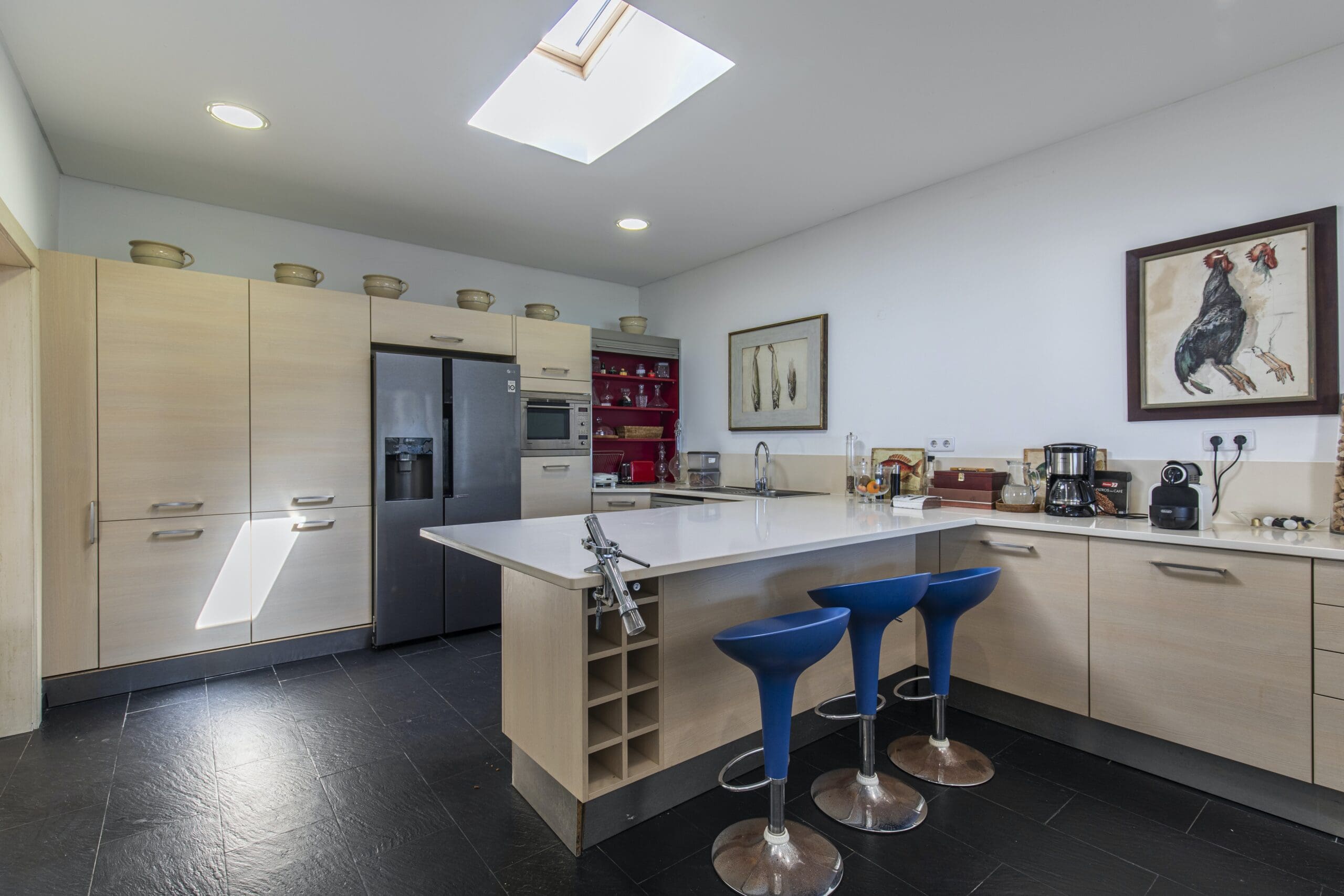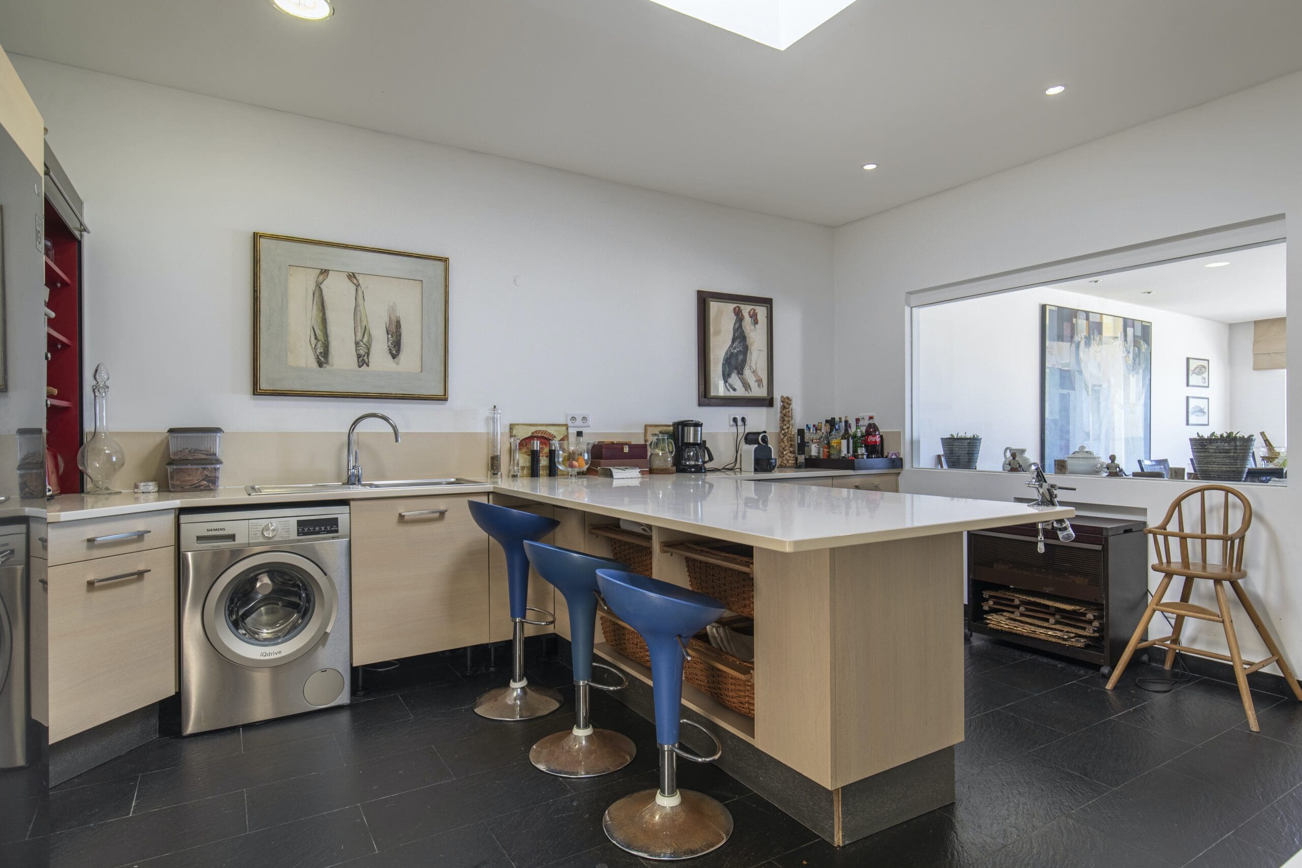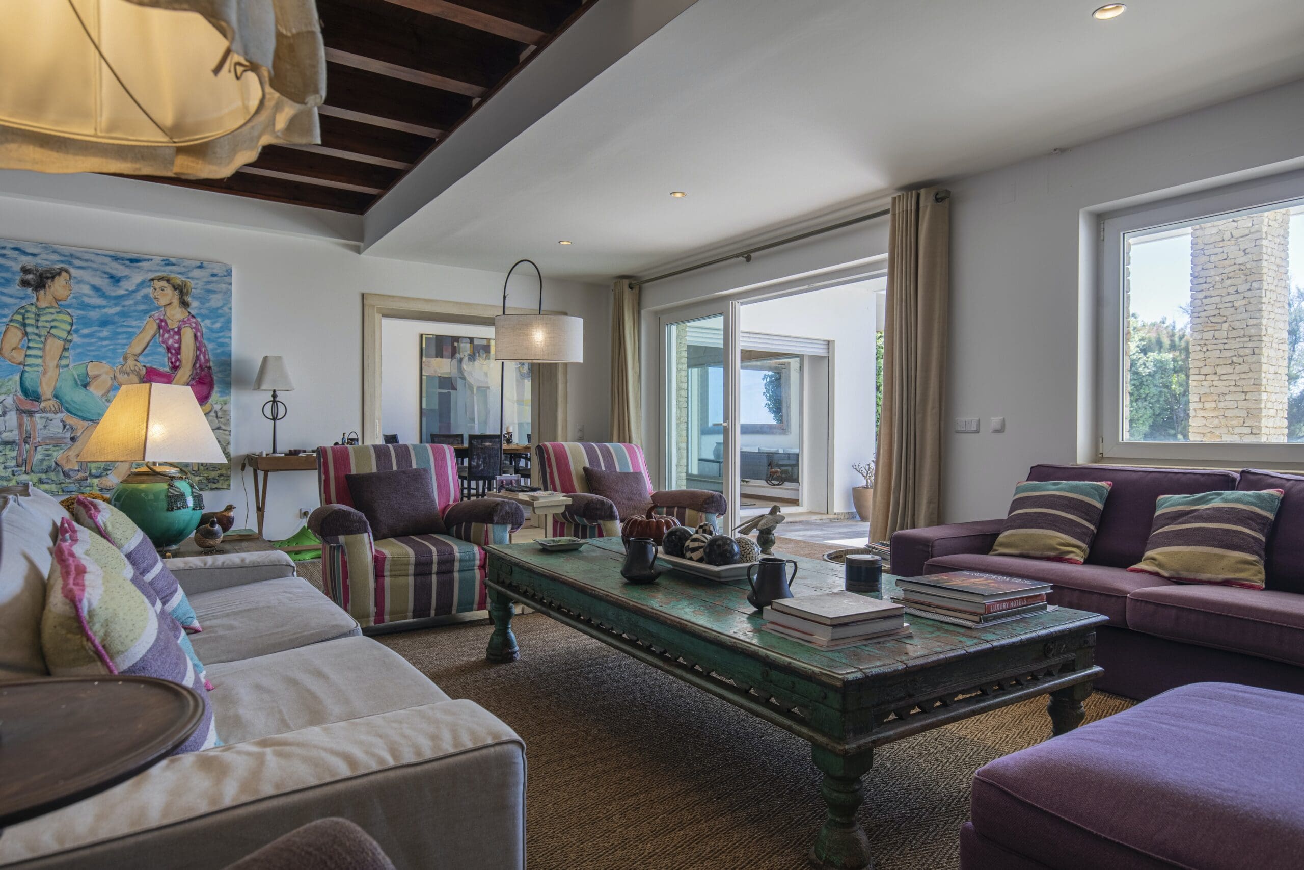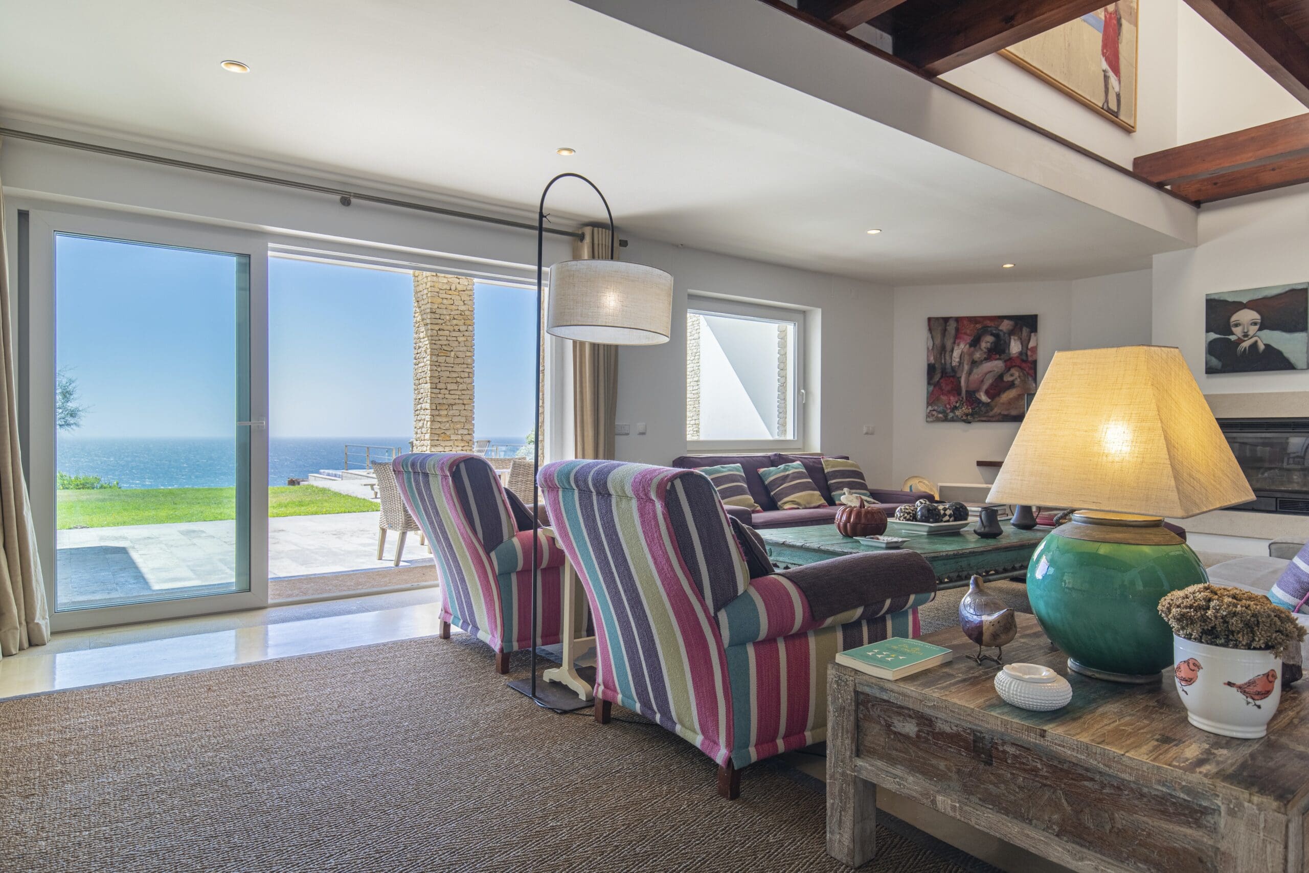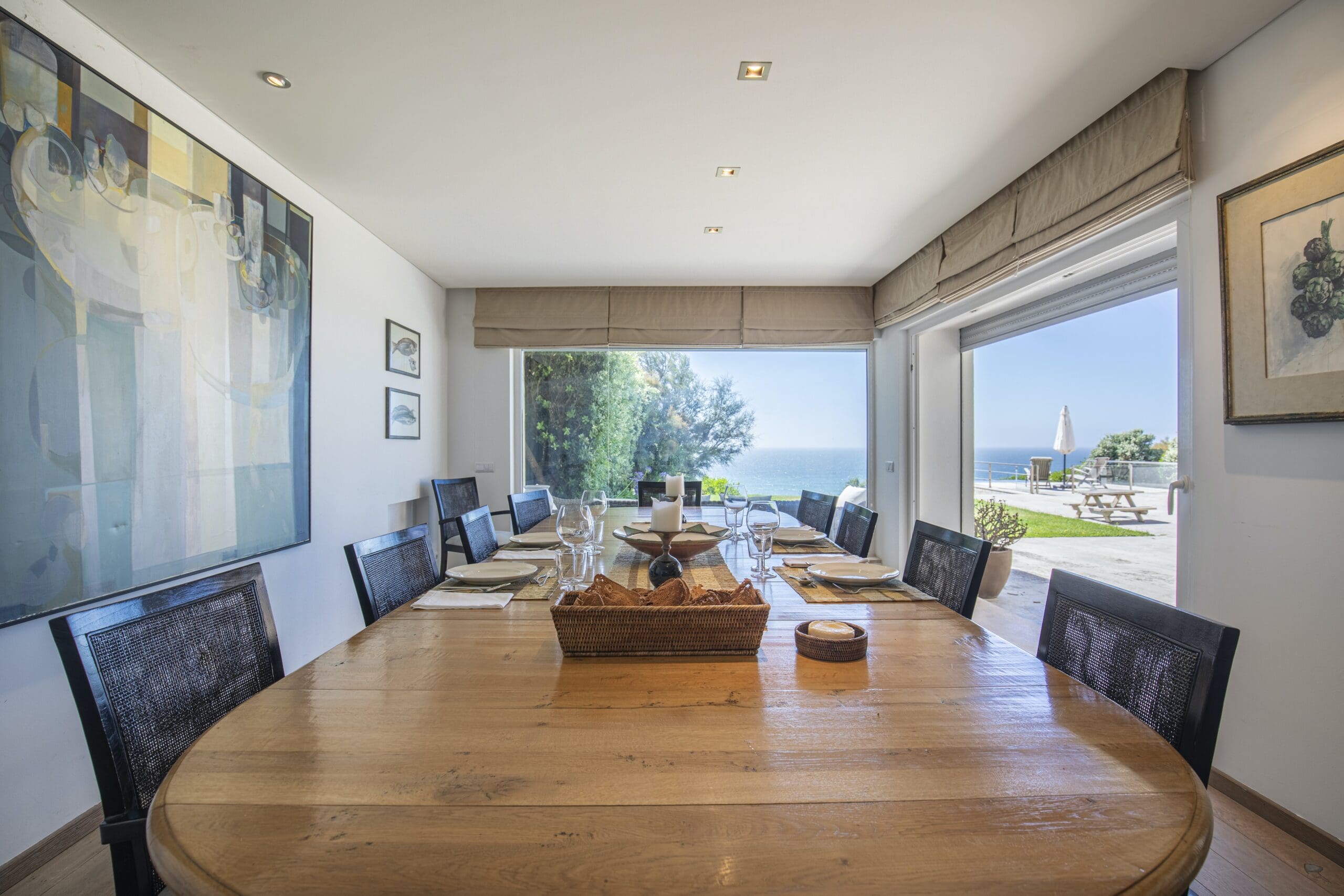Prepare to have your breath taken away at this stunning coastal home, a six-minute drive from the town of Colares. In an elevated position, it’s been designed to make the most of its epic sea views. Between its excellent amenities and the beach a short walk away, you’ll be set up for a wonderful and relaxing stay. Start by taking a dip in one of your two pools – the infinity pool has spectacular views – and later move on to a game of football or tennis in your private court. Cook indoors or use the summer kitchen outside, barbecue some local fish and enjoy meals late into the night on the impressive terrace. We love the lived-in feel here, with eclectic art and comfortable furnishings. Many of the rooms have distractingly good views – none more so than the bedrooms on the top floor, where you can step out onto a balcony each morning and look out to sea. And youngsters are far from forgotten either. There’s a play area indoors, with all sorts of toys and games, and outside you’ll find a grassed playground. Grab your buckets and spades and there’s a choice of beaches within a twenty-minute drive, along with beachside restaurants and bars.