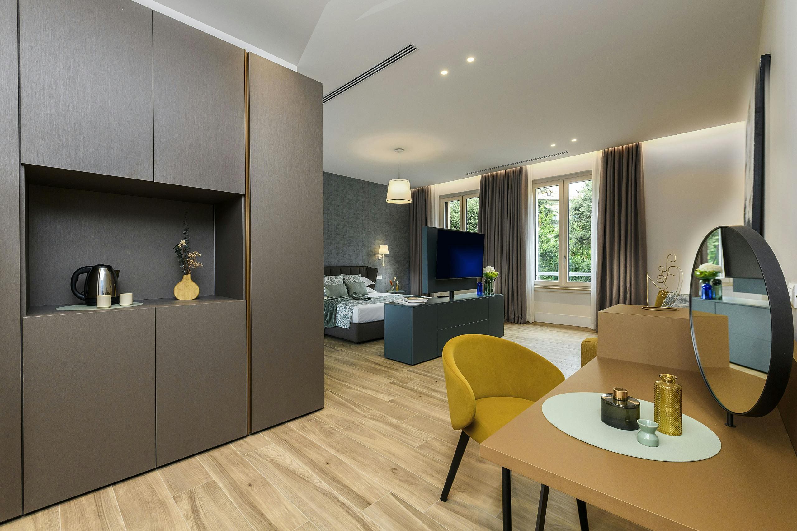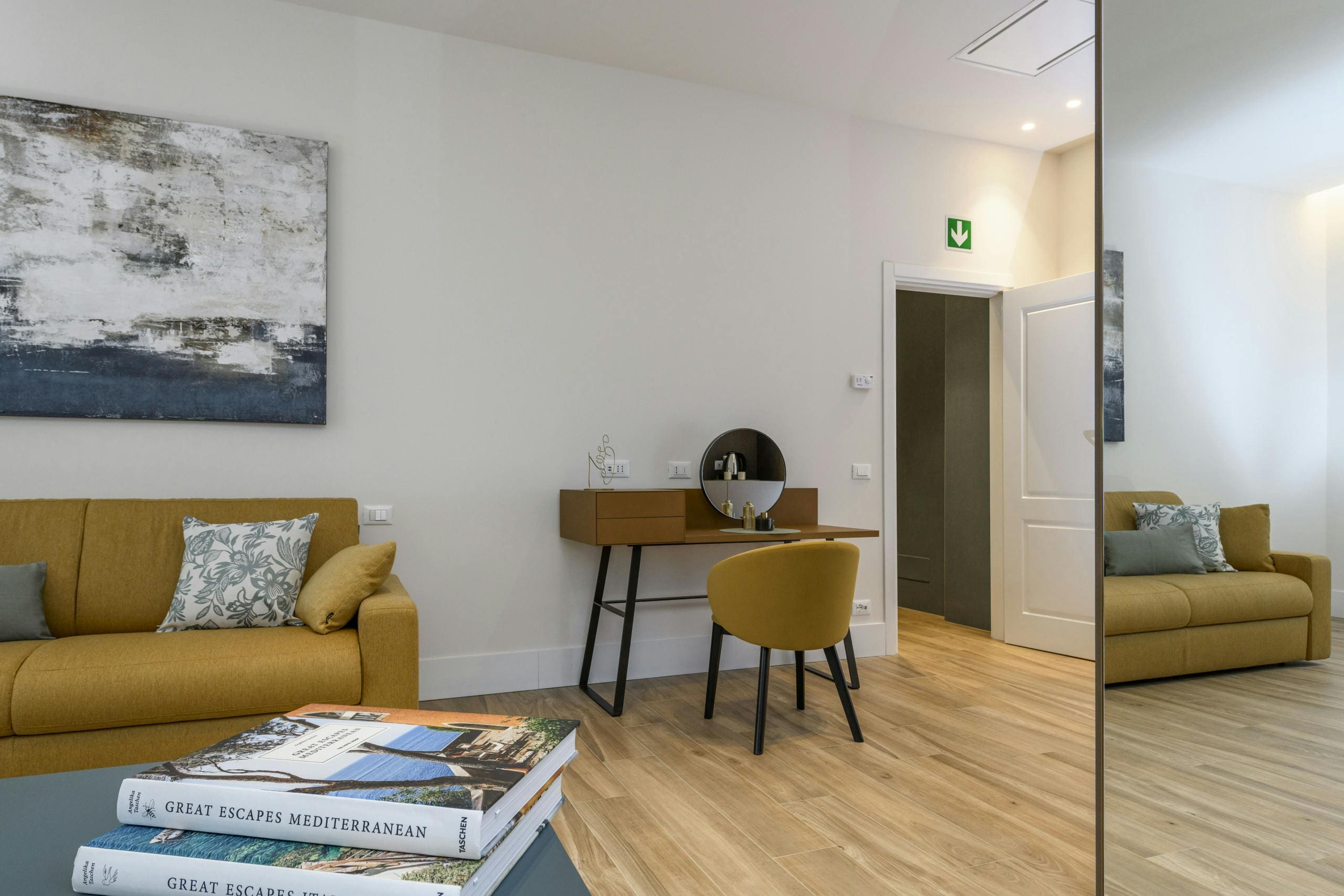 Step inside to discover a spacious and beautifully designed interior that effortlessly combines classic Roman architecture with contemporary touches. The townhouse features three well-appointed bedrooms, each with its own unique character. One of the bedrooms is a luxurious suite complete with a private living area, providing an extra layer of privacy and comfort. The communal living space is both inviting and functional, and the fully equipped kitchen offers everything needed to prepare delightful meals. For those working remotely, desks in the bedrooms ensure a productive stay.