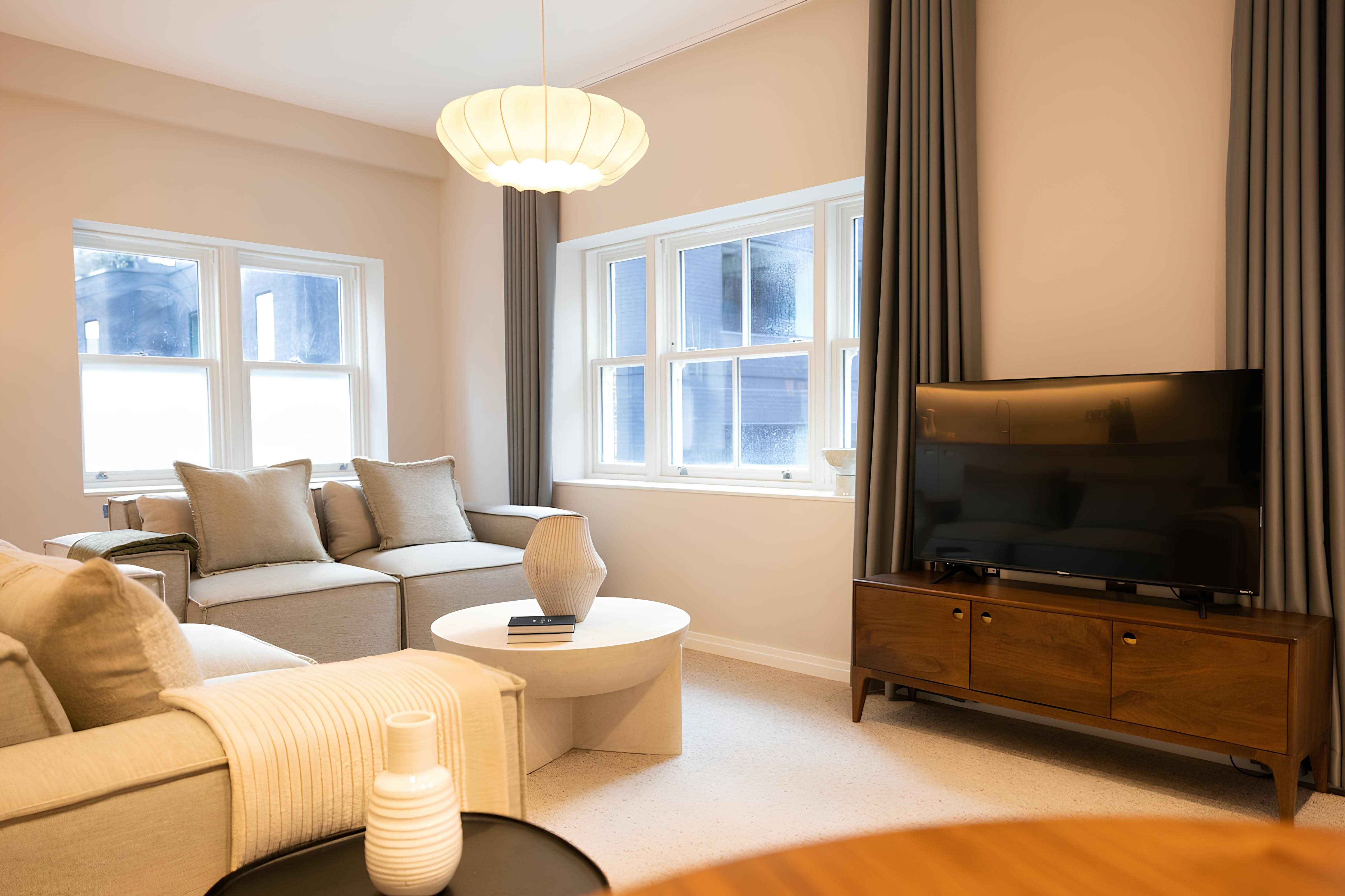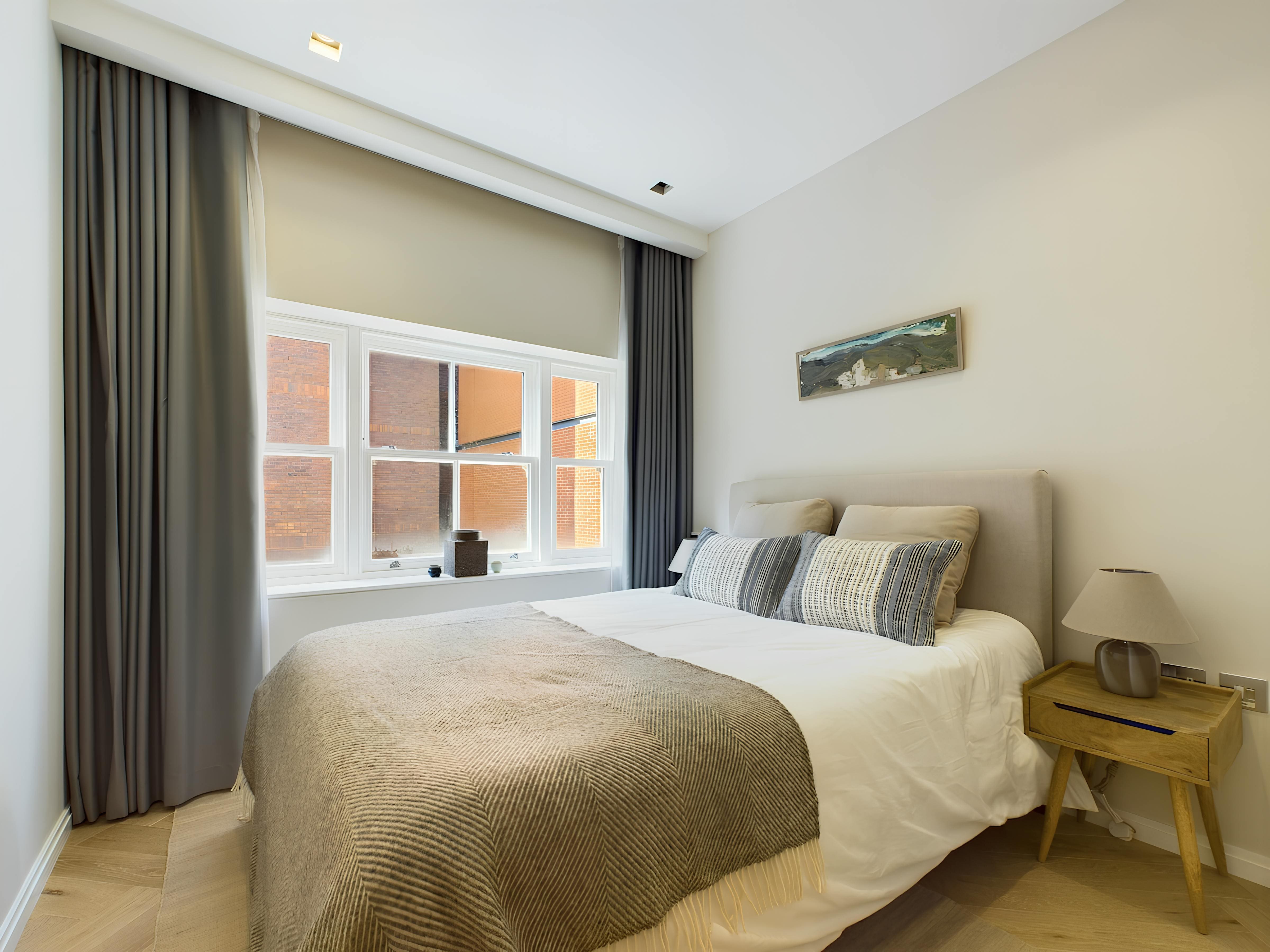 While the apartment doesn’t provide extensive outdoor spaces, its proximity to the cultural and historic heart of London is its true allure. Although the views from the apartment overlook neighboring homes, the location more than makes up for it, placing you at the doorstep of vibrant city life.