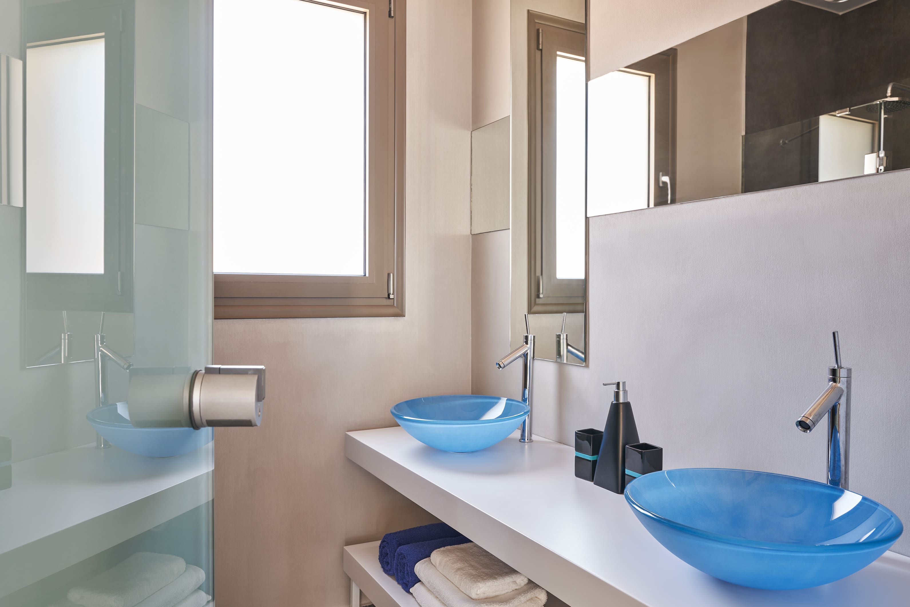 Step outside to discover a private oasis. The apartment’s outdoor space is designed to make the most of Crete’s stunning natural beauty. A sparkling swimming pool offers a refreshing escape, while the hot tub provides the perfect spot to unwind under the stars. Multiple terraces and seating areas provide ample space for al fresco dining and soaking in the panoramic sea views.