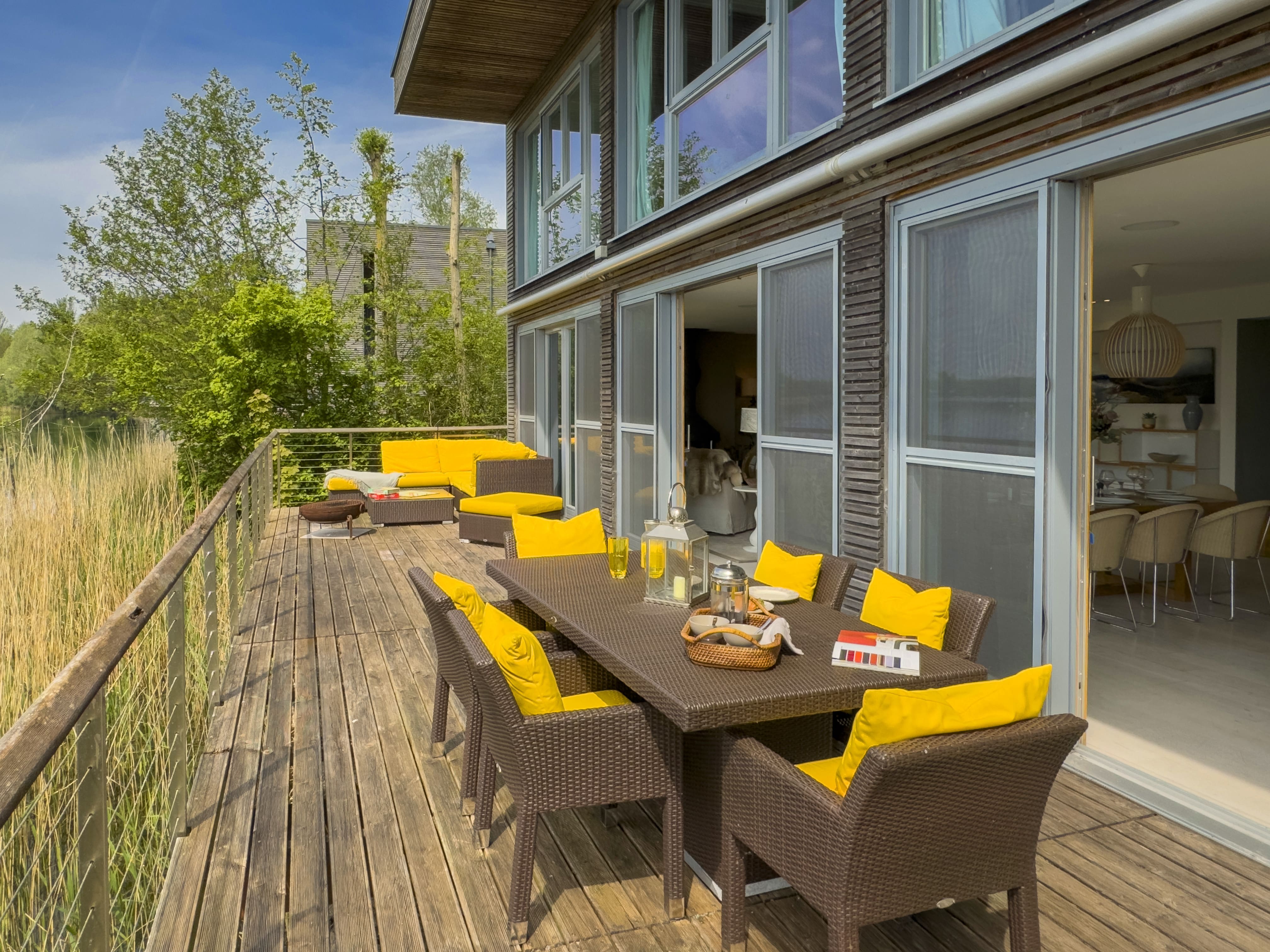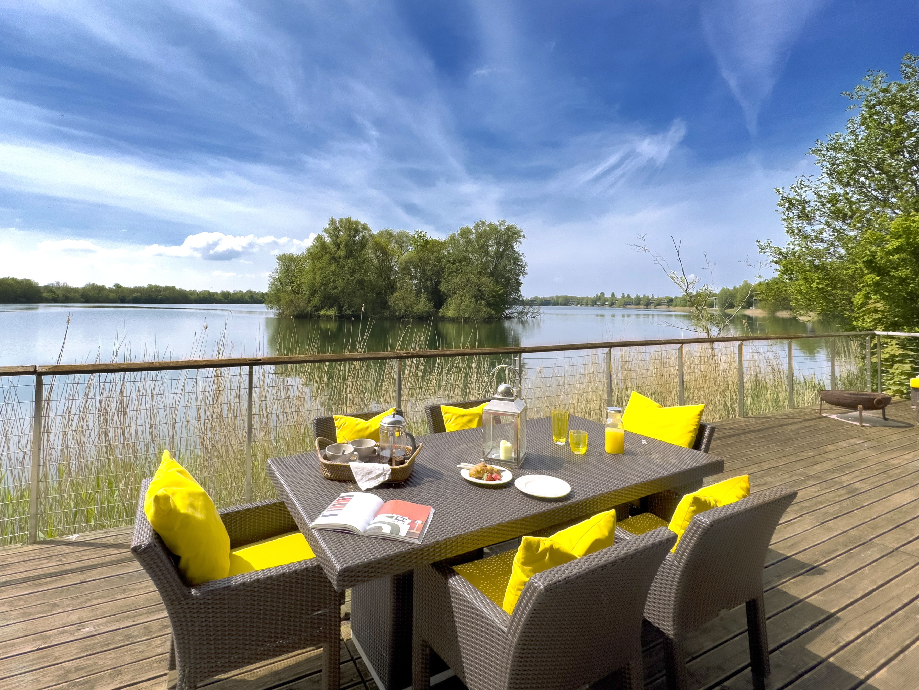 The outdoor spaces are equally enchanting, with a terrace that extends over the lake, offering breathtaking views and an idyllic setting for alfresco dining. Relax in the hot tub as the sun sets over the tranquil waters, or take a dip in the communal swimming pool, shared with other residents of the resort. The lush surroundings provide a perfect backdrop for leisurely walks and exploration.