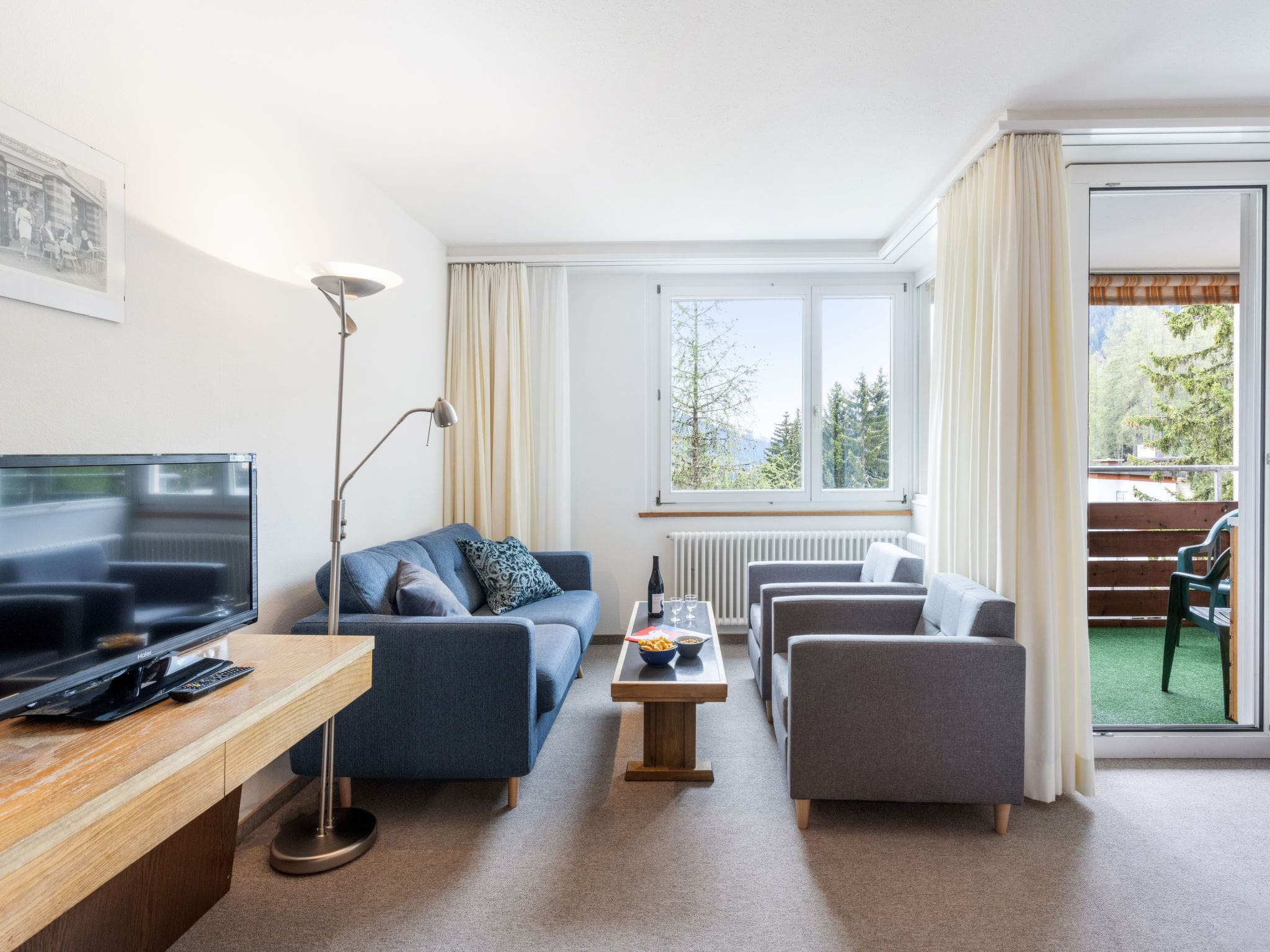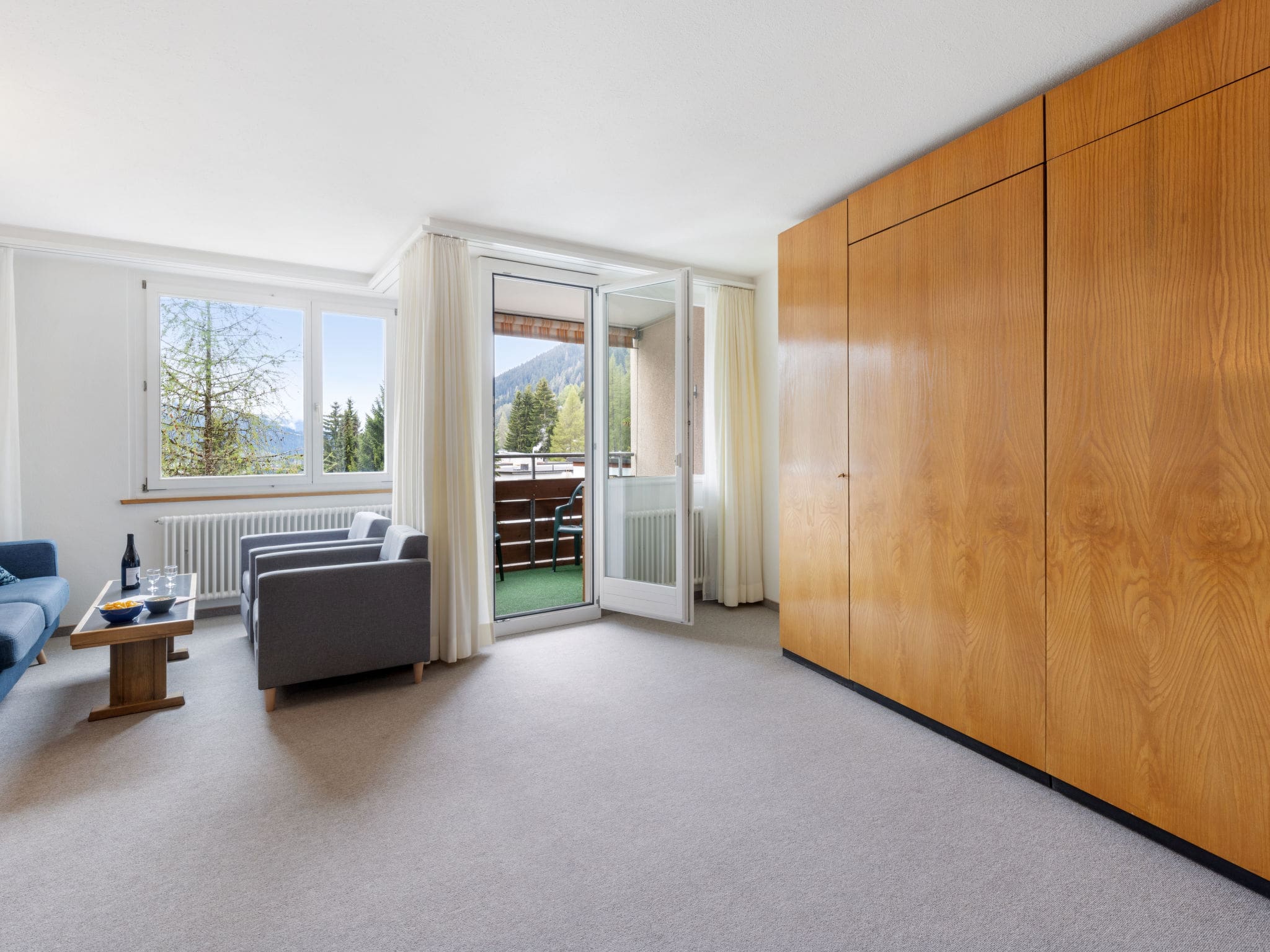 The private balcony serves as your personal viewing platform for the magnificent Alpine landscape, where morning coffee becomes a ritual accompanied by sunrise over the peaks and evening aperitifs are enhanced by the alpenglow painting the mountains in golden hues. The sunny south-facing position ensures the balcony receives abundant natural light throughout the day, creating an ideal spot for relaxation and contemplation. While the apartment itself does not feature private outdoor amenities, the building provides access to exceptional shared facilities including a communal sauna for post-adventure relaxation, a solarium for mountain sun therapy, and a table tennis area for evening entertainment. The property’s elevated position in a peaceful cul-de-sac ensures tranquillity while maintaining easy access to Davos’s vibrant centre just 300 metres away.